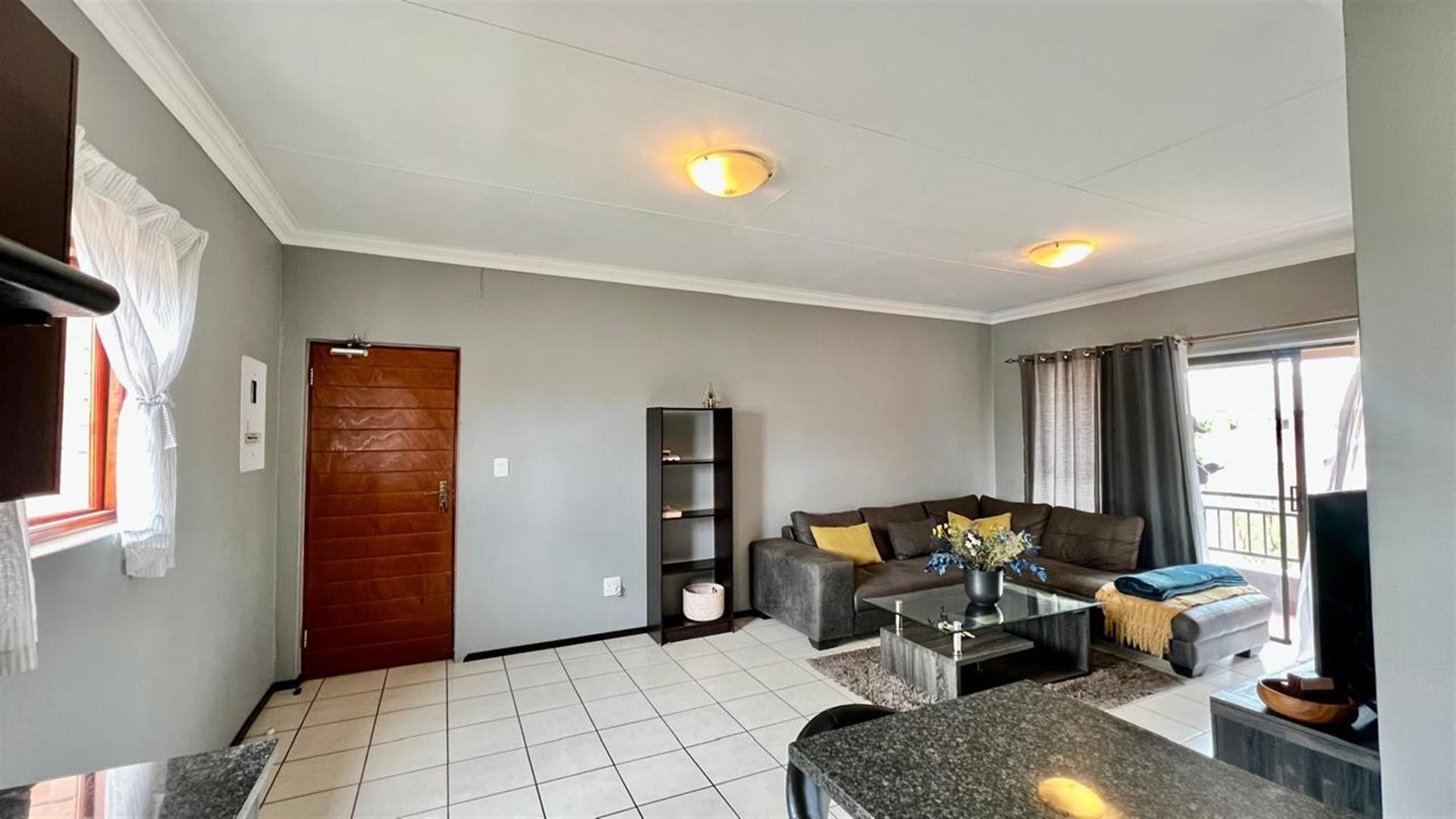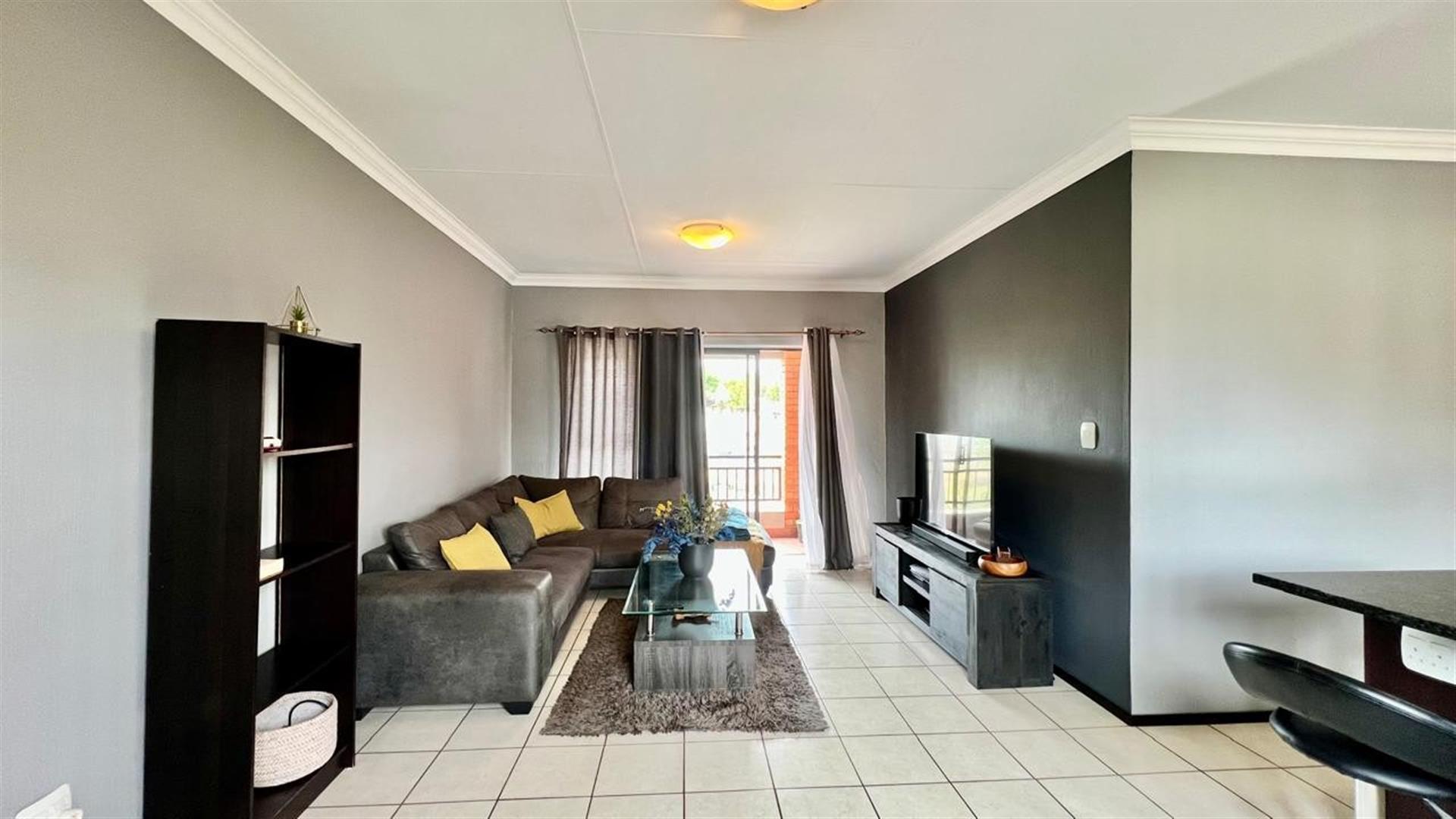 Enjoy outdoor relaxation on the private balcony. The apartment comes with two covered parking bays and is located in a well-maintained, secure complex close to major routes, shopping centres, and schools.