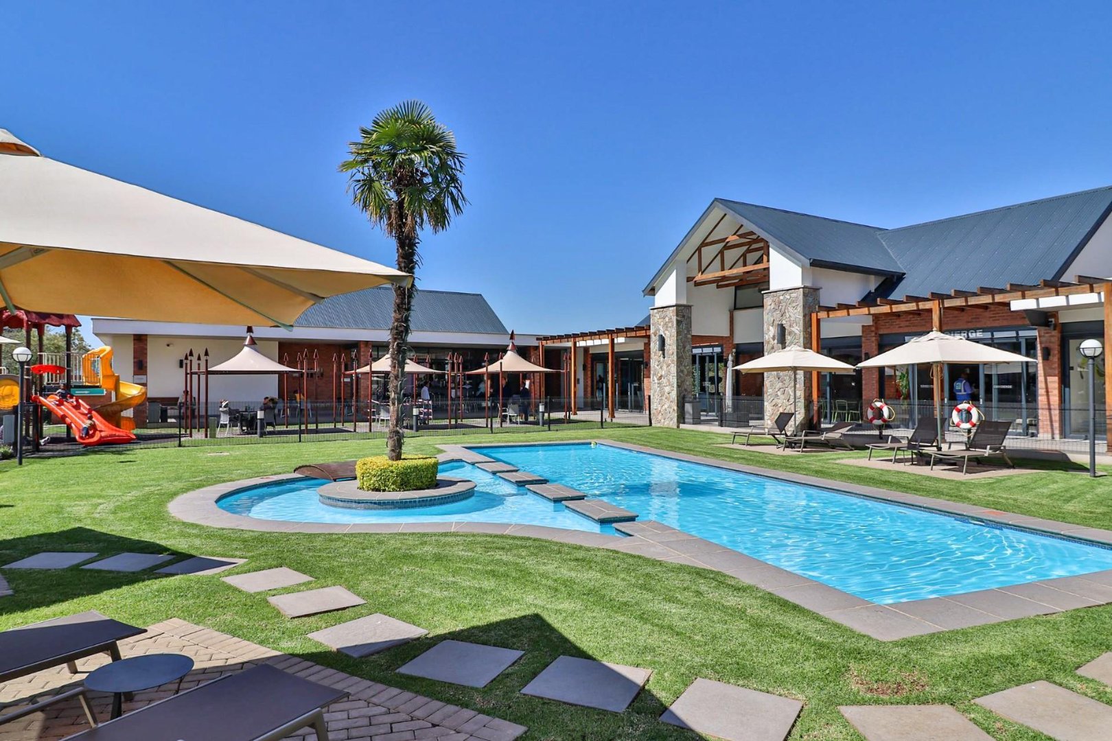 Residents enjoy exclusive access to the estate’s exceptional Lifestyle Centre, designed to elevate everyday living. Facilities include a Vitality-approved gym, swimming pool, Amici Restaurant & Pizzeria, cinema and games room, and a luxurious Camelot Wellness Spa. Additional conveniences such as a laundromat, mobile car wash, concierge service, and a dog-friendly park complement the lifestyle offering. Families will appreciate the dedicated children’s play area and mini sports field, while free Wi-Fi in communal areas ensures seamless connectivity throughout the estate.