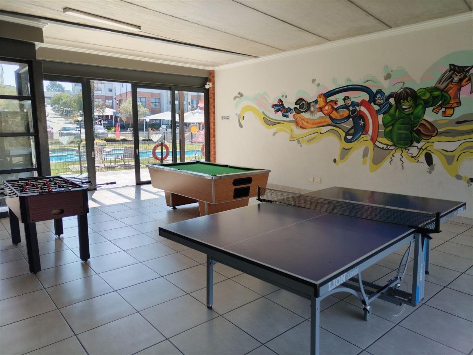 The estate offers a work/ business centre with free wifi, a lounge, a gym, a restaurant that delivers food to your door, a pool, a game room with pool tables and ping pong tables, a rentable cinema, a concierge, a spa, a dog park, a soccer field and braai facilities.