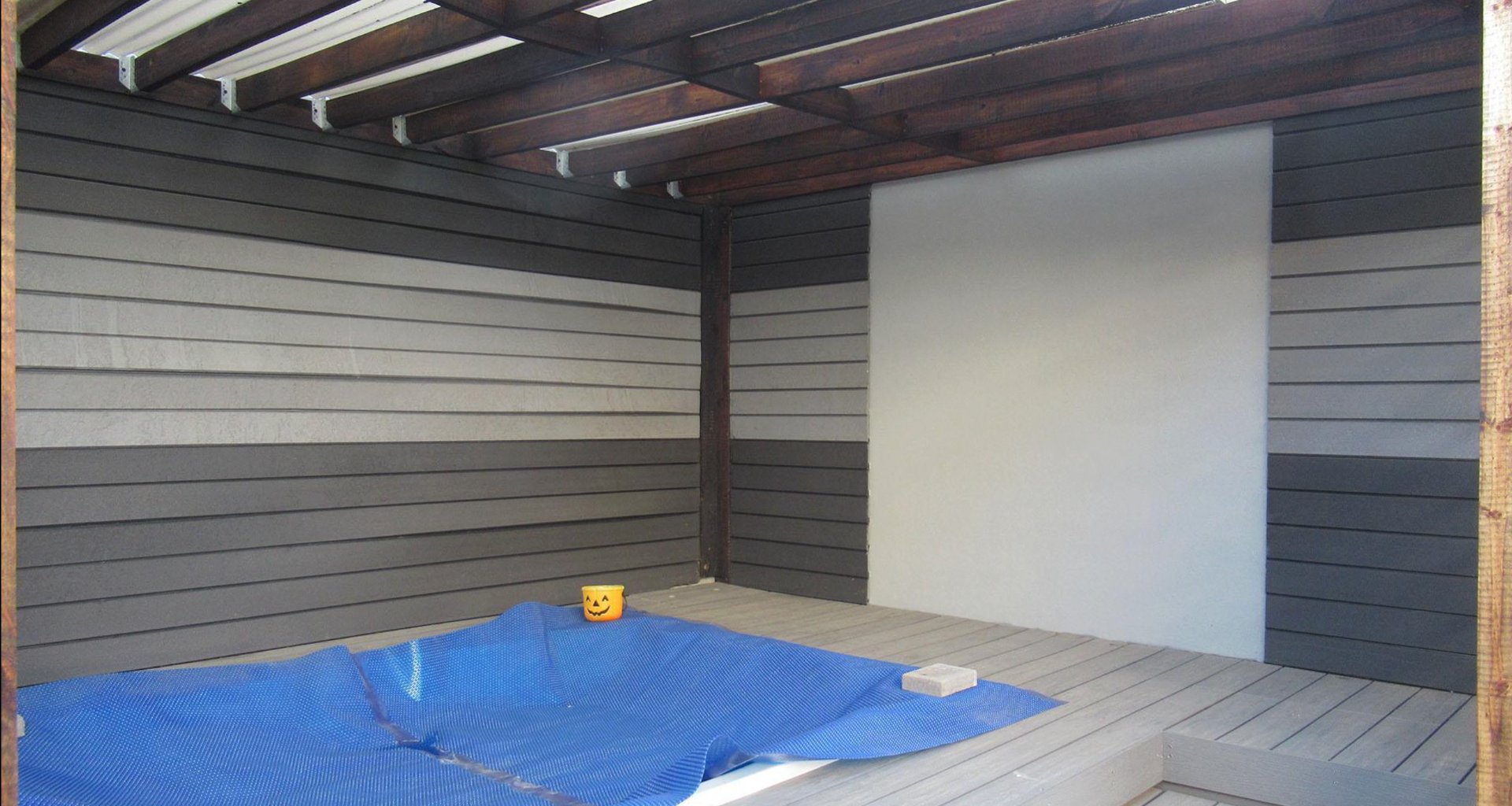 Outdoor entertainment with beautiful artificial grass and a sparkling pool — perfect for family fun and relaxation.
