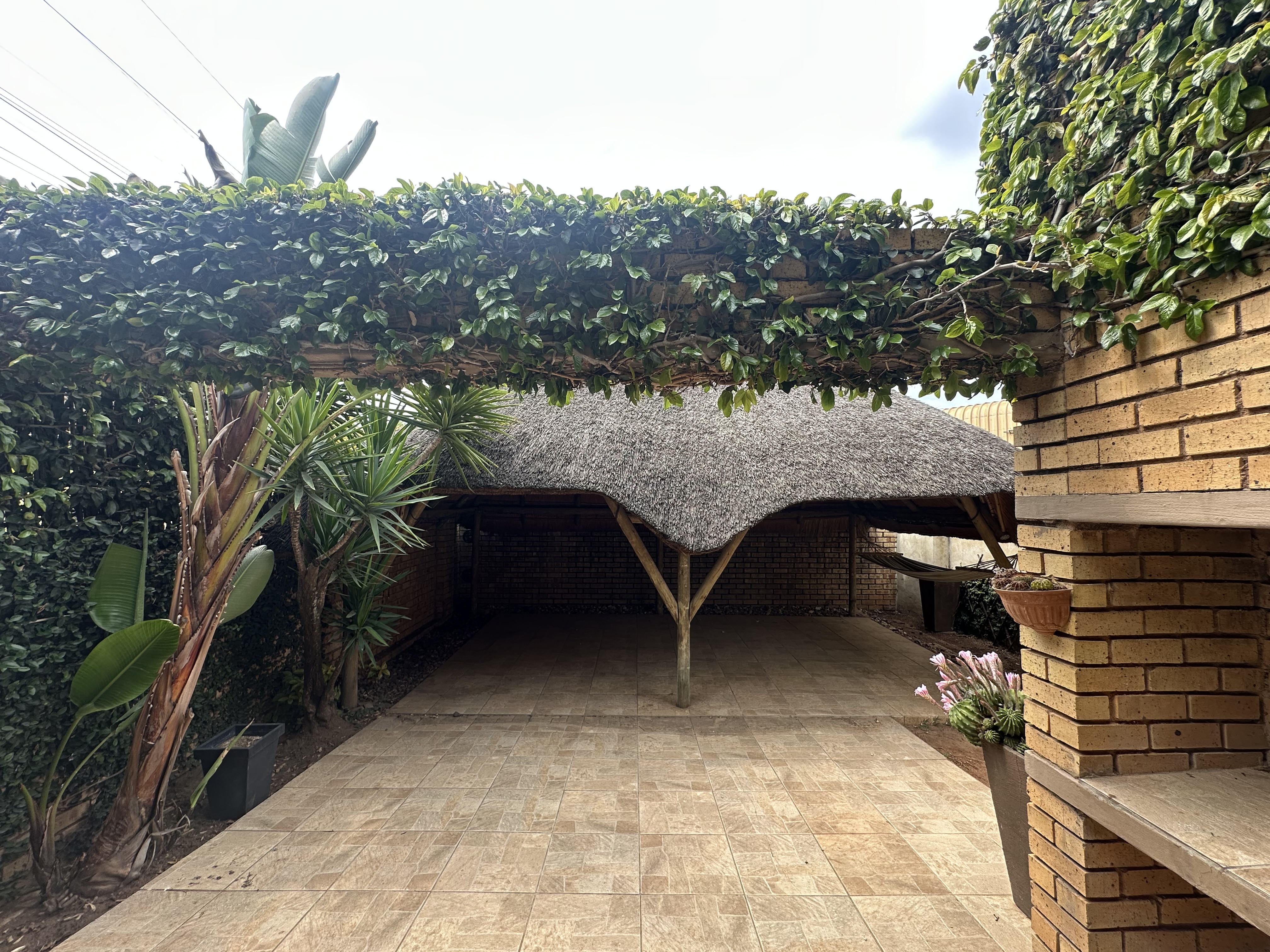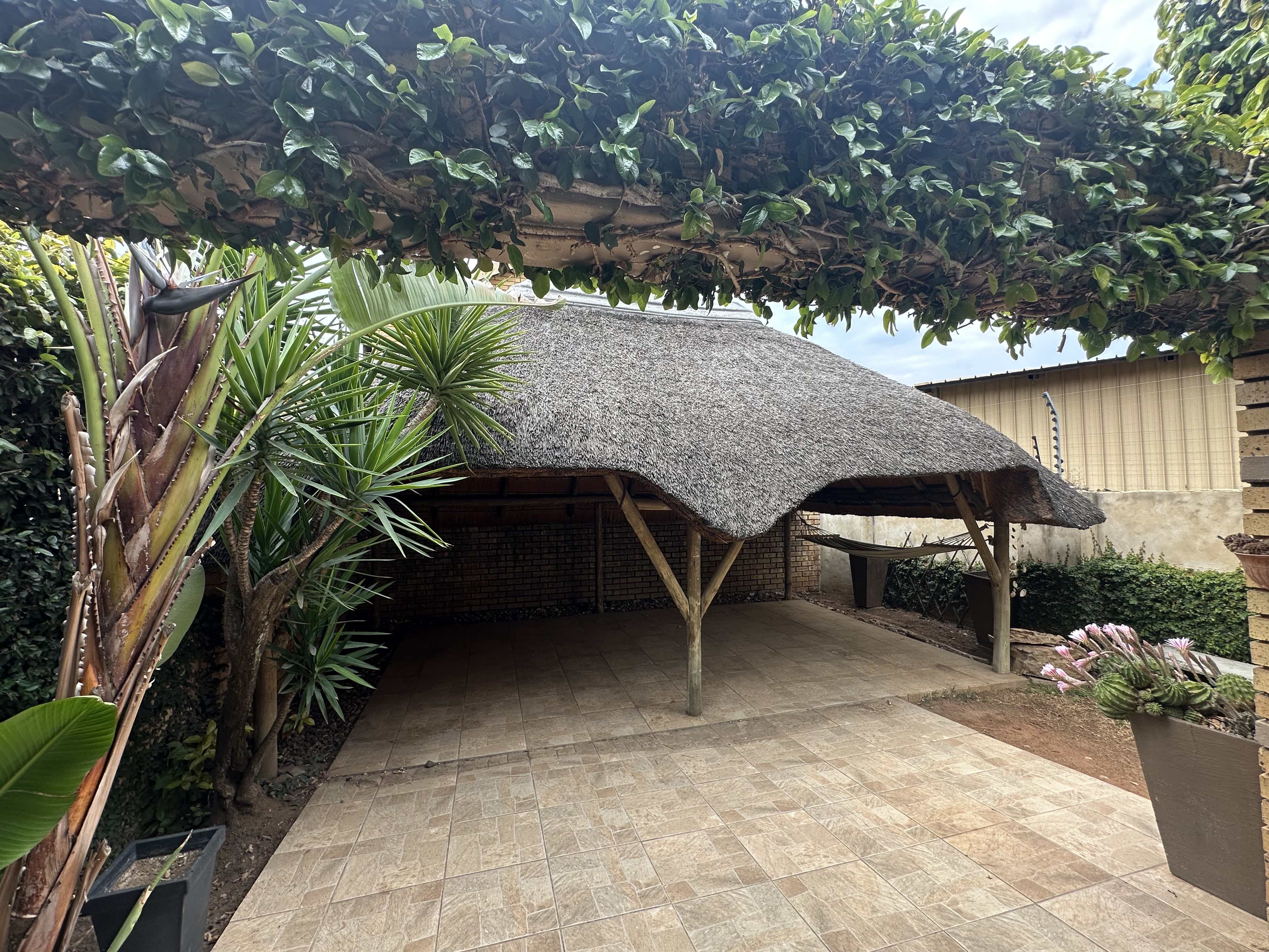 The garden has a thatched lapa entertainment area.