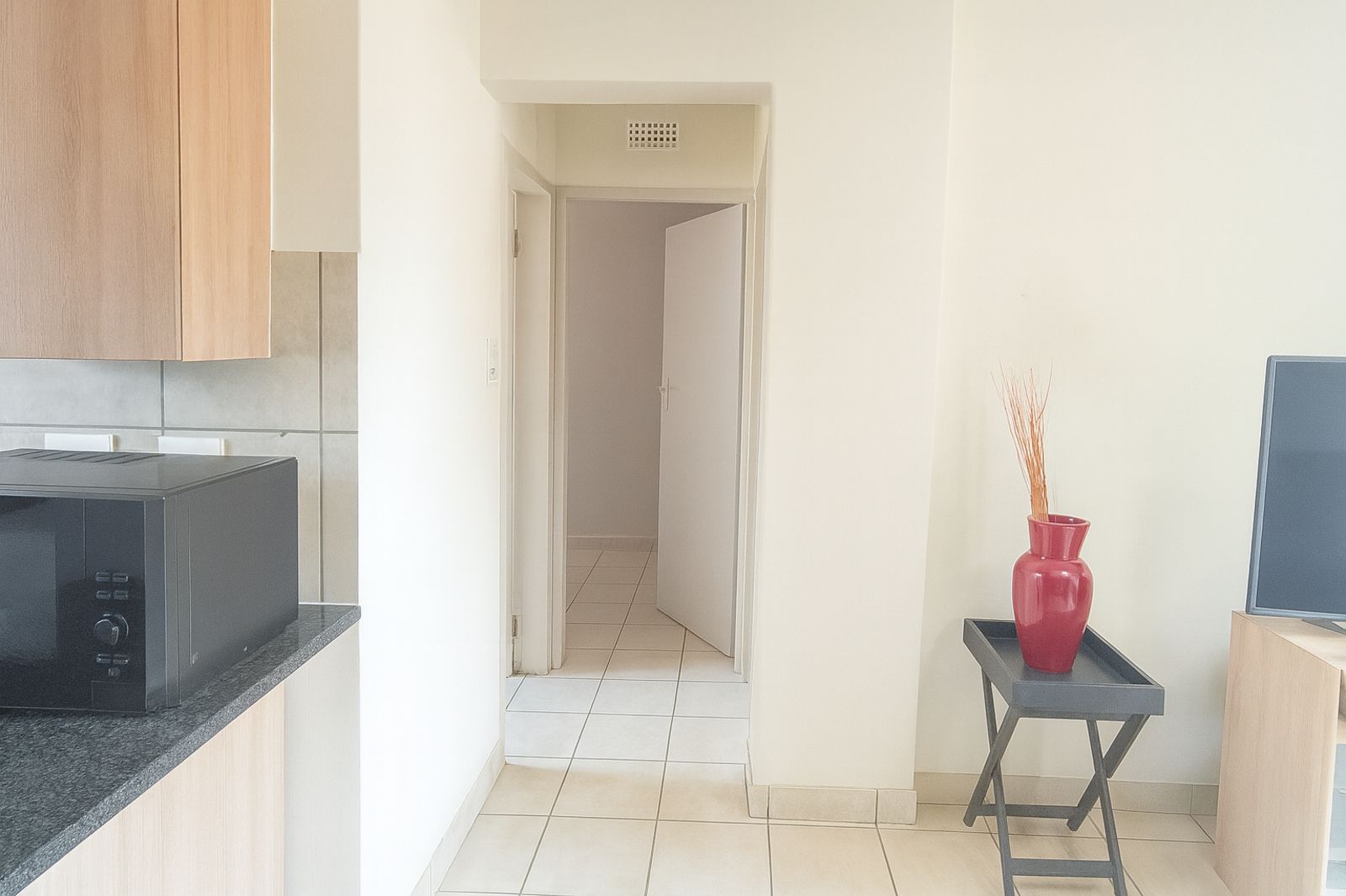 The apartment features an open-plan lounge and kitchen, creating a light-filled space that flows effortlessly to a small private balcony — perfect for morning coffee or quiet evenings. Both bedrooms are well-sized with built-in cupboards, and the unit includes a full bathroom for added convenience.