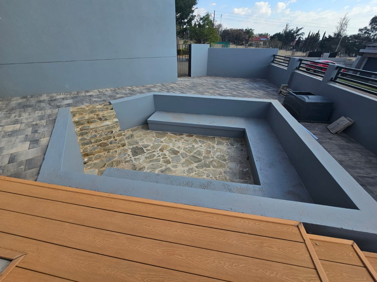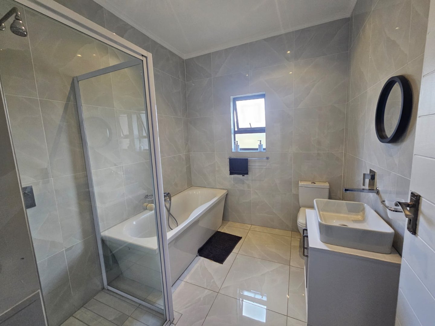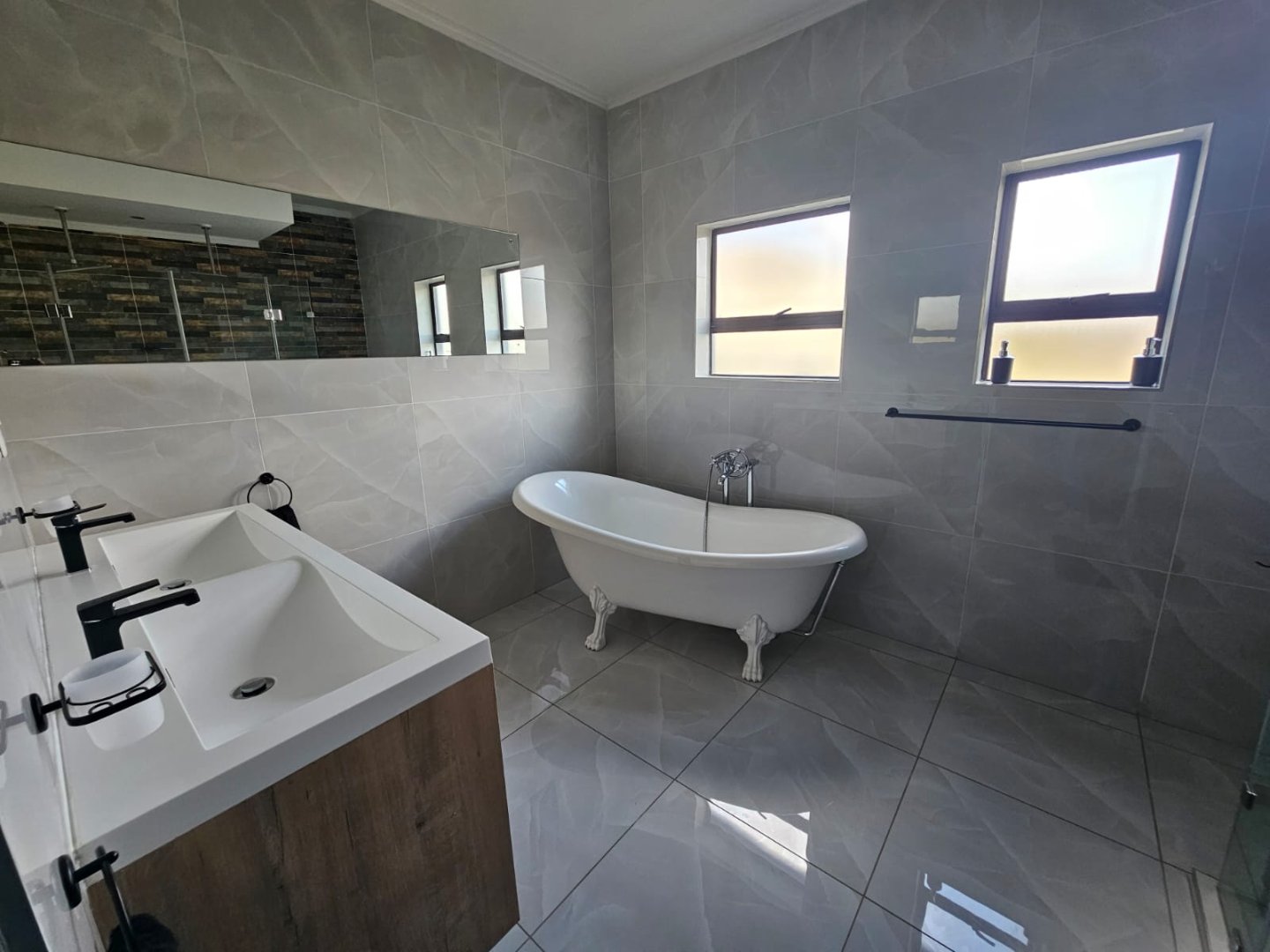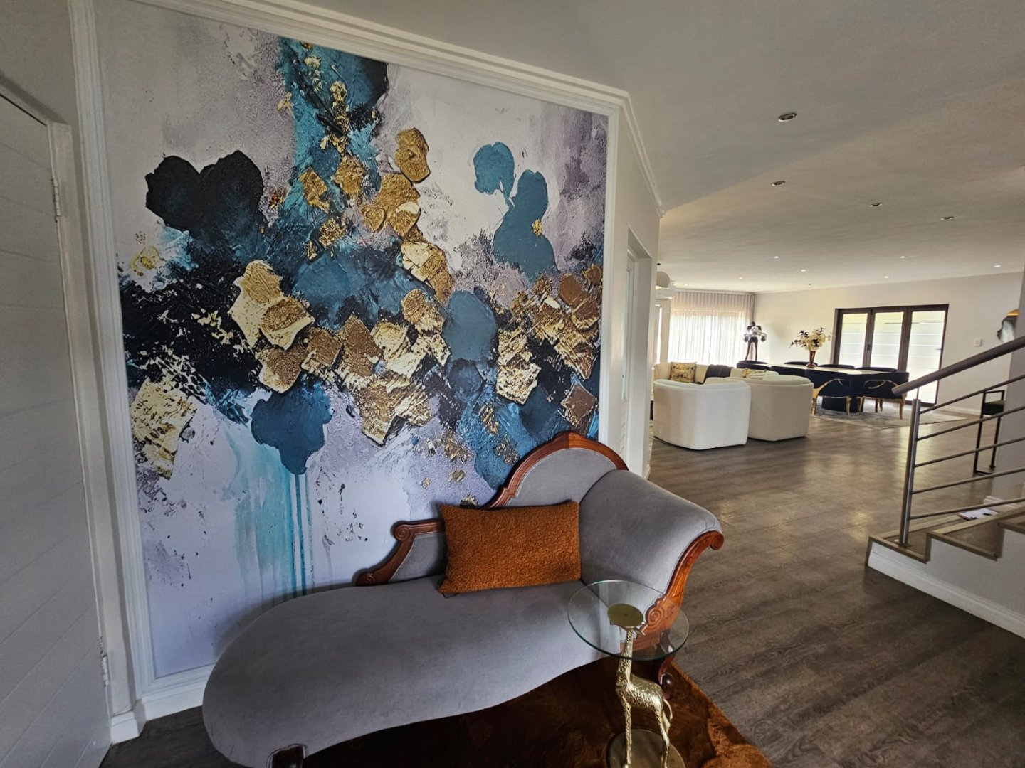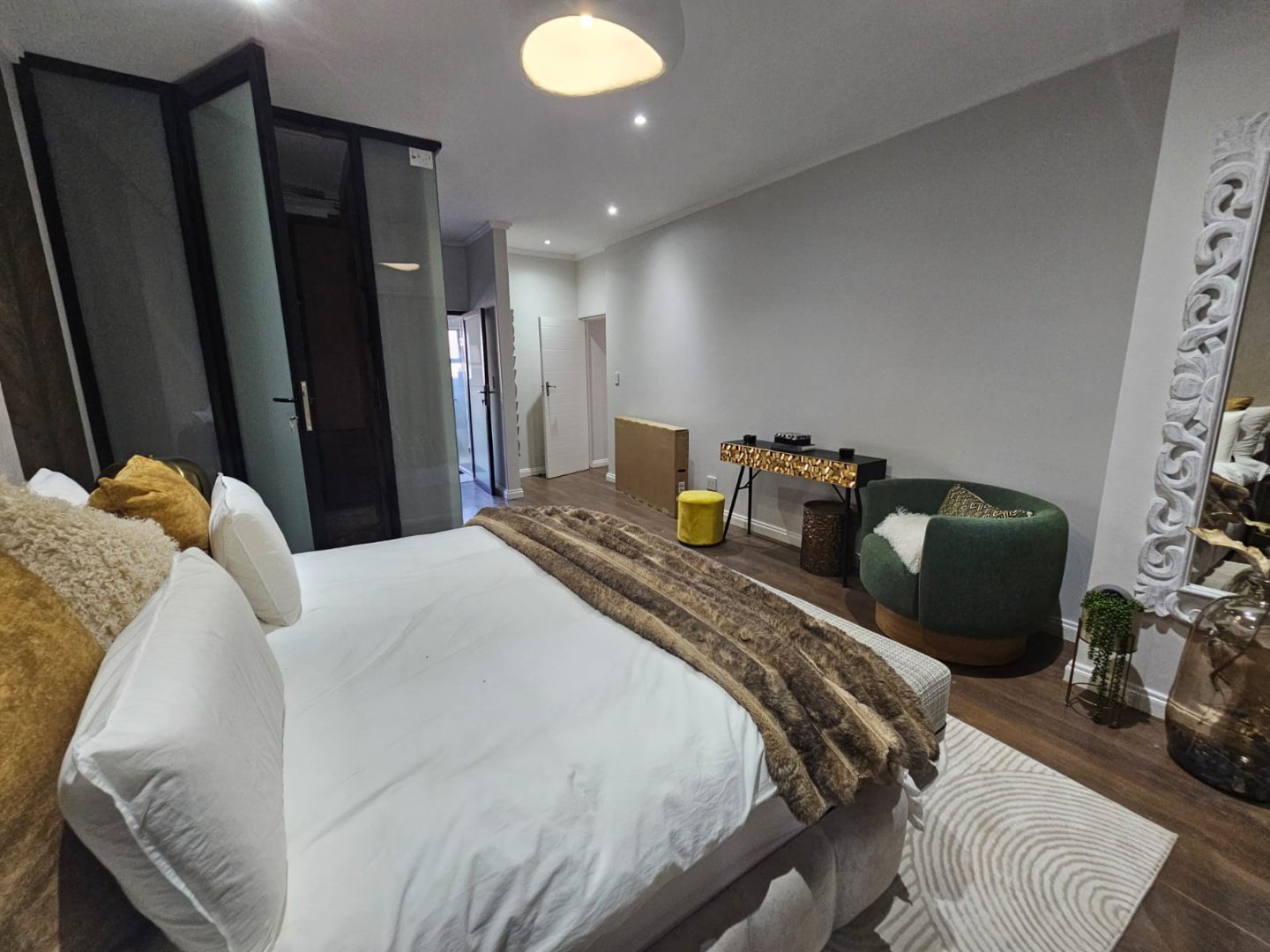 This breathtaking home offers a blend of modern design and luxury living with premium high gloss finishes throughout. The ground floor showcases an expansive open-plan kitchen, complete with a separate scullery, seamlessly connecting to the dining and living areas. These spaces flow effortlessly out to a covered patio, perfect for year-round entertaining, featuring a sparkling pool and a cozy boma area.