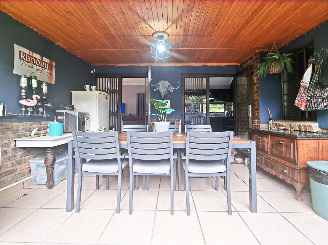 Living areas, with an air-conditioner, flow to patio with built in braai.