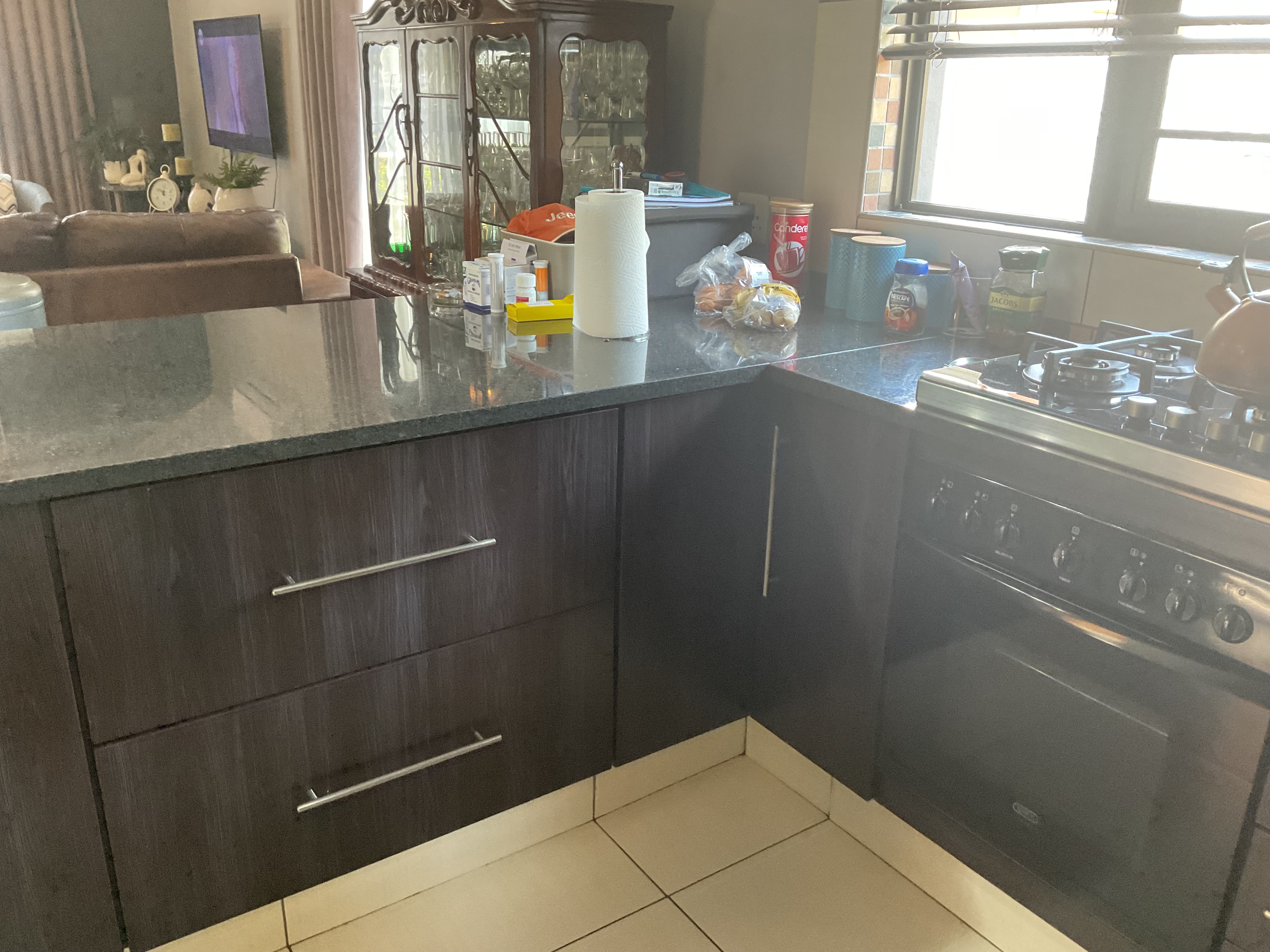 The heart of the house is the open-plan kitchen and lounge, designed for effortless living and entertaining. The kitchen is complemented by a separate scullery and laundry, keeping the living space neat and functional. The lounge flows seamlessly onto a covered patio with a built-in braai, perfect for relaxed gatherings.