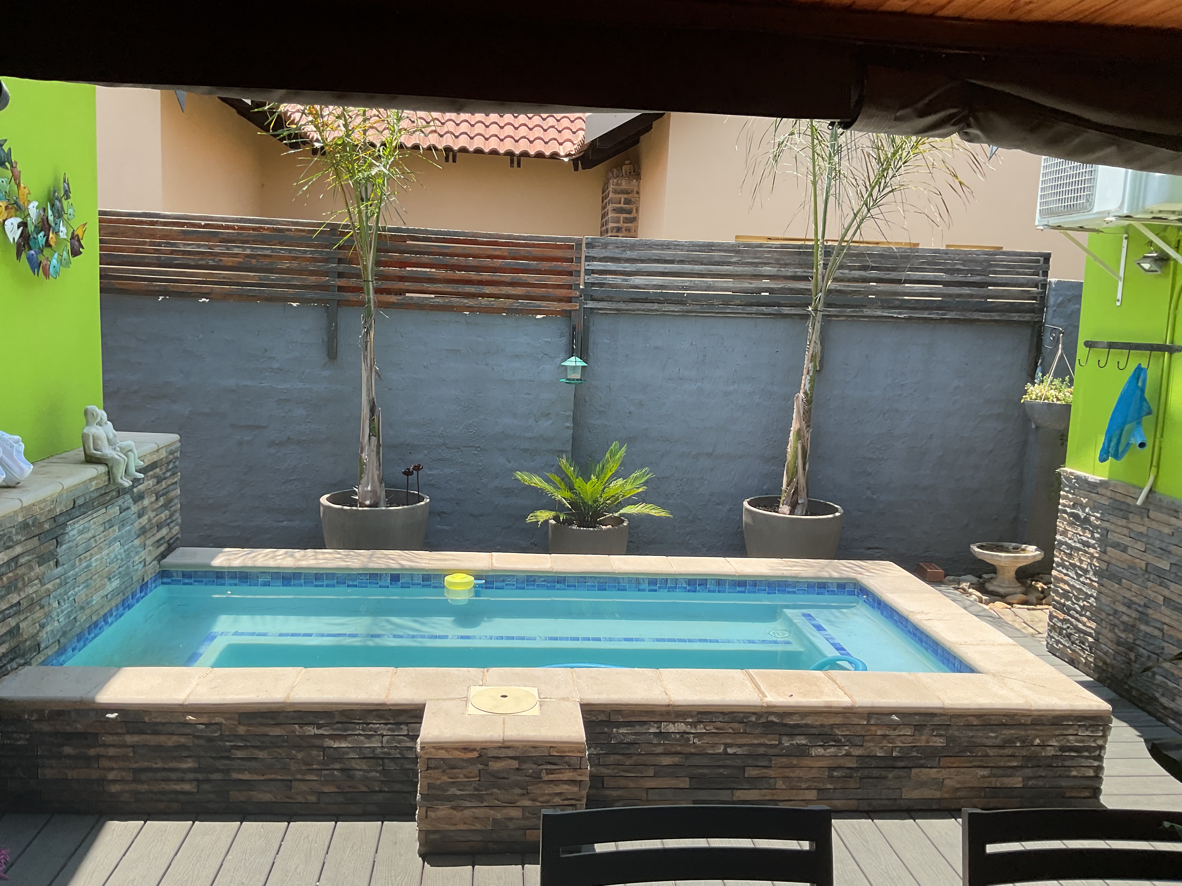 Outside, you’ll find a low-maintenance garden and a small swimming pool, offering just the right balance of outdoor enjoyment without the upkeep. An inverter system adds peace of mind during power outages.