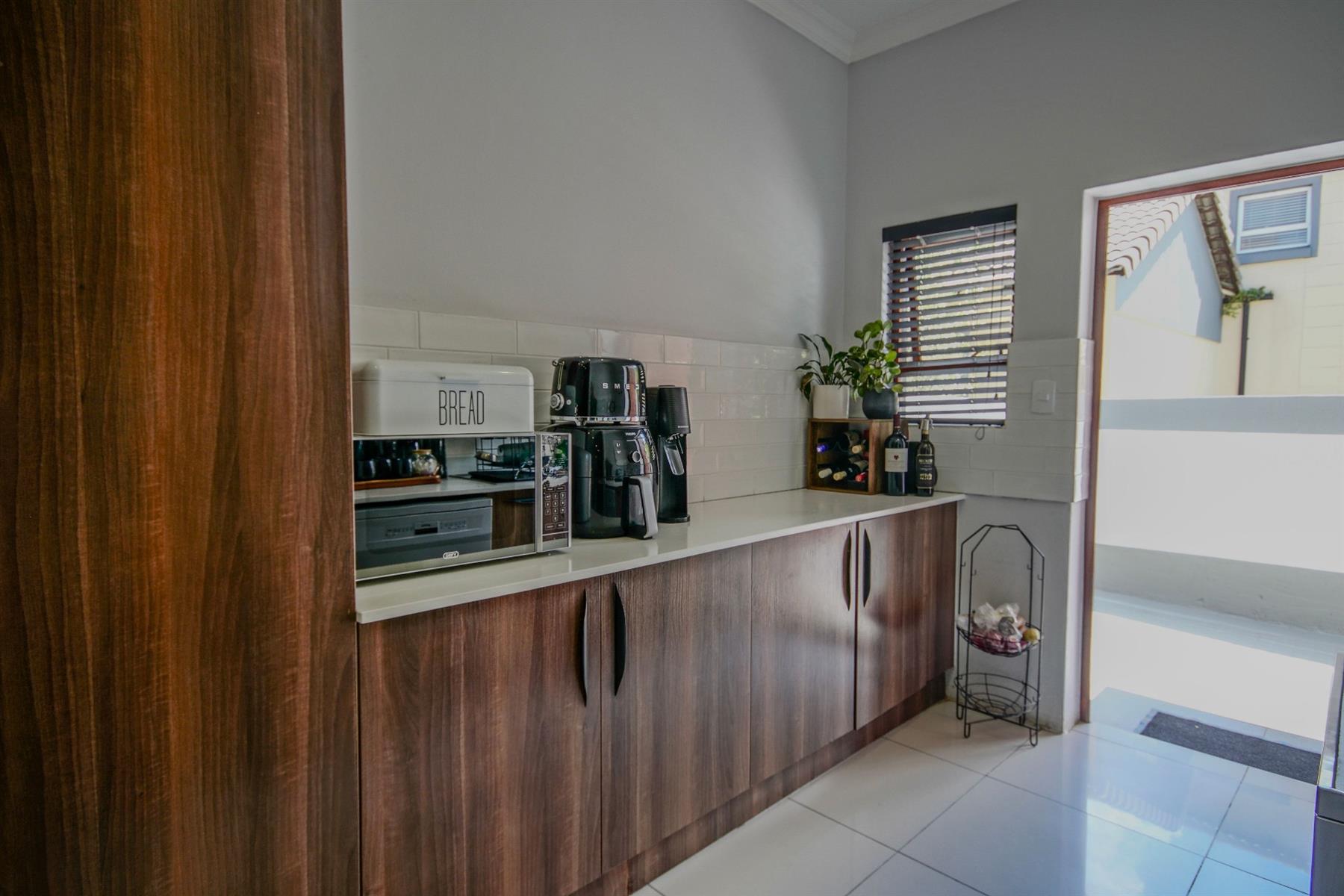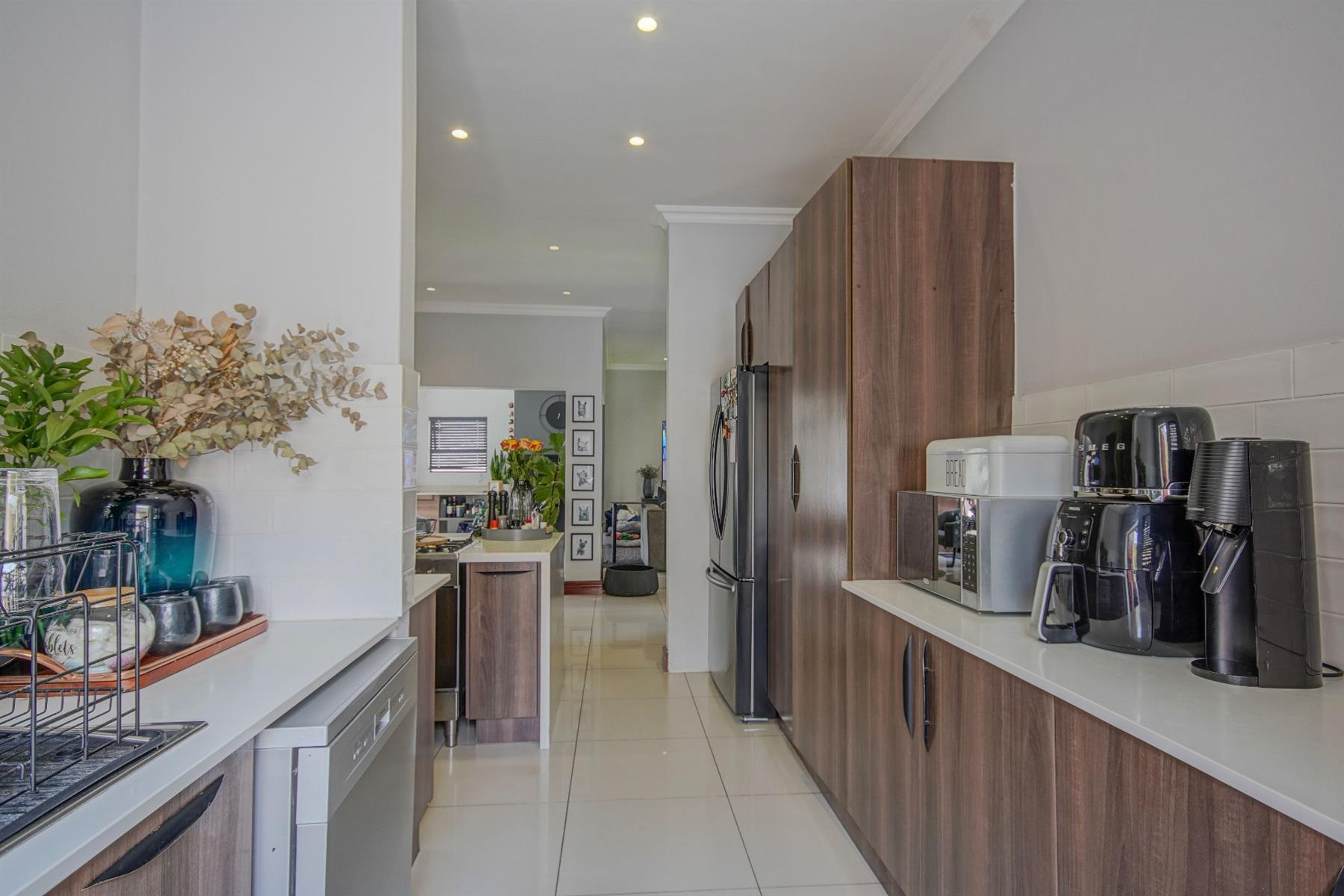Conveniently positioned with easy access to main routes, quality schools, medical facilities and shopping centres, this three-bedroom home offers peace of mind without compromising on everyday convenience. Thoughtfully planned with efficiency in mind, it is equipped with eight solar panels, a 24 000 BTU air-conditioning system in the living area, a 5 kVA inverter with a 10 kVA battery, and a gas hob in the kitchen. Together, these features ensure reduced utility costs and reliable energy support.