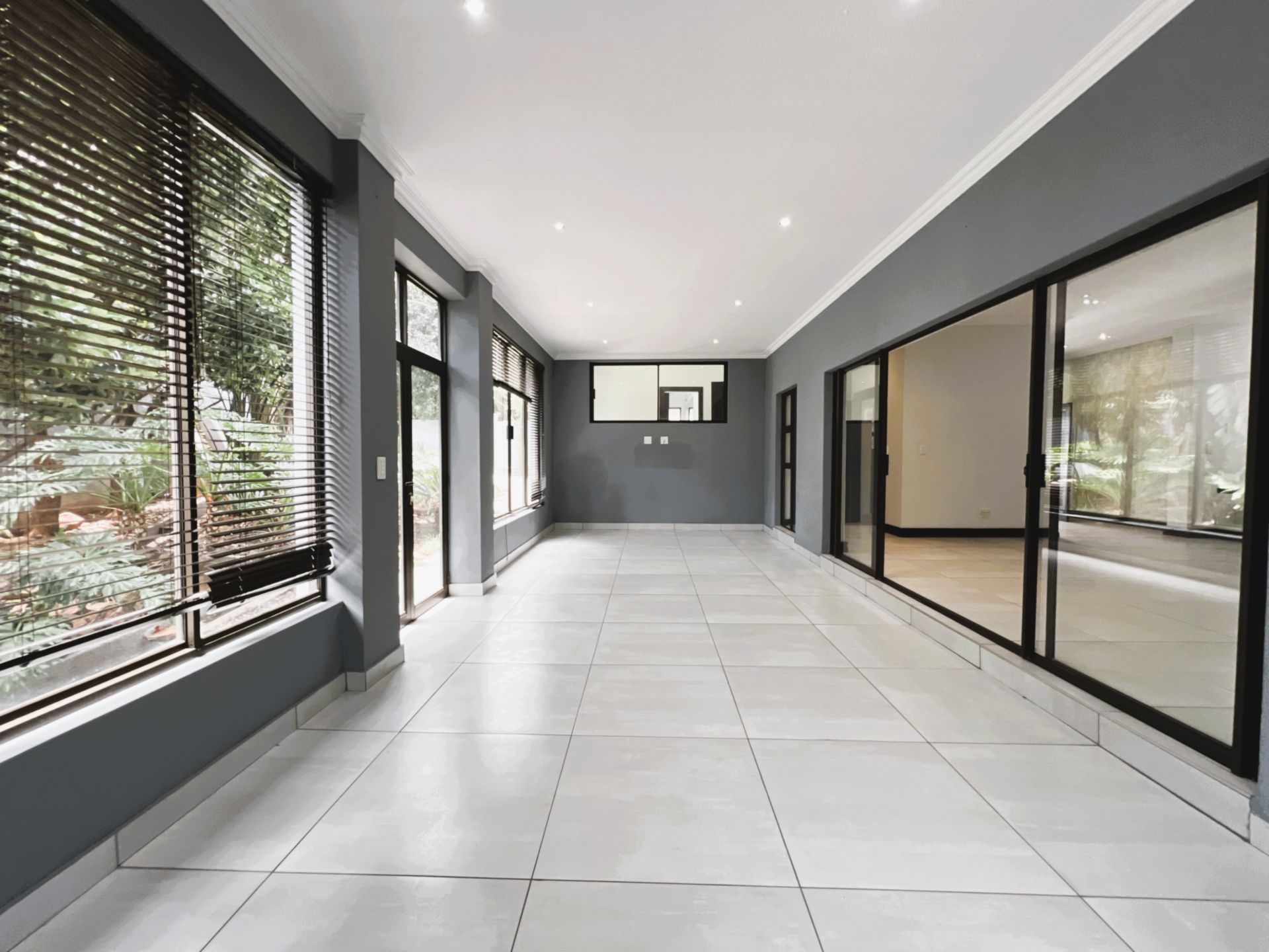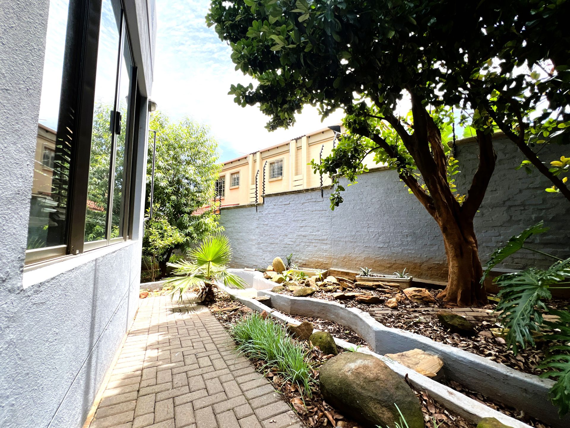 Outdoor living is equally impressive, with a meticulously landscaped semi-tropical garden featuring striking tree aloes and lush plant life that create a peaceful, resort-like atmosphere. The beautifully paved swimming pool area invites relaxation and entertainment, while a spacious courtyard offers additional versatile outdoor living space.