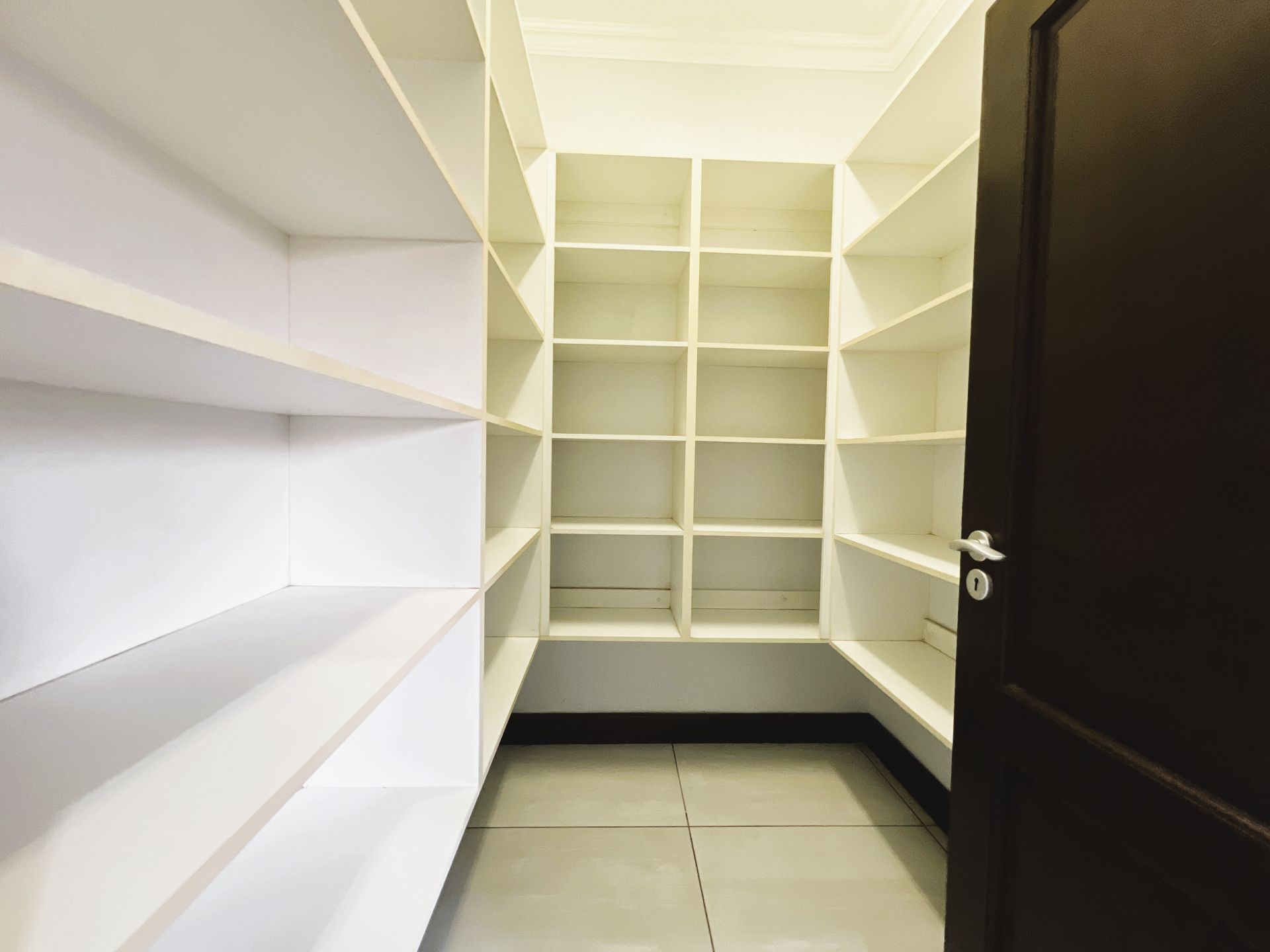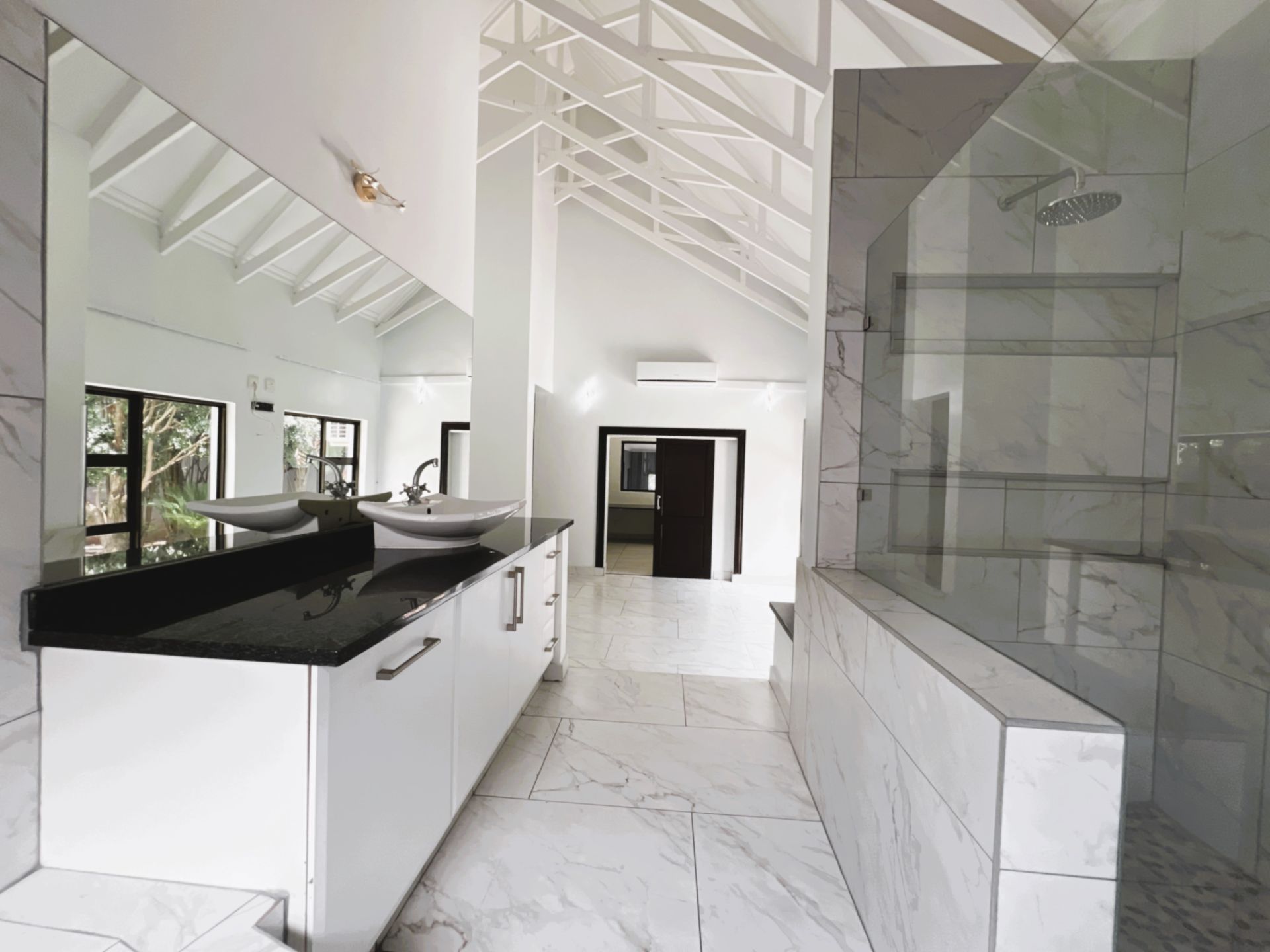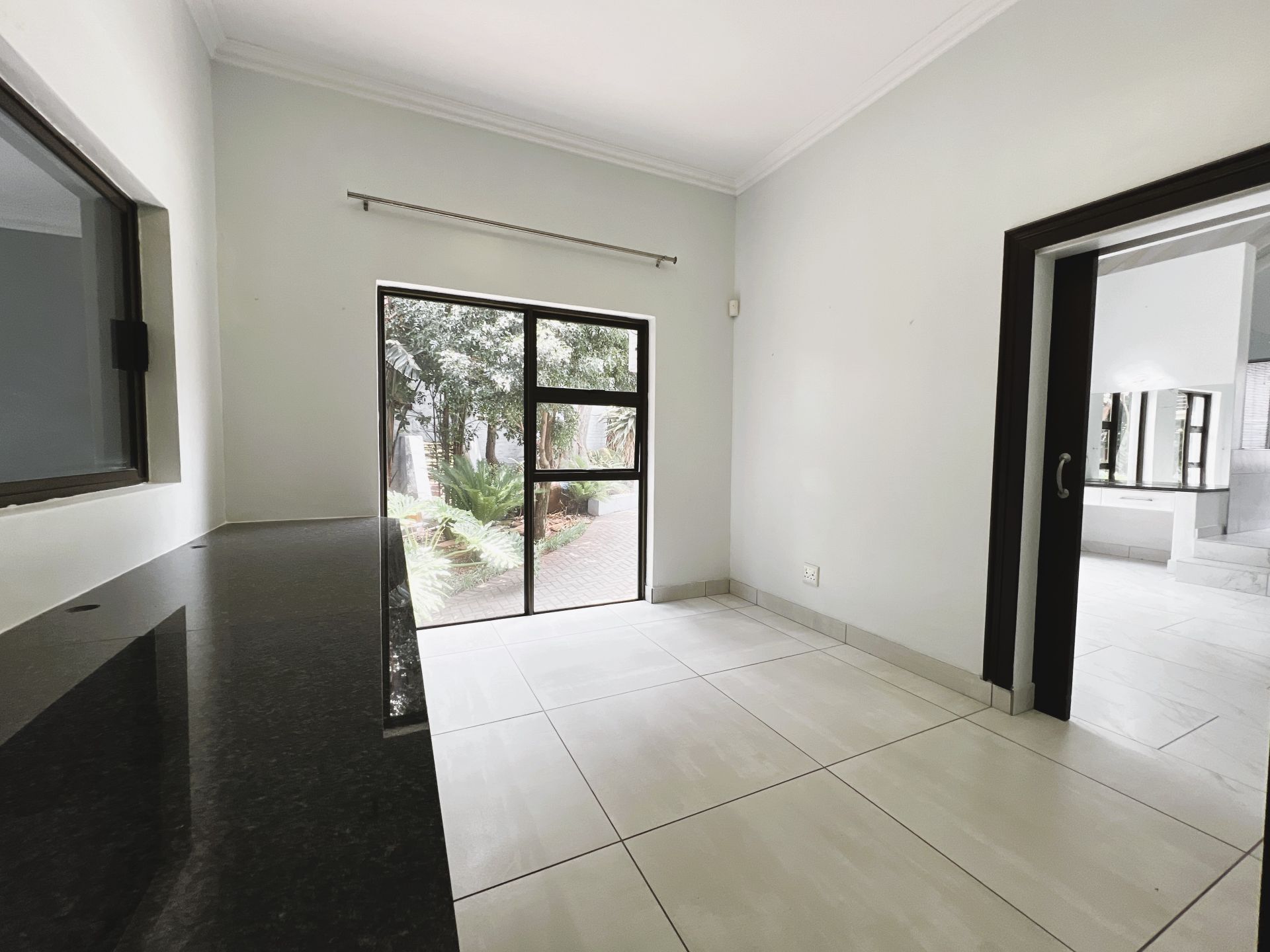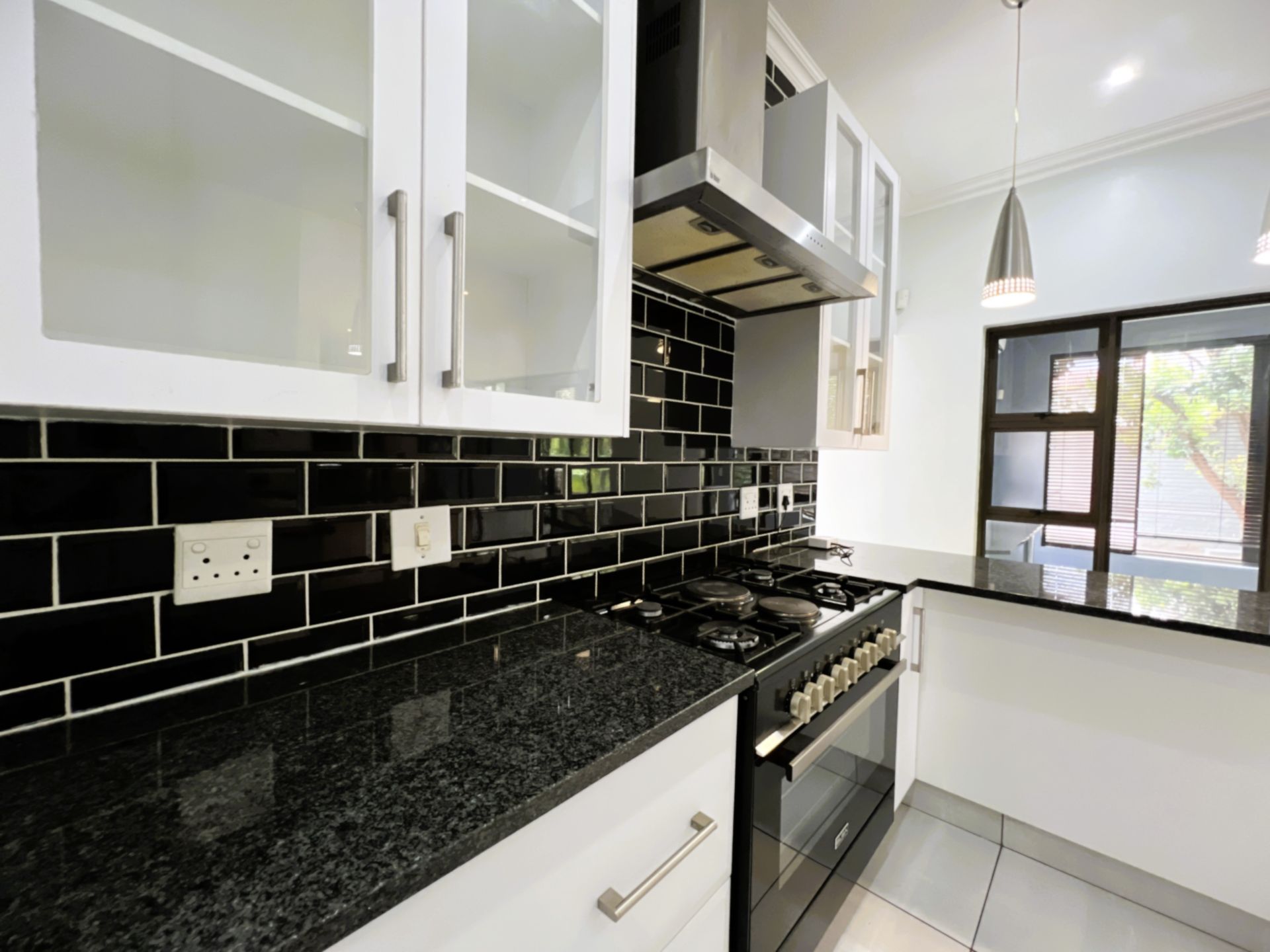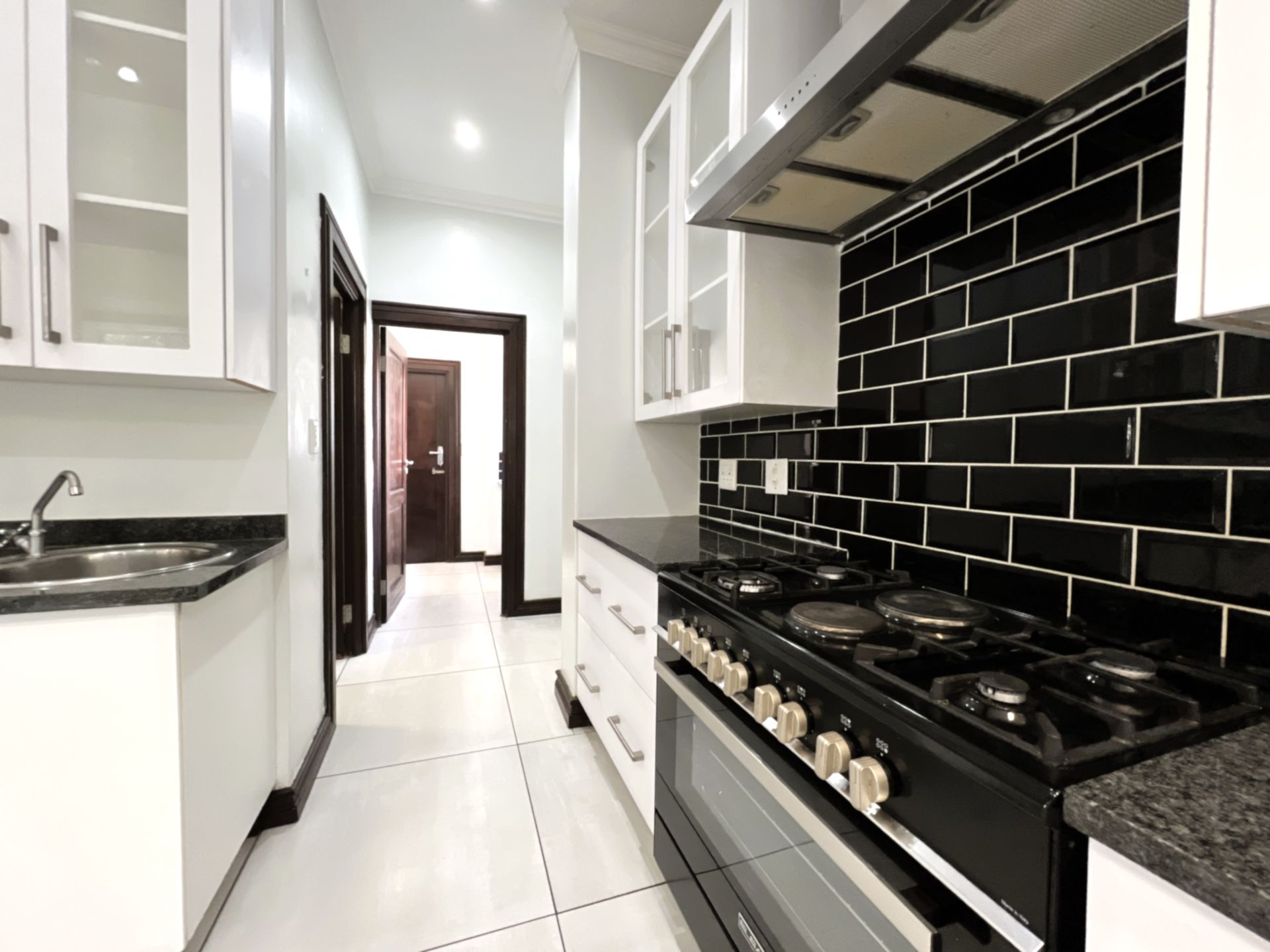 At the heart of the home is a beautifully designed gourmet kitchen that will delight any home chef. Featuring granite countertops, a breakfast bar, glass-fronted cabinetry, and a five-burner gas stove, the kitchen is both stylish and functional. A separate pantry and scullery ensure effortless meal preparation and seamless entertaining.