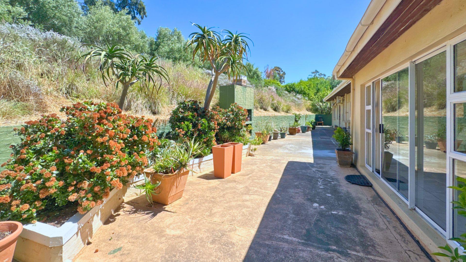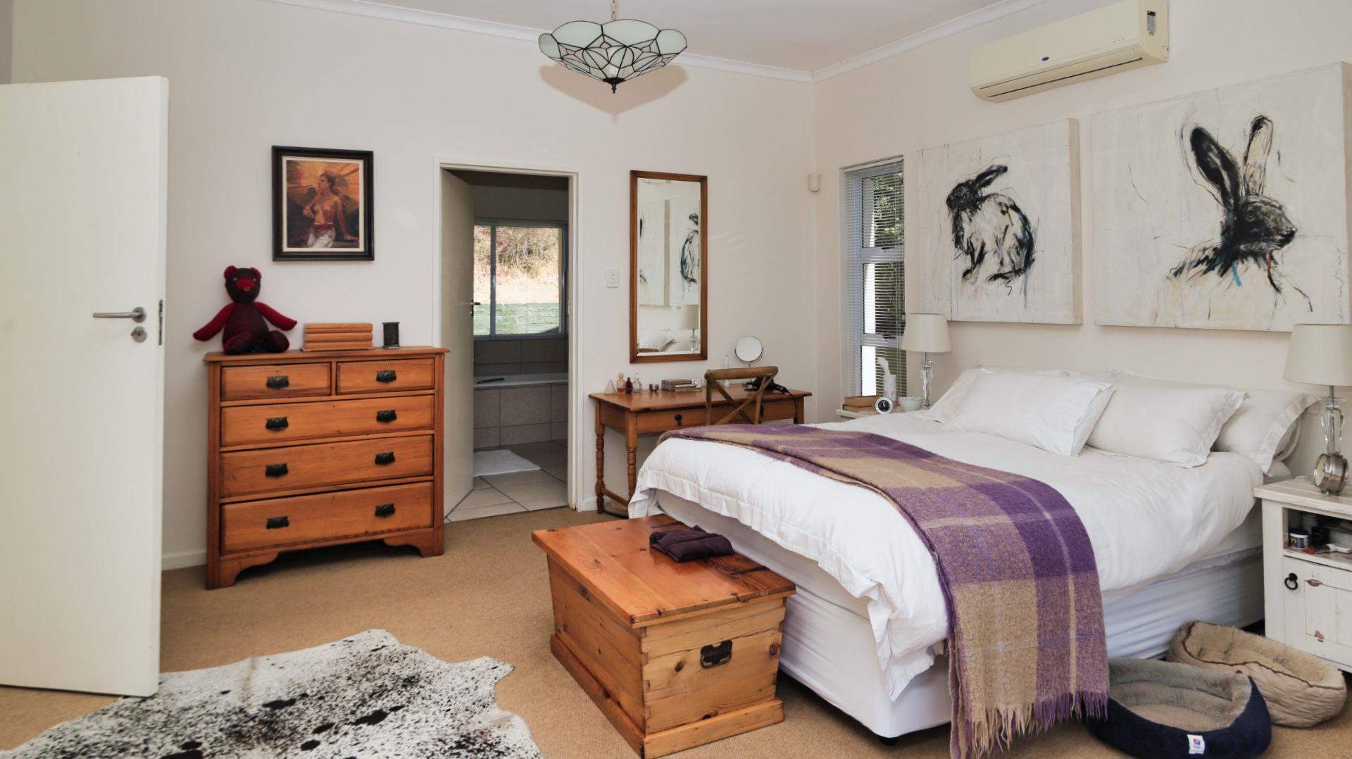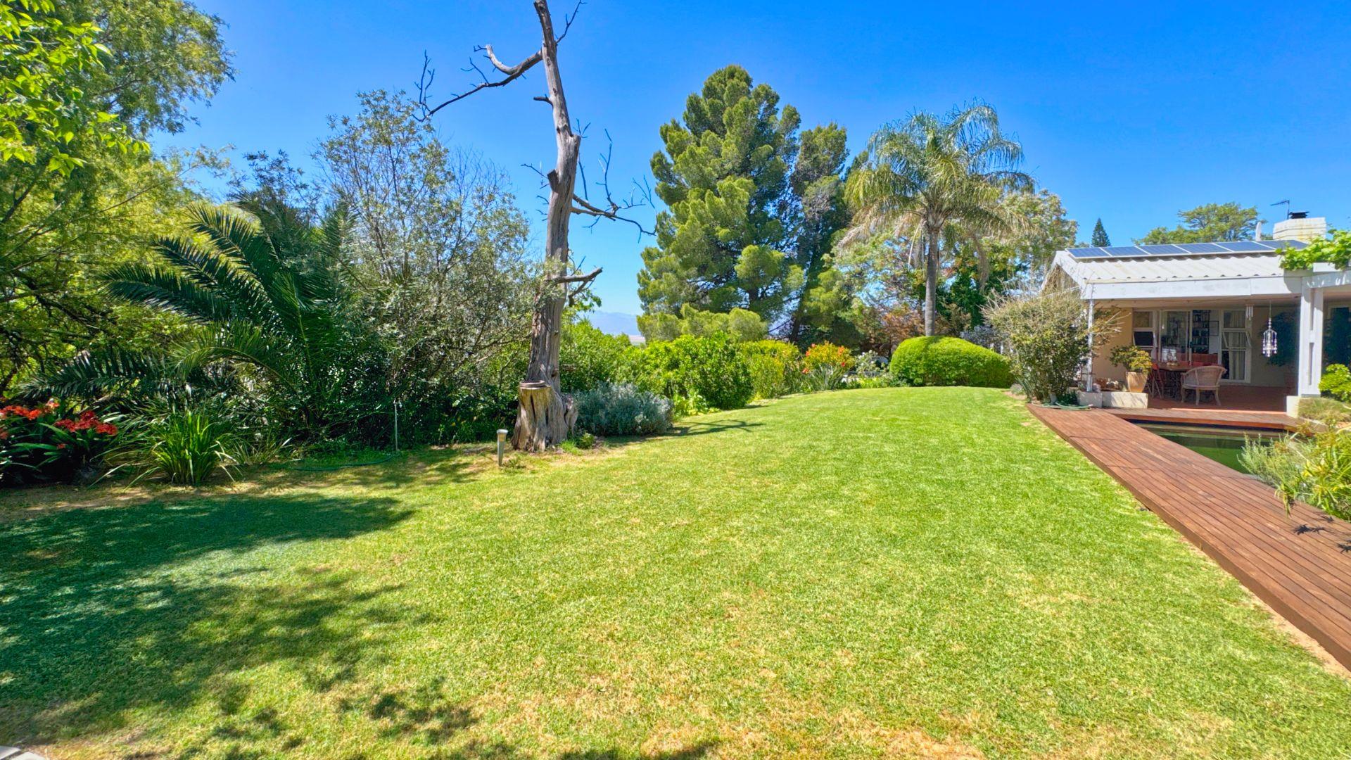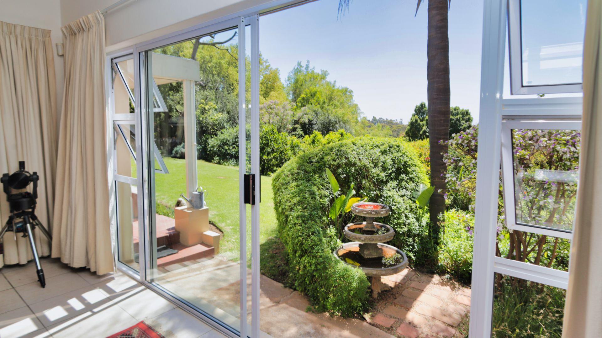 Modern conveniences include an inverter and power backup system, connected to all the lighting and most plugs, plus a solar geyser. An excellent borehole (which can be switched to supply the house as well when needed) and automatic watering system ensure that the garden is easily nurtured.