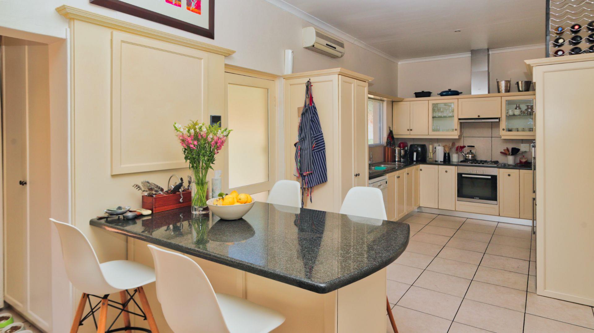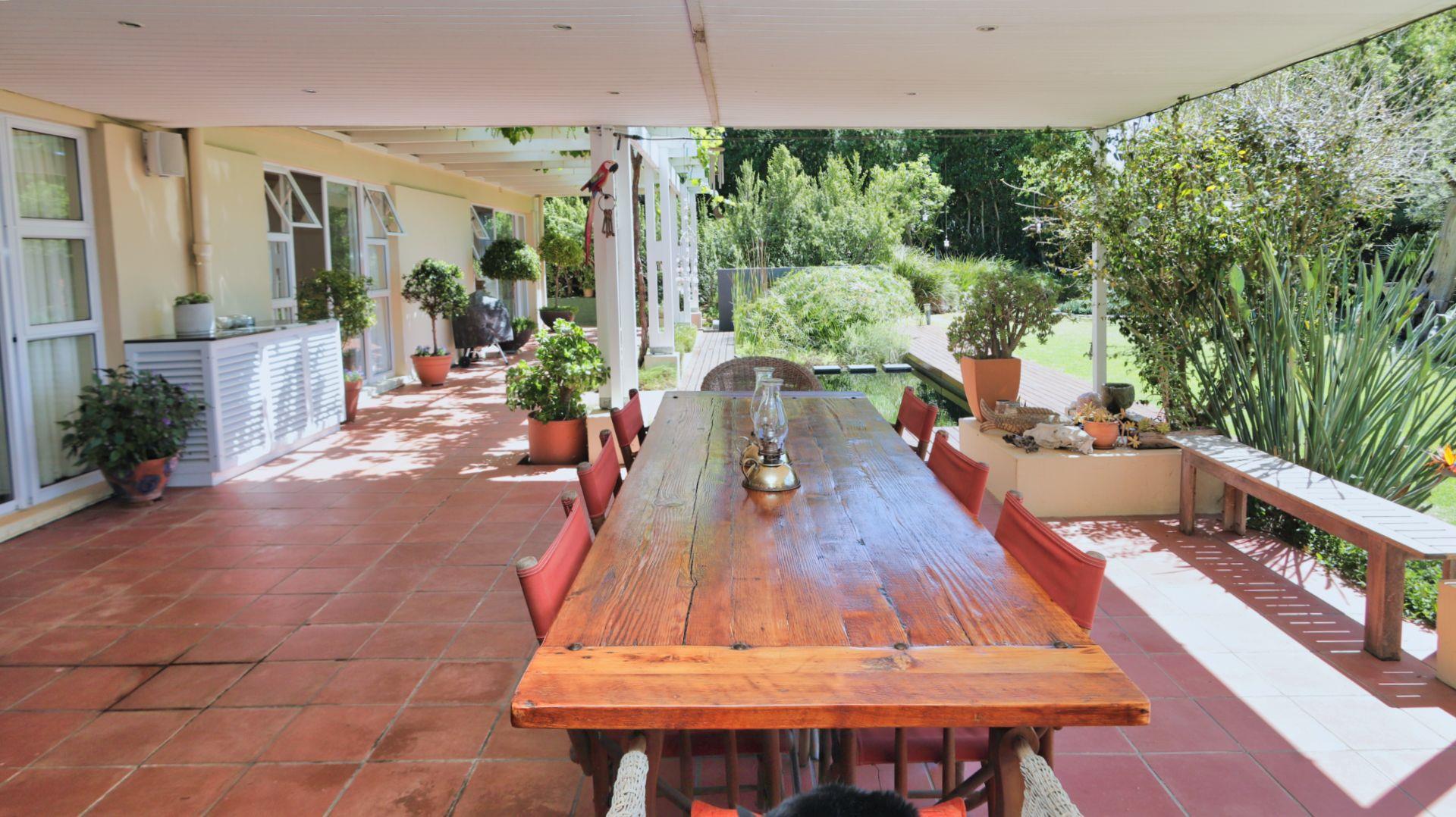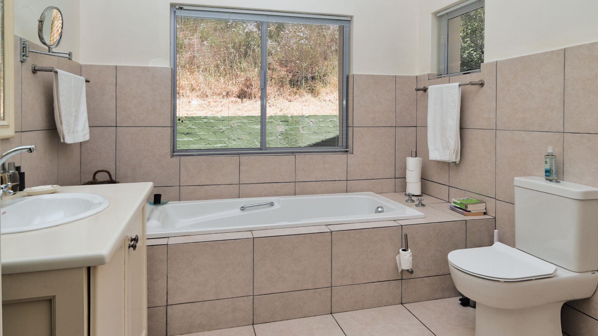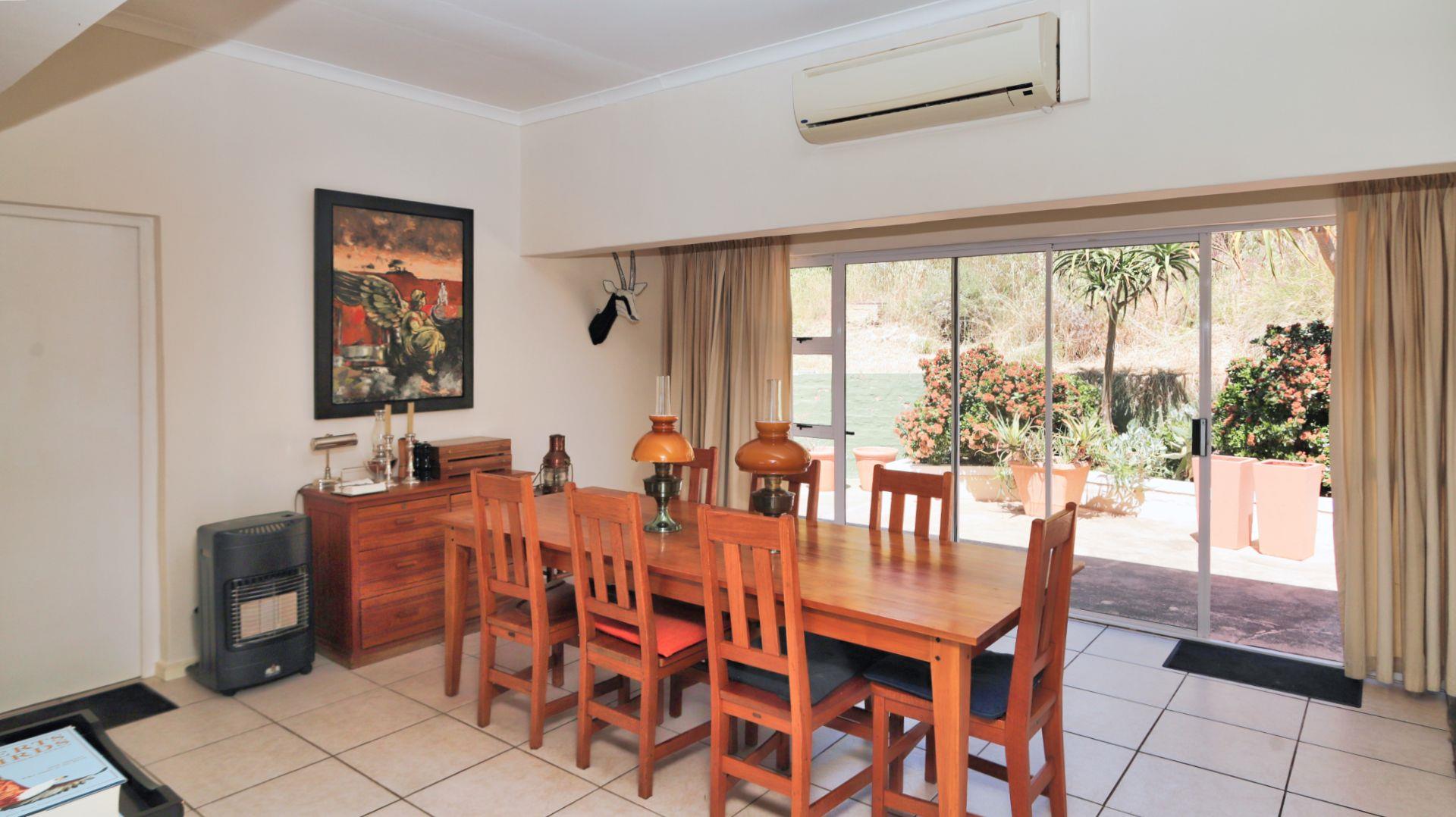 Modern conveniences include an inverter and power backup system, connected to all the lighting and most plugs, plus a solar geyser. An excellent borehole (which can be switched to supply the house as well when needed) and automatic watering system ensure that the garden is easily nurtured.