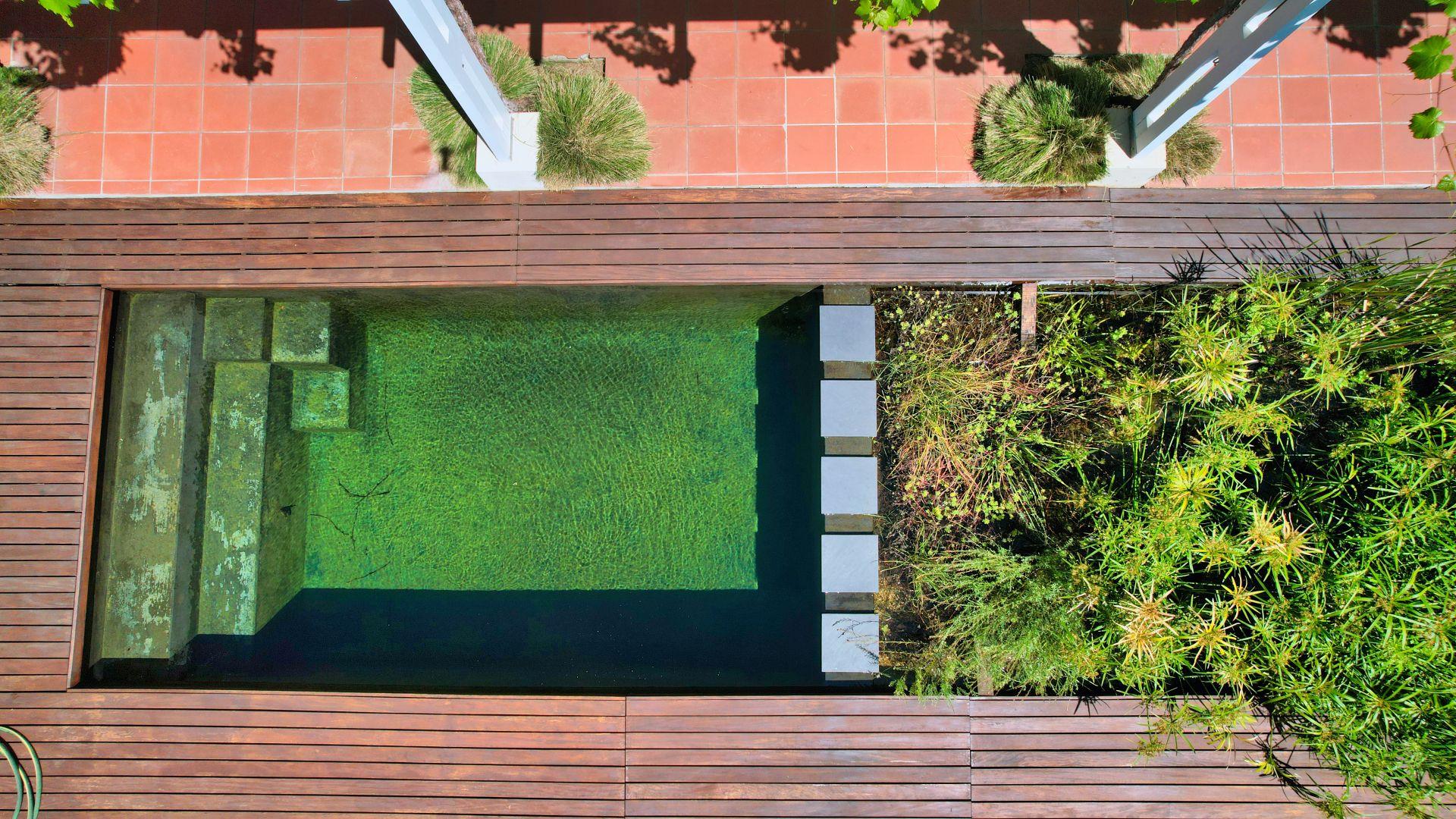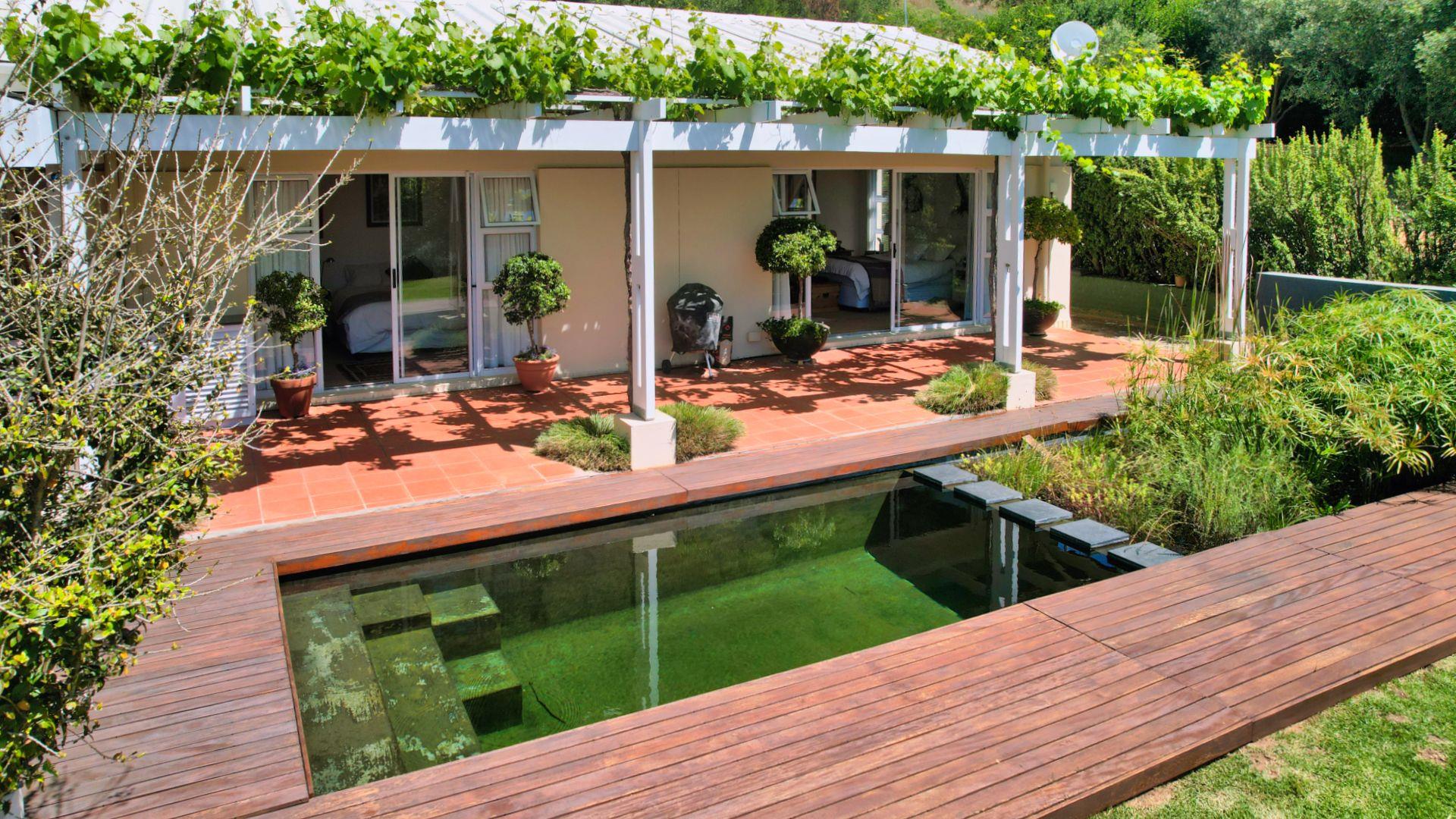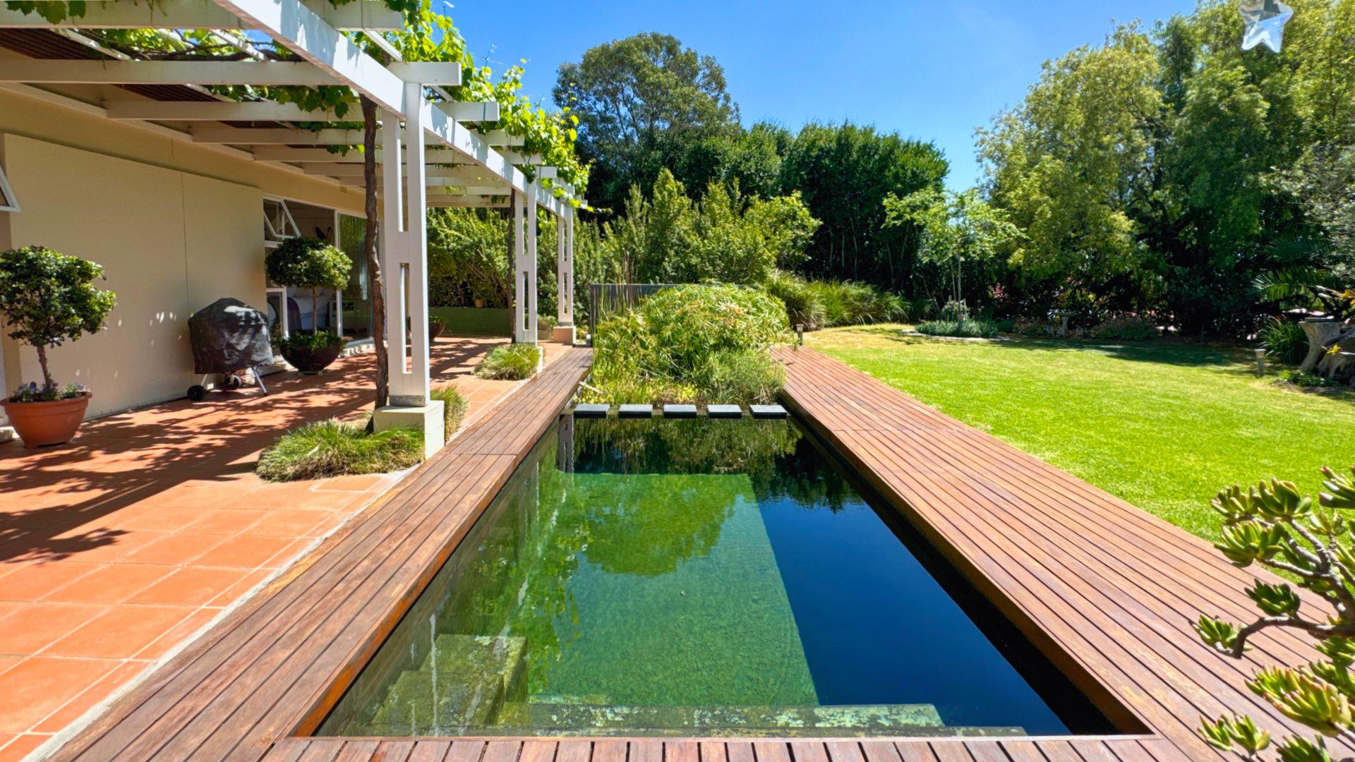 The property’s jewel is its natural eco pool—providing a tranquil chemical-free haven alongside the large patio and vine-covered verandah.