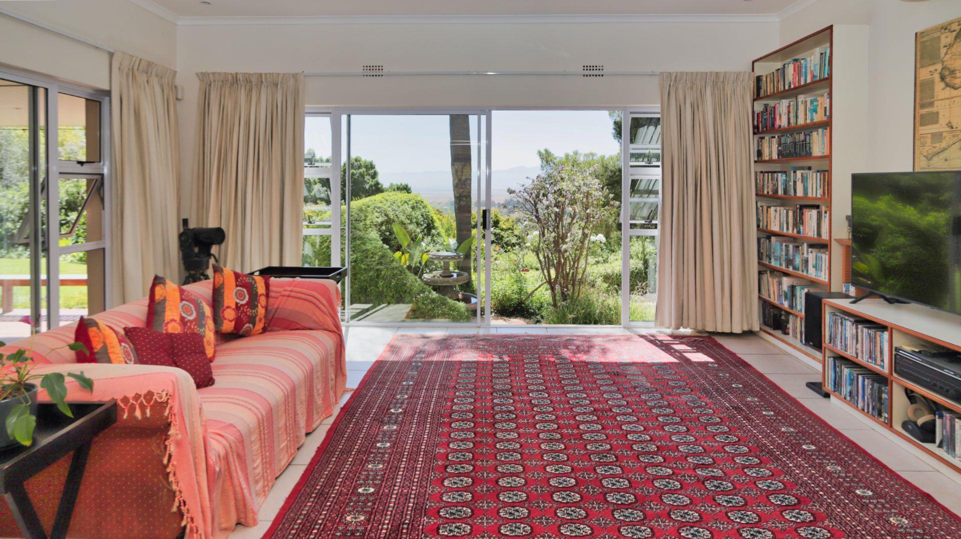 Set high on the Kasteelberg in the secure Ongegund Village in the Riebeek Valley, this spacious, light-filled 4-bedroom home boasts a spectacular setting. Its panoramic views stretch across the valley to the Groot Winterhoek mountains, while the lush, established garden offers total privacy.