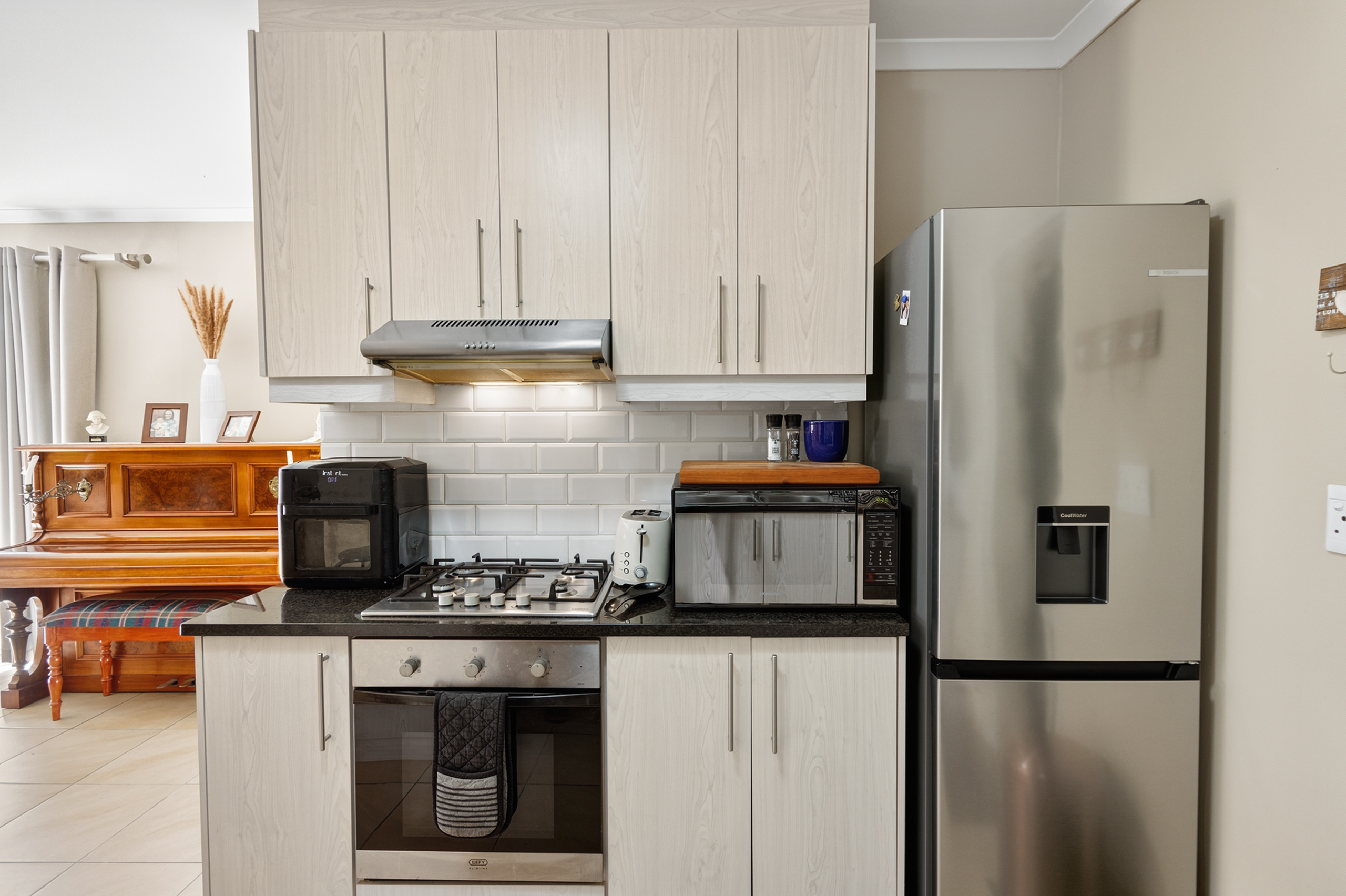 Featuring 3 spacious bedrooms and 2 bathrooms - (including a luxurious main en-suite), this residence offers a bright and welcoming open-plan living area with an indoor braai complemented by a modern kitchen with granite countertops. The double garage (automated) and low-maintenance garden makes it an ideal lock-up-and-go residence for families or professionals seeking security and convenience.