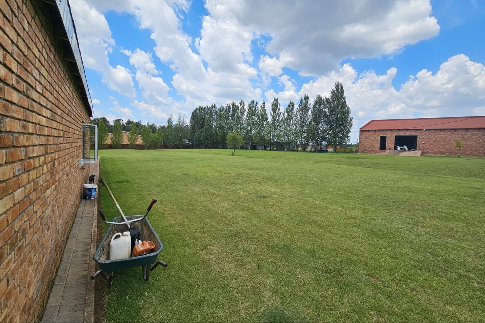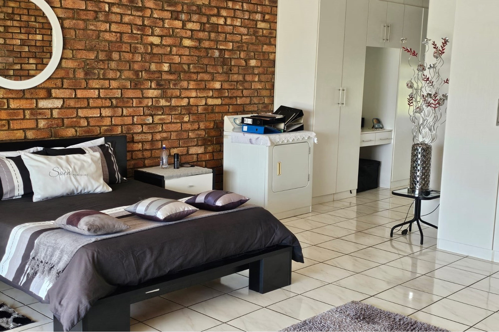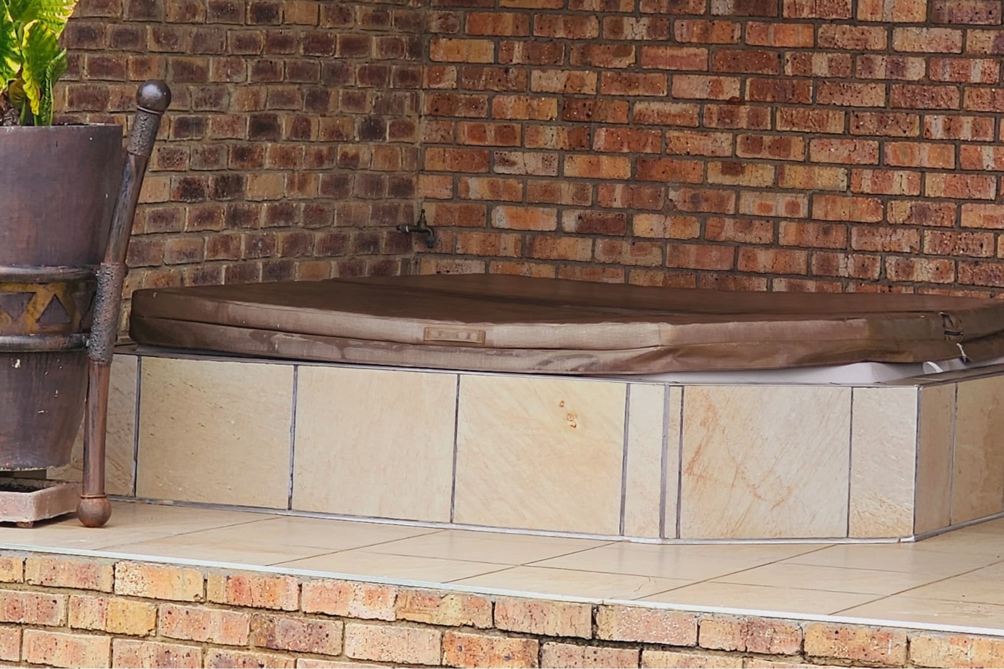 The estate’s beautifully manicured grounds are a verdant oasis, with lush, professionally maintained gardens and a comprehensive irrigation system sourced from a private borehole.