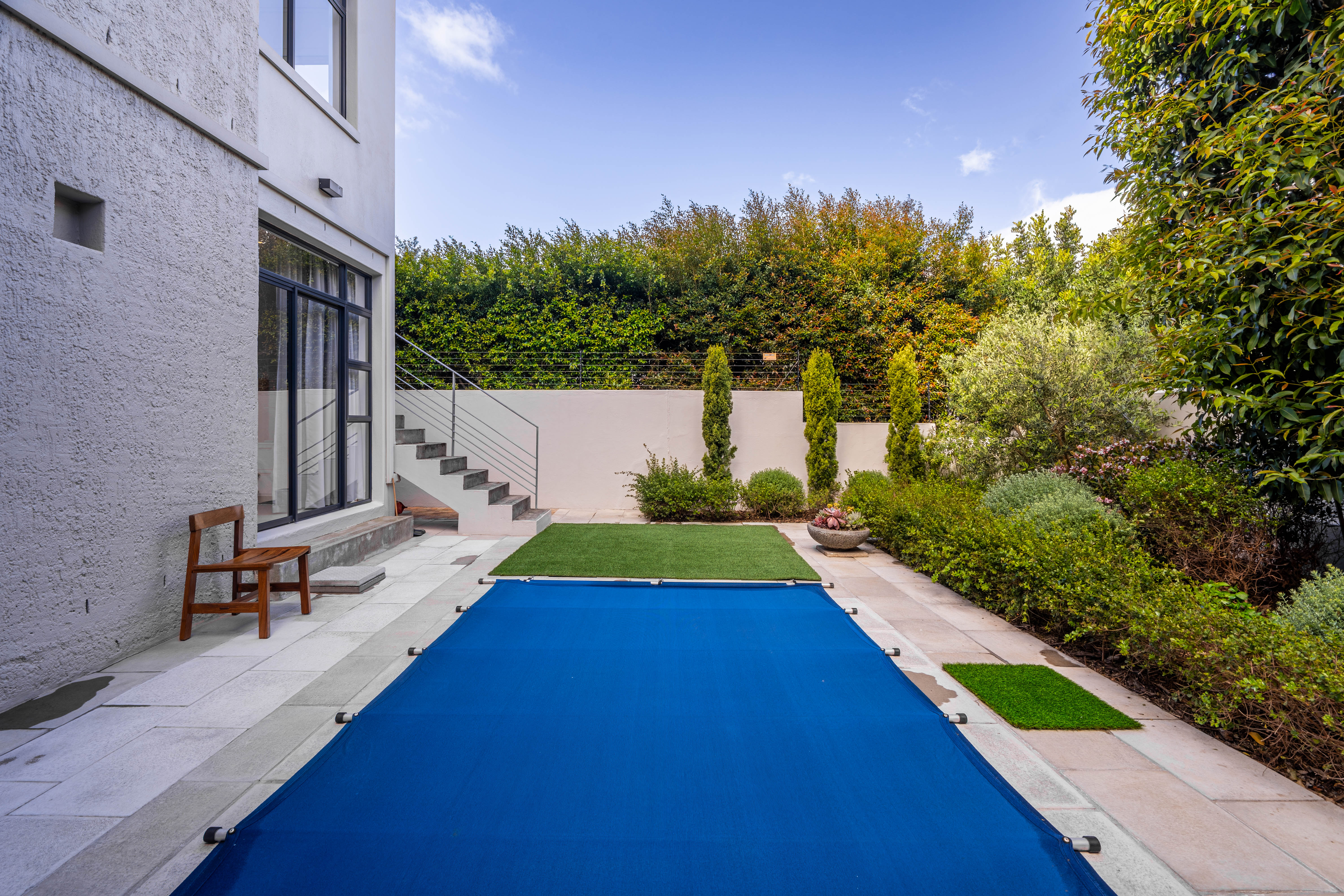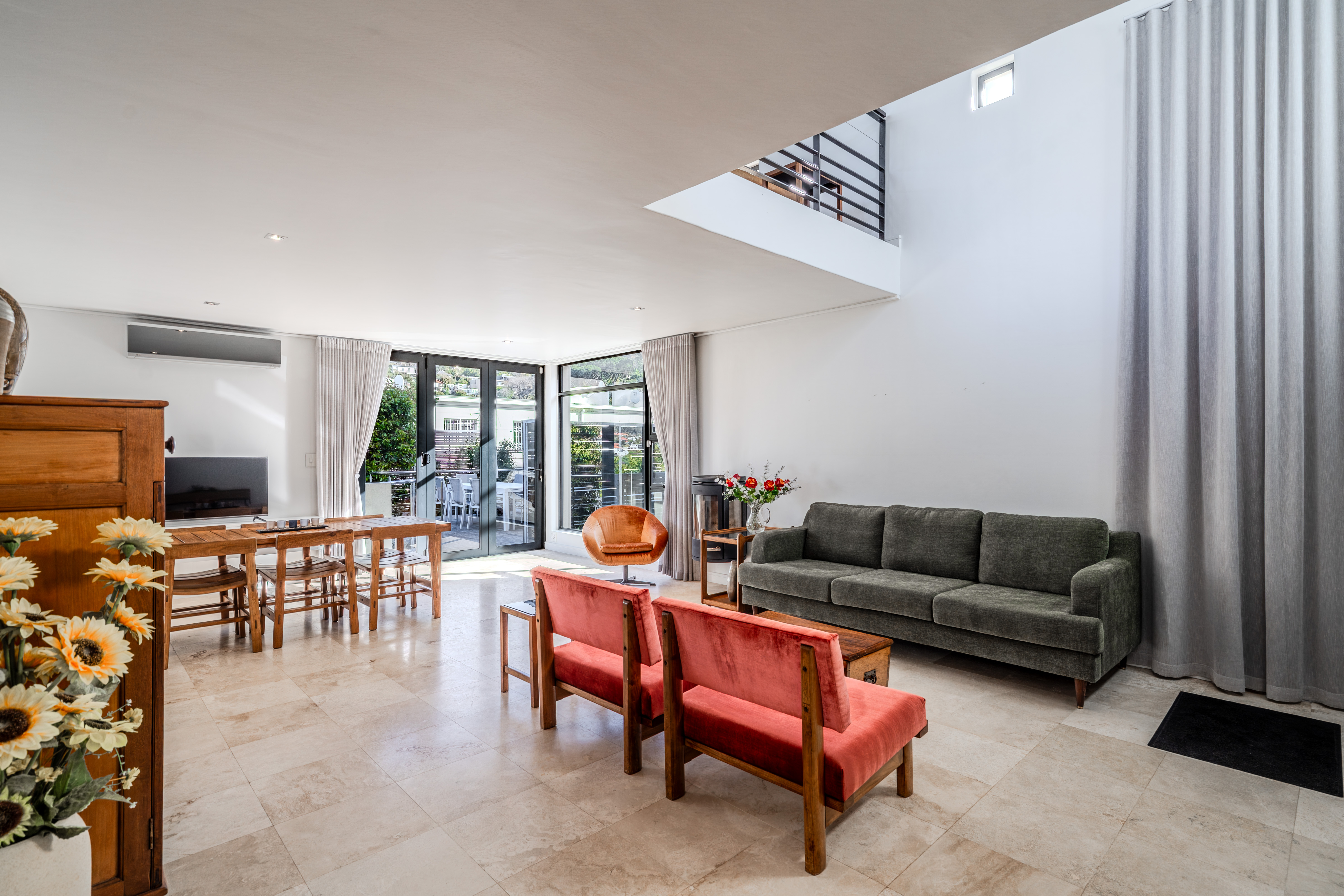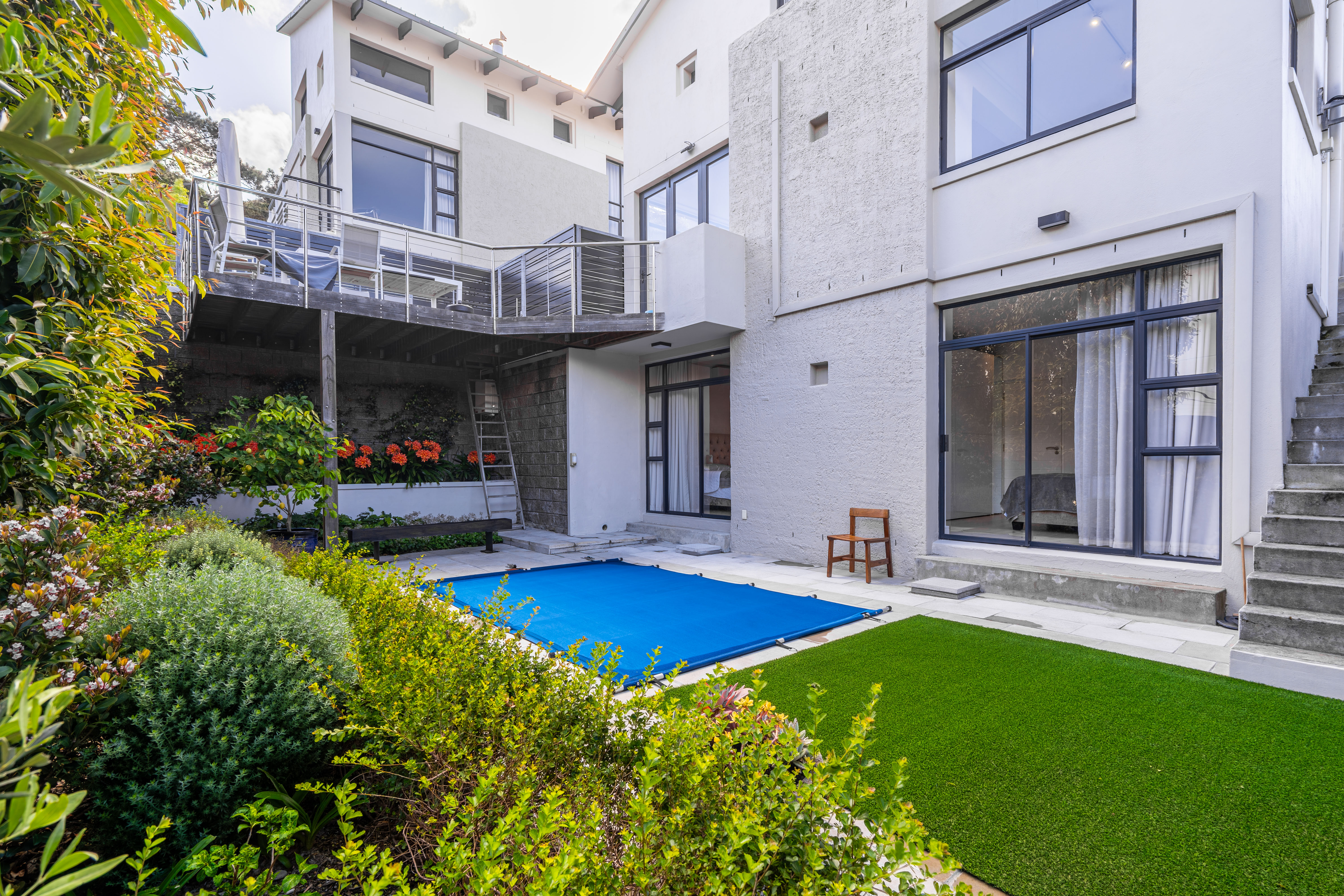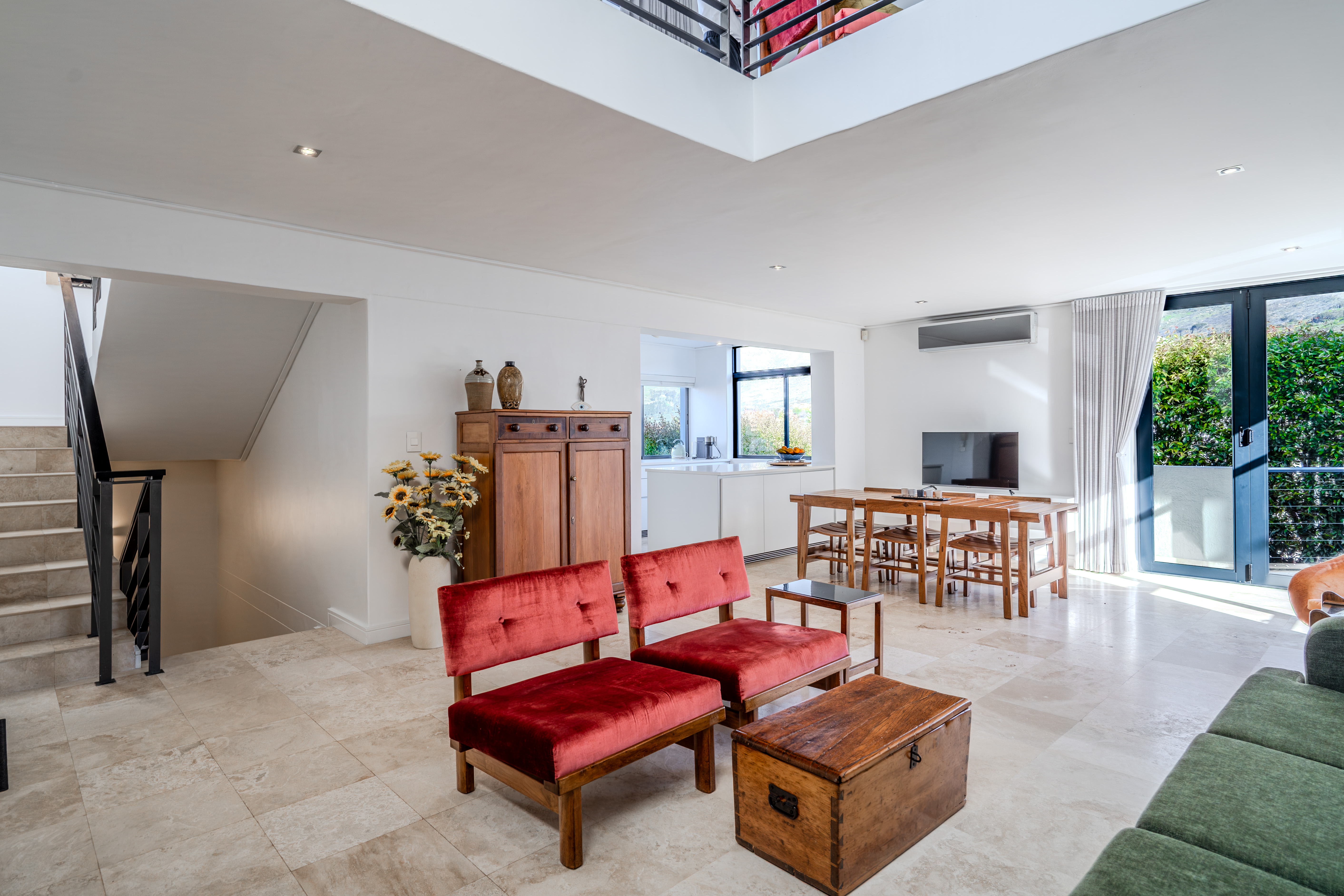 Tucked away in a secure complex just off Kloof Nek Road, this immaculate three-story home combines luxury with low-maintenance living. Bright and airy, the open-plan living area is bathed in natural light, with stacking doors that open onto a deck overlooking the pool and showcasing panoramic views of Table Mountain and Devil’s Peak. The sleek, modern kitchen features integrated appliances seamlessly concealed behind elegant cabinetry, while the double garage provides convenient direct access to the home.