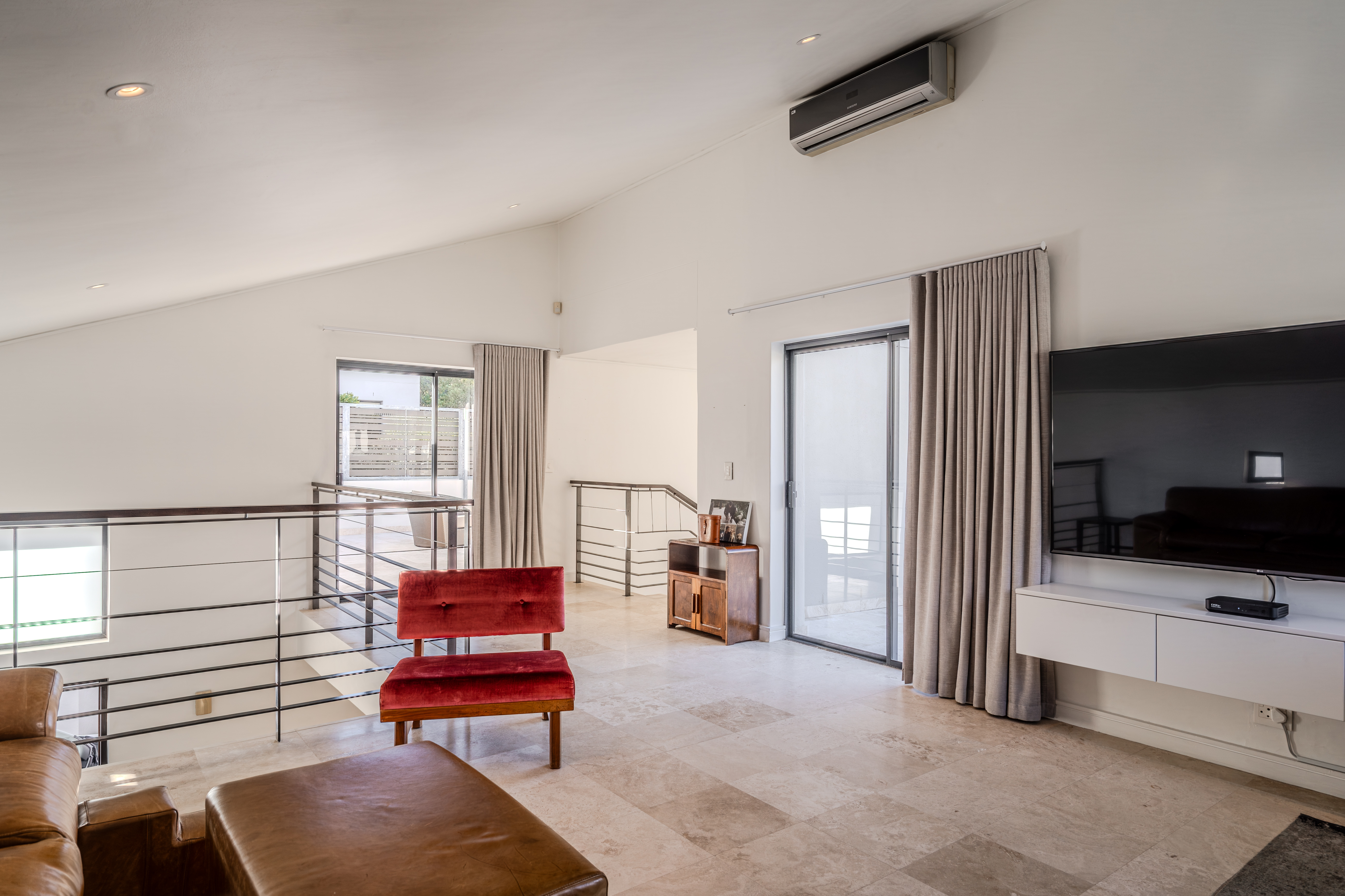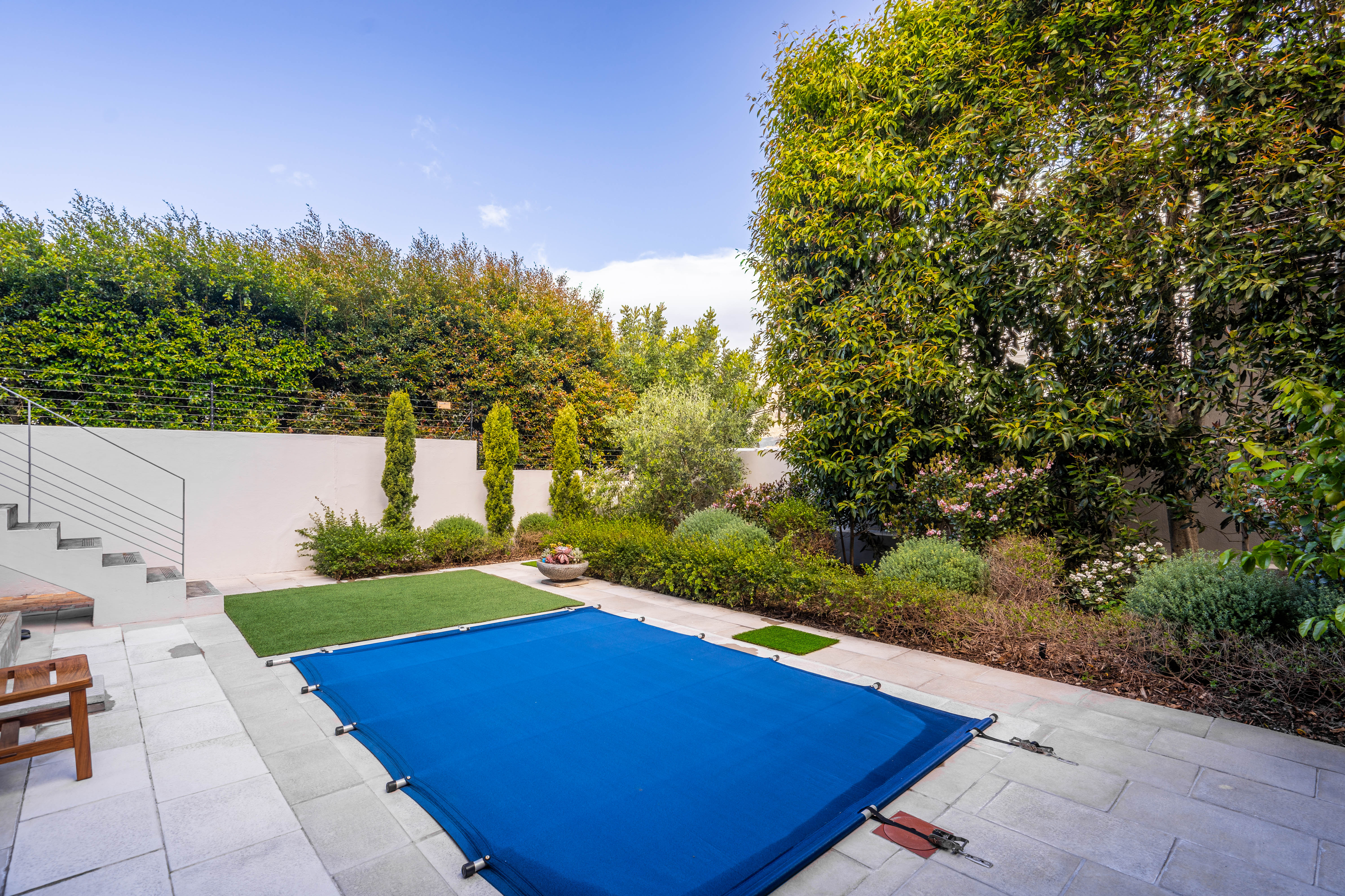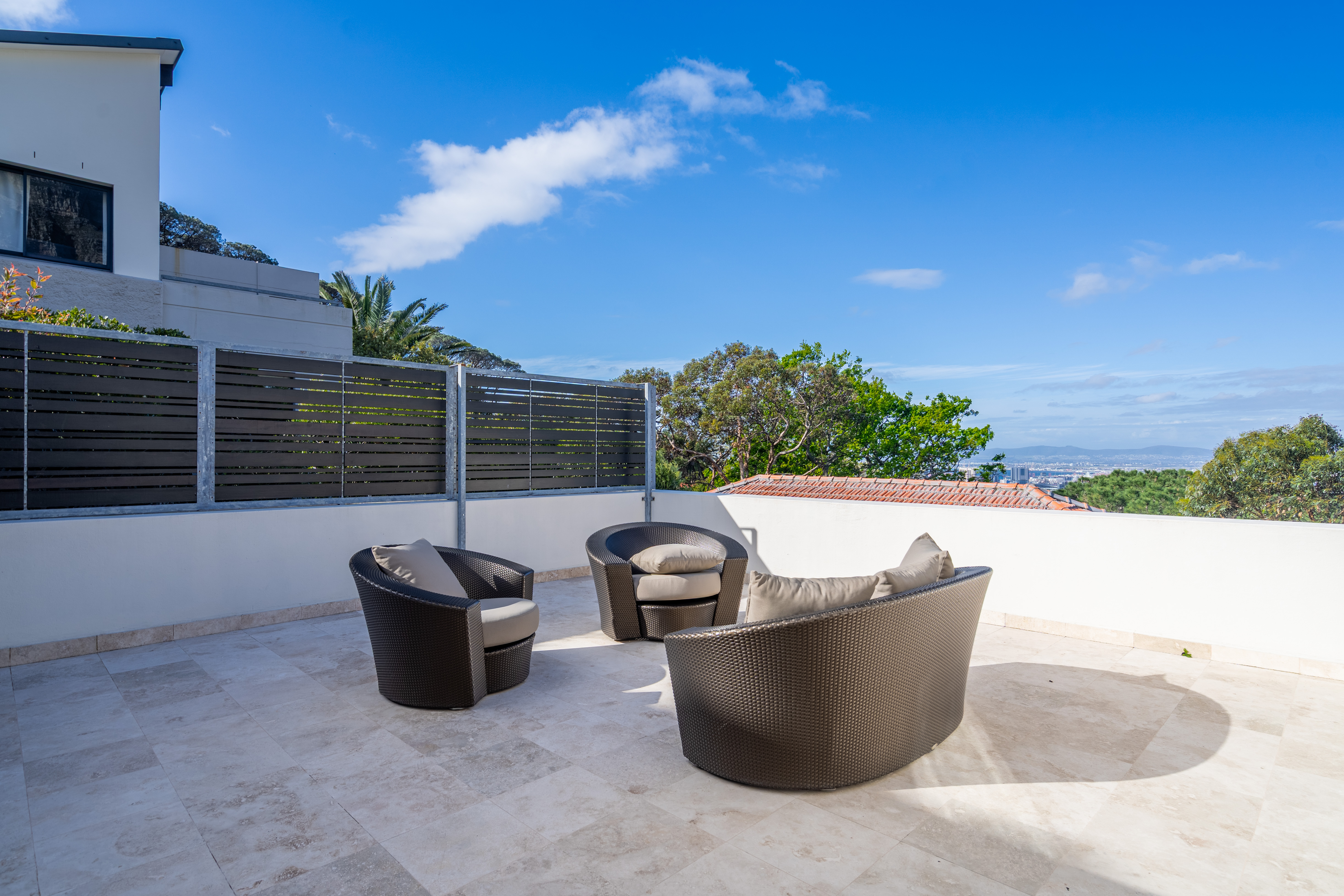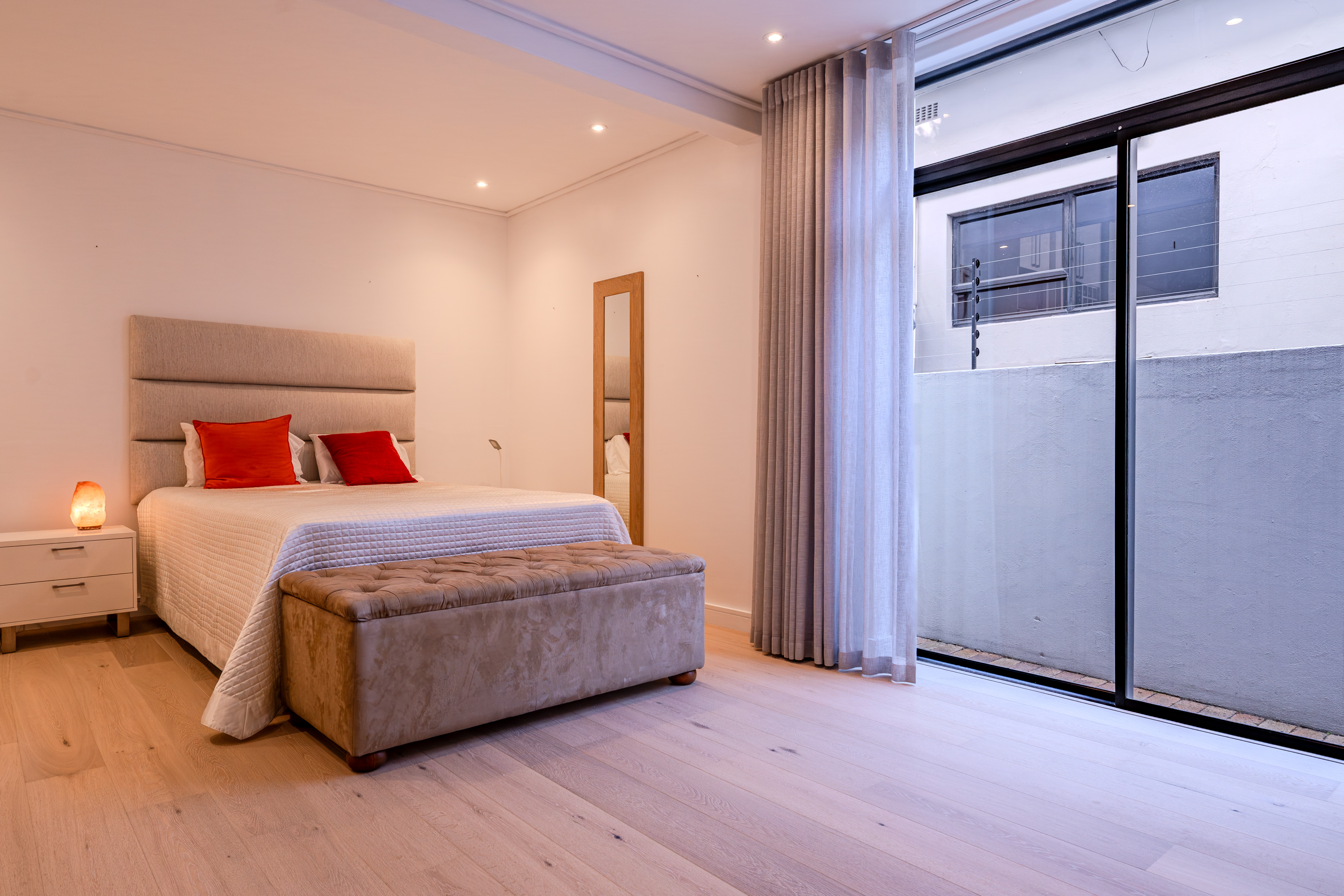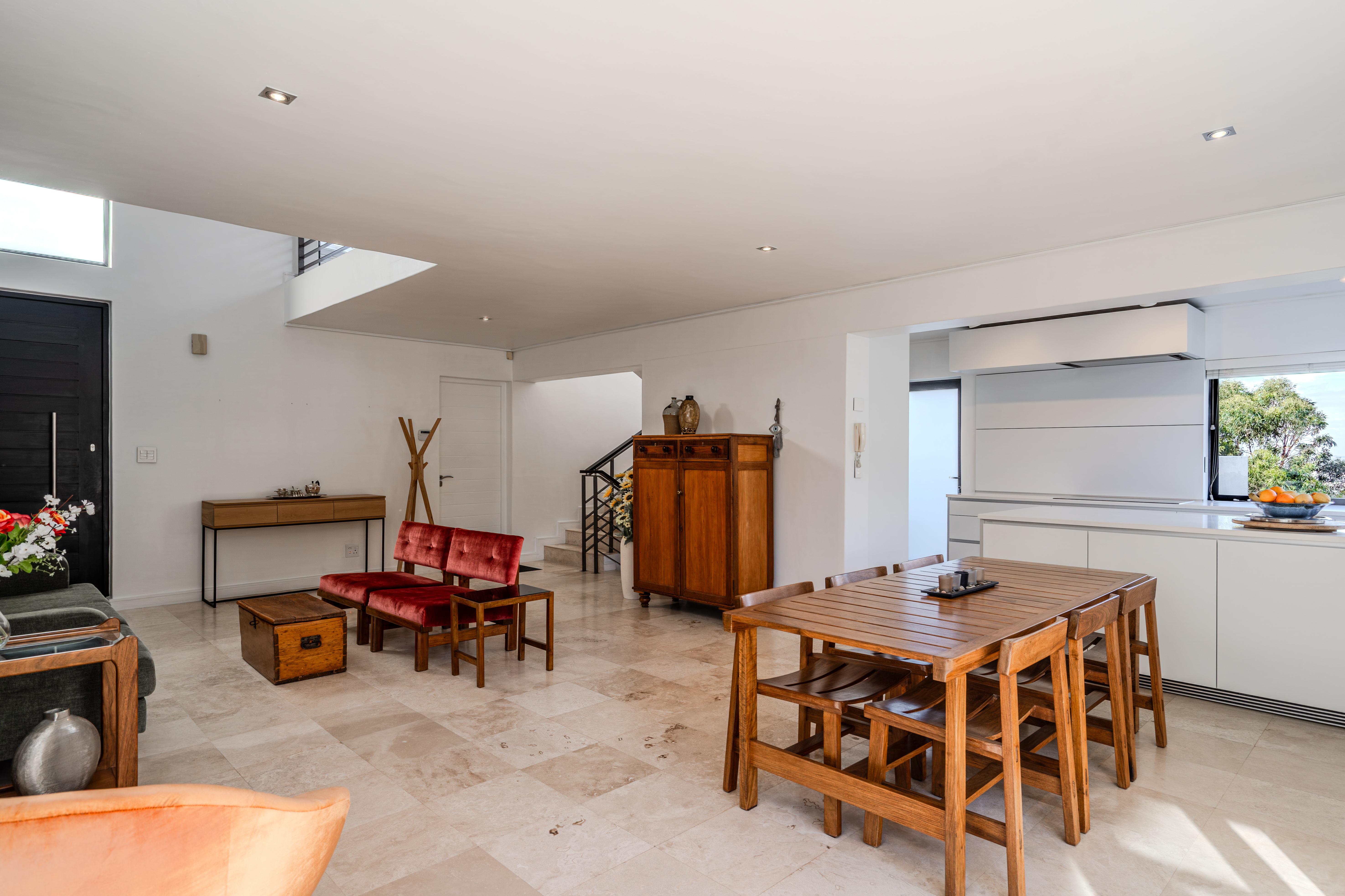Tucked away in a secure complex just off Kloof Nek Road, this immaculate three-story home combines luxury with low-maintenance living. Bright and airy, the open-plan living area is bathed in natural light, with stacking doors that open onto a deck overlooking the pool and showcasing panoramic views of Table Mountain and Devil’s Peak. The sleek, modern kitchen features integrated appliances seamlessly concealed behind elegant cabinetry, while the double garage provides convenient direct access to the home.