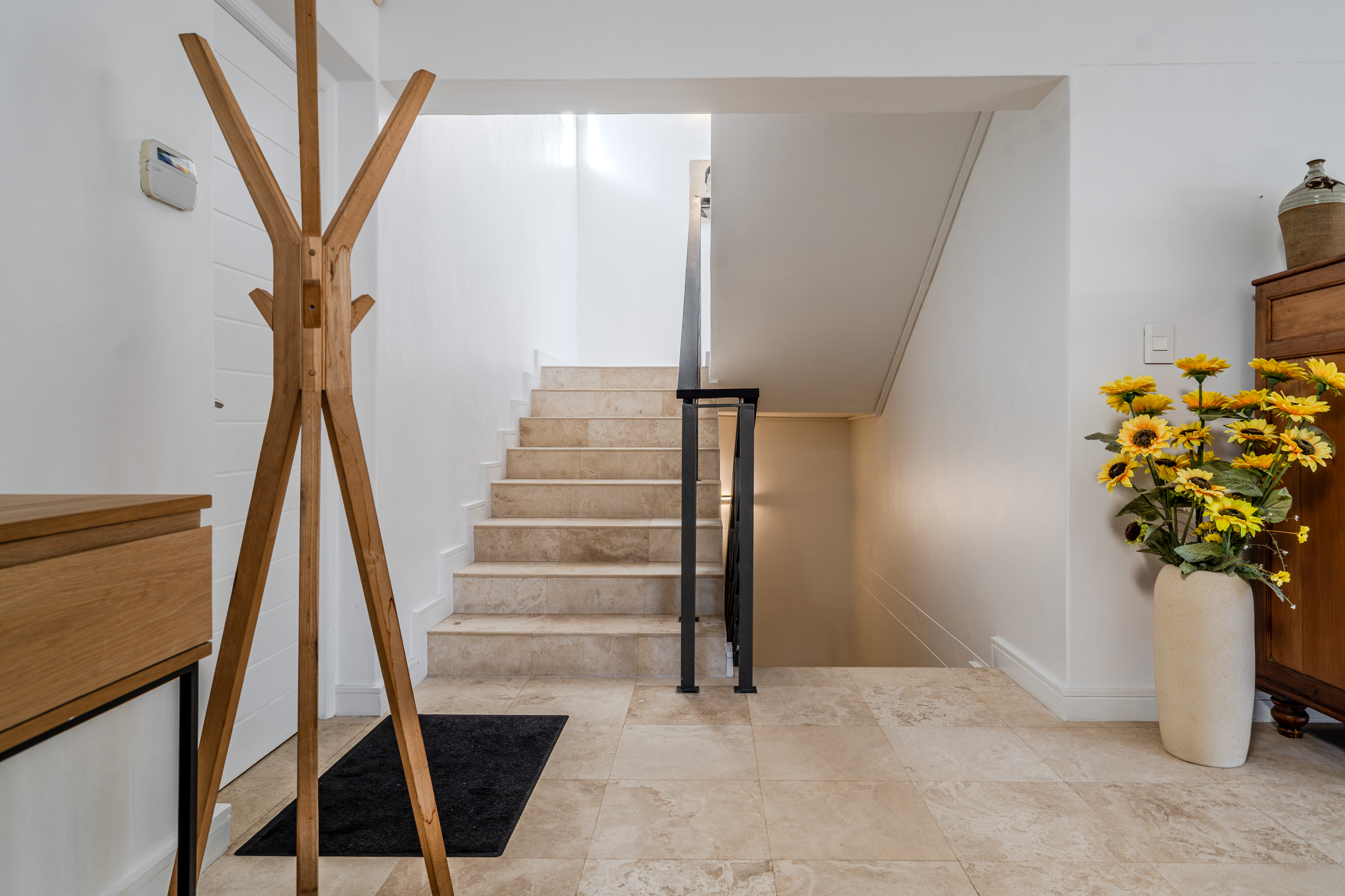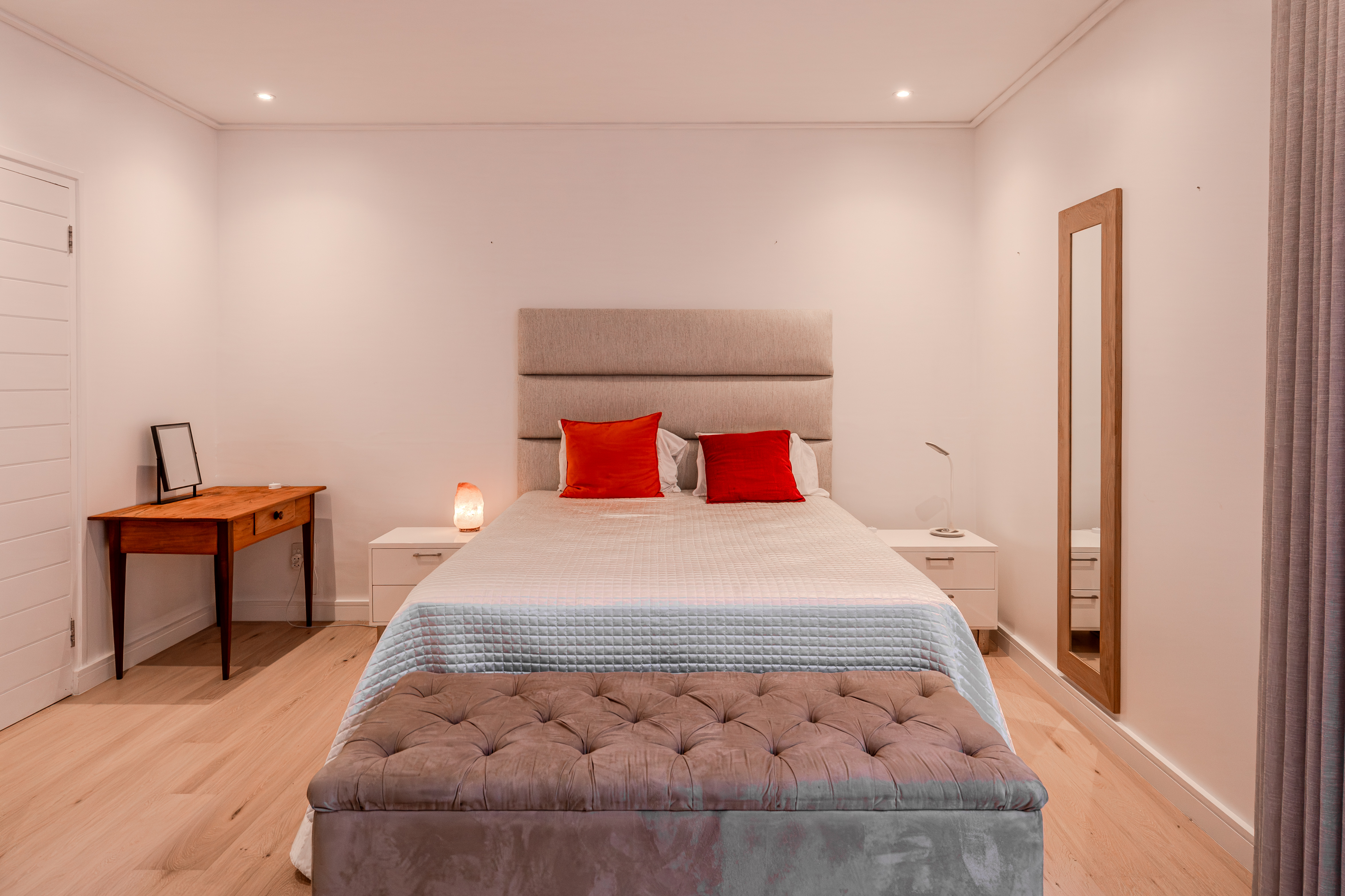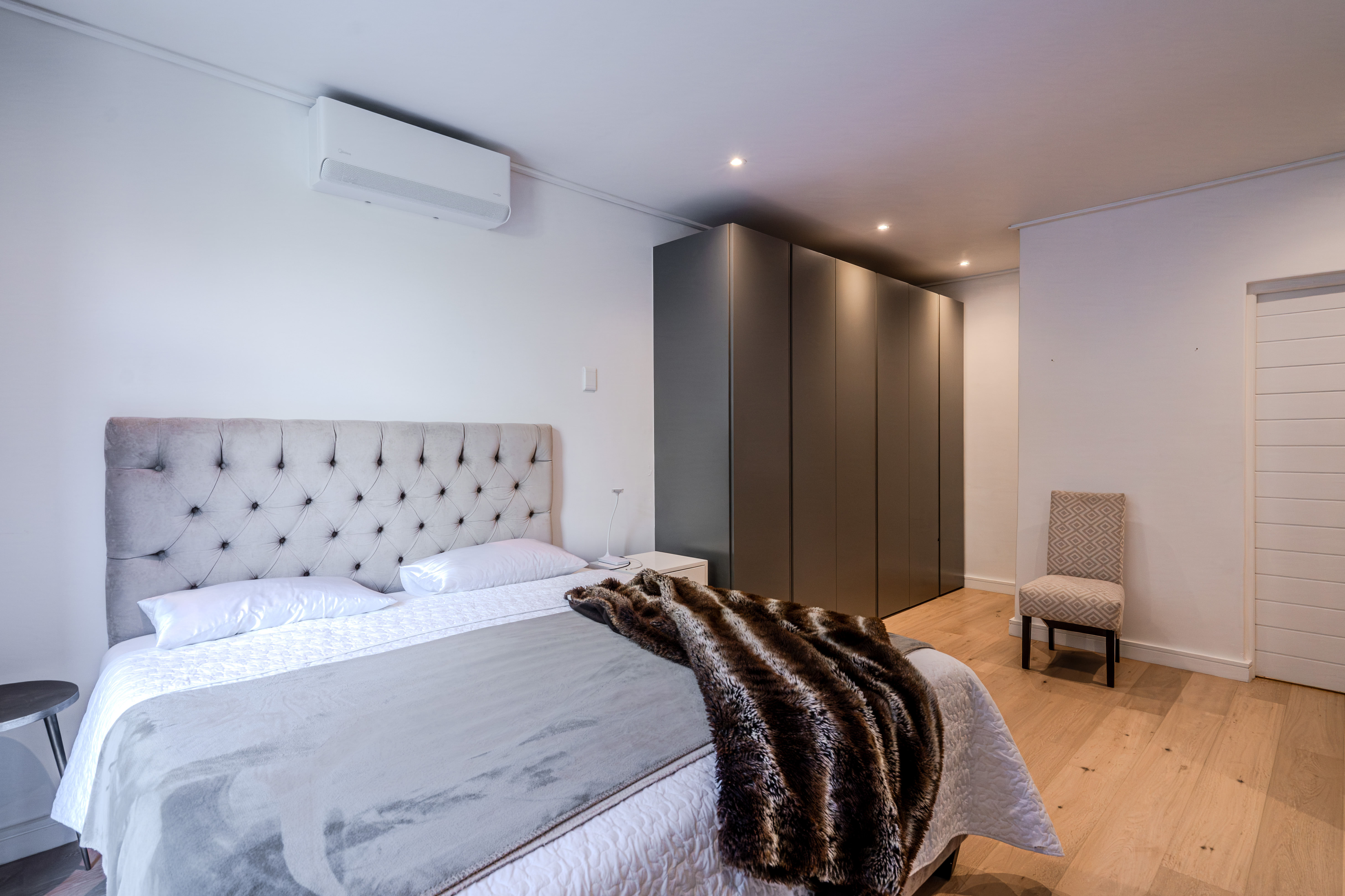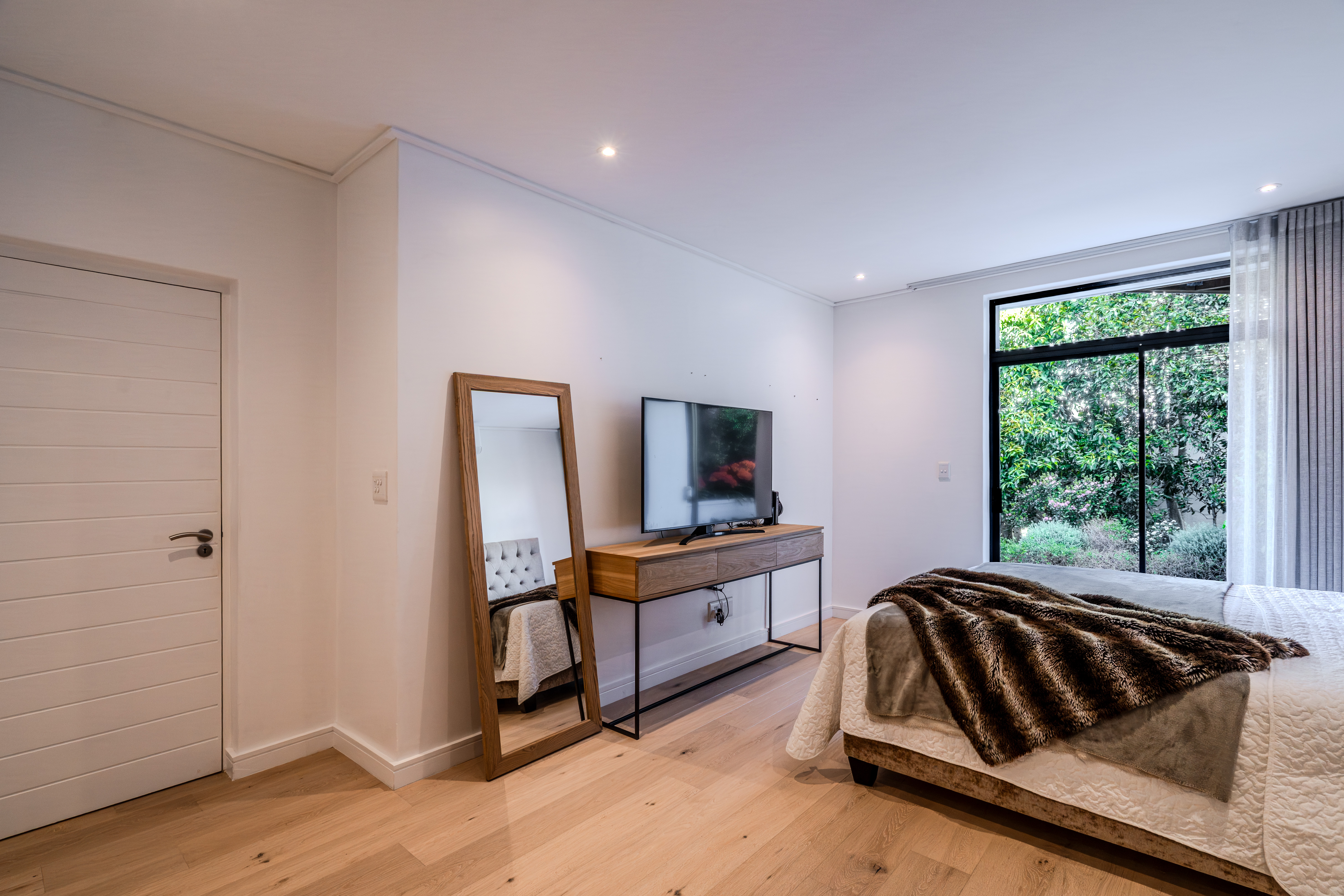 Tucked away in a secure complex just off Kloof Nek Road, this immaculate three-story home combines luxury with low-maintenance living. Bright and airy, the open-plan living area is bathed in natural light, with stacking doors that open onto a deck overlooking the pool and showcasing panoramic views of Table Mountain and Devil’s Peak. The sleek, modern kitchen features integrated appliances seamlessly concealed behind elegant cabinetry, while the double garage provides convenient direct access to the home.