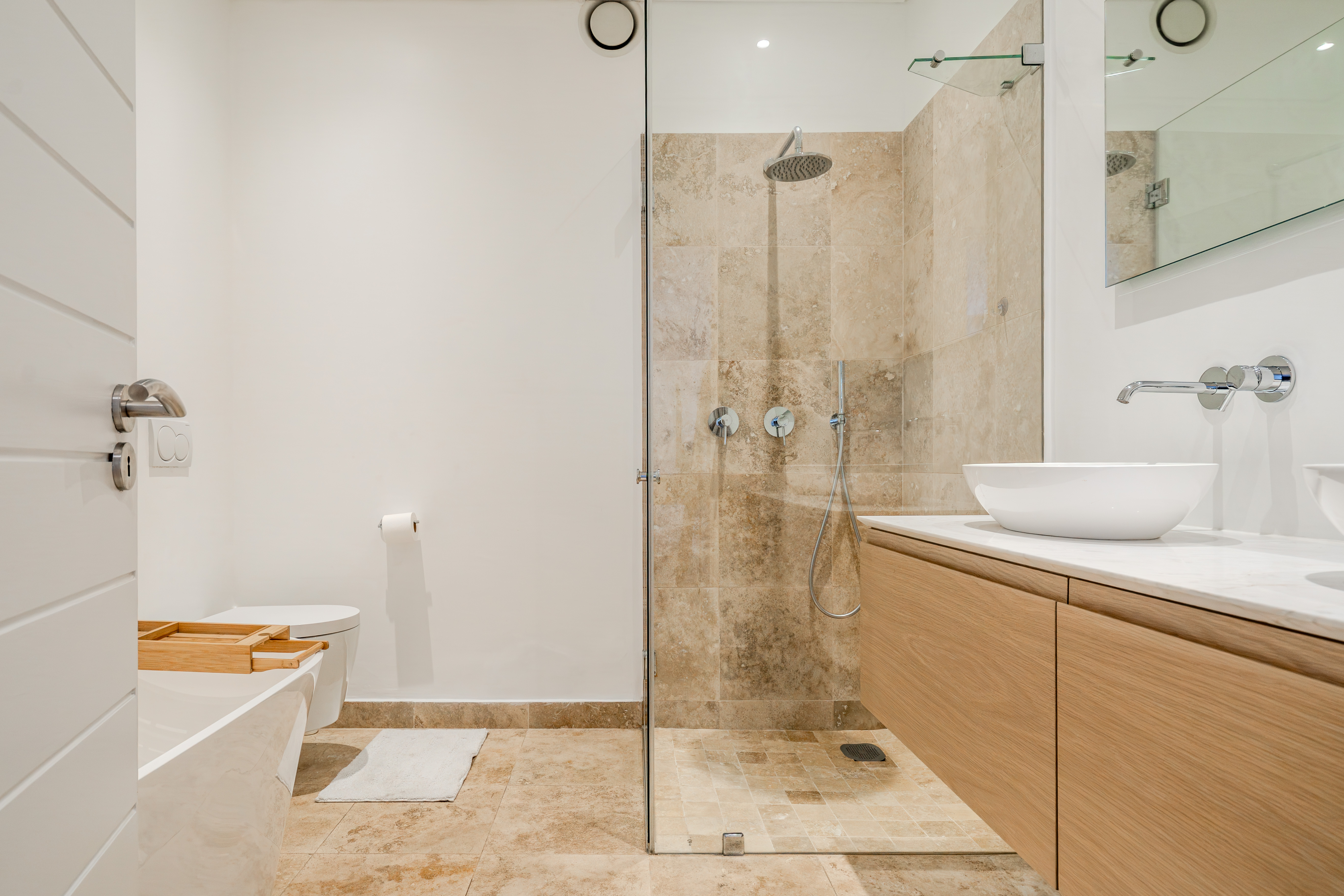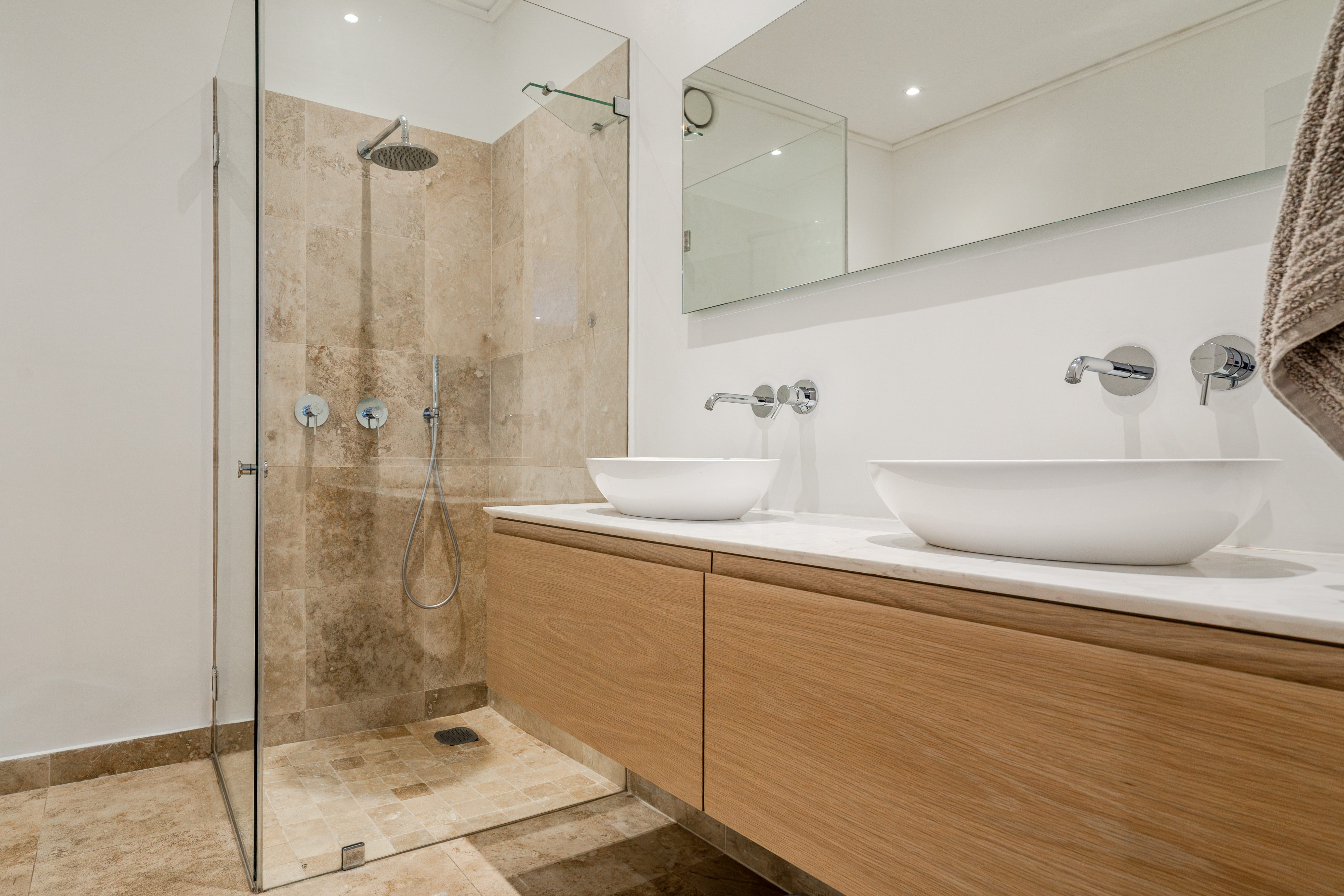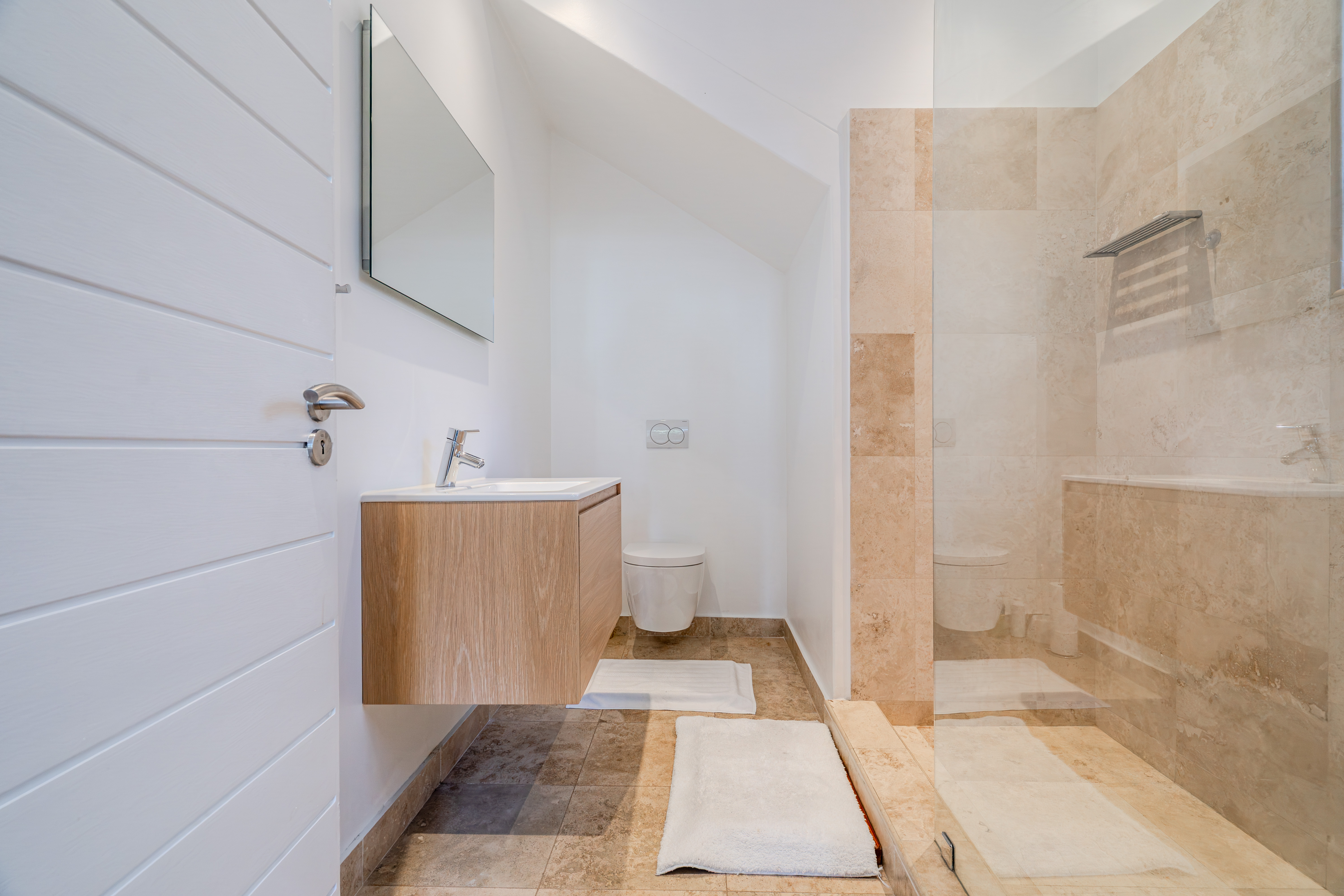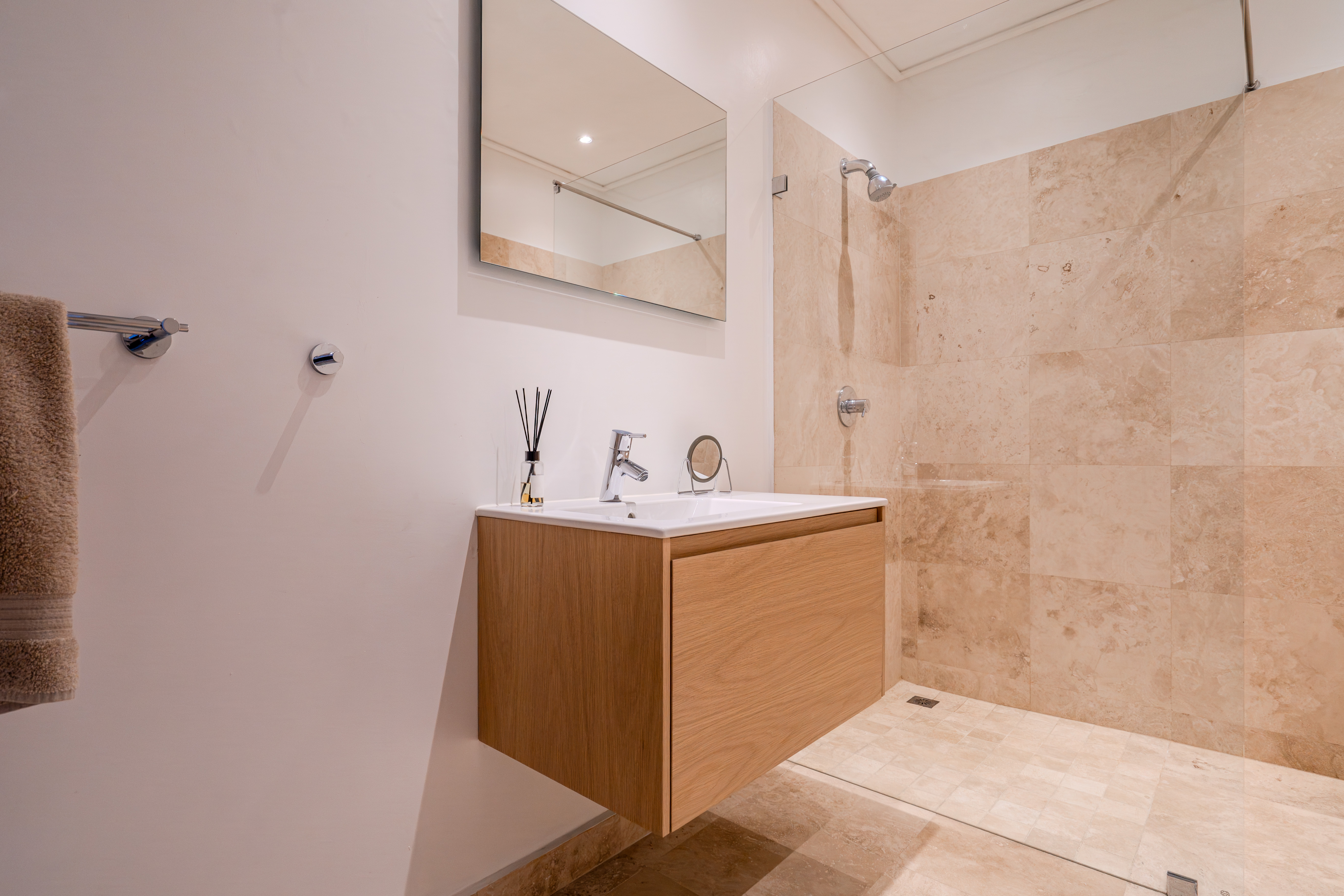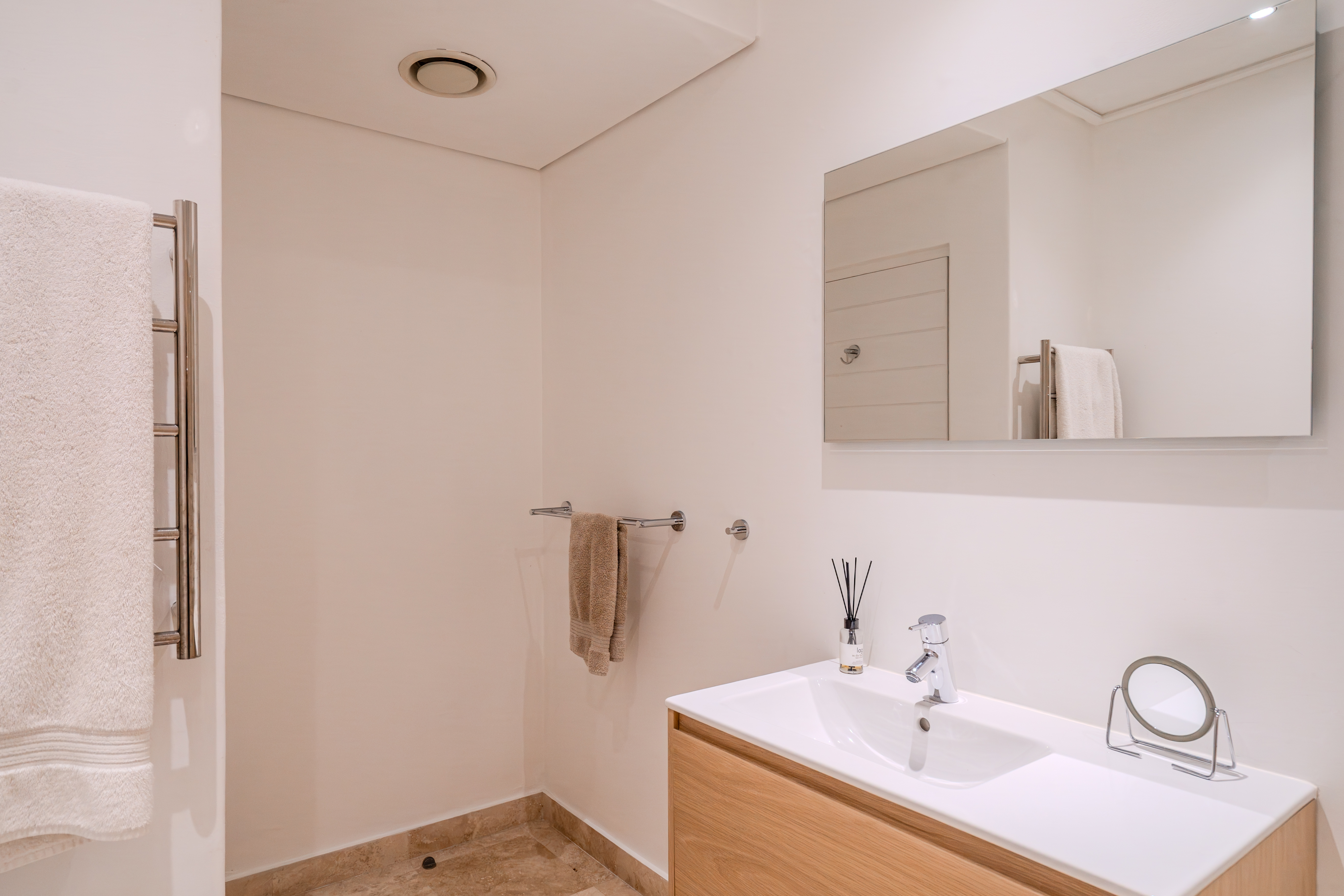 The upper level offers a versatile space. Ideal as a teen pad, private office, or second lounge, with sliding doors opening to expansive patios that make the most of the sunshine and sweeping views. On the lower level, three spacious en-suite bedrooms create a private retreat, with two of the rooms opening directly onto the pool terrace.