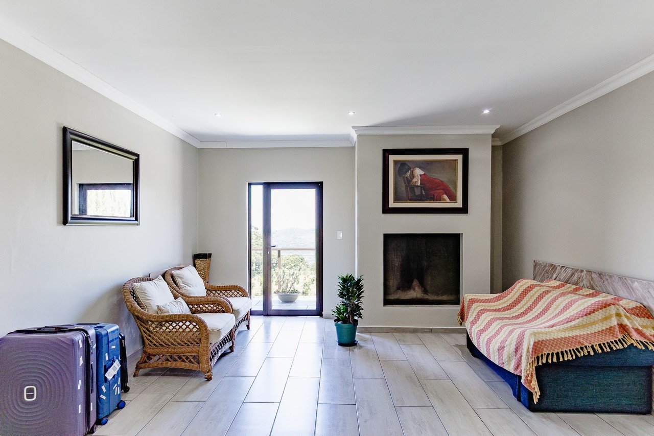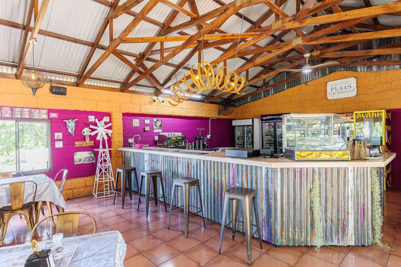 A fully operational restaurant, currently leased, offers a picturesque setting amidst manicured gardens and stunning views. The main dwelling, a farmhouse retreat, exudes comfort and luxury with its double-story layout, open-plan living areas, well-appointed kitchen with granite countertops, and a large scullery. The living area opens onto a deck with panoramic views of the Gorge, perfect for entertaining. The farmhouse also includes a built-in bar, a second lounge and office area upstairs, three spacious bedrooms with balconies, and two bathrooms. A double garage and ample parking complete the residence.