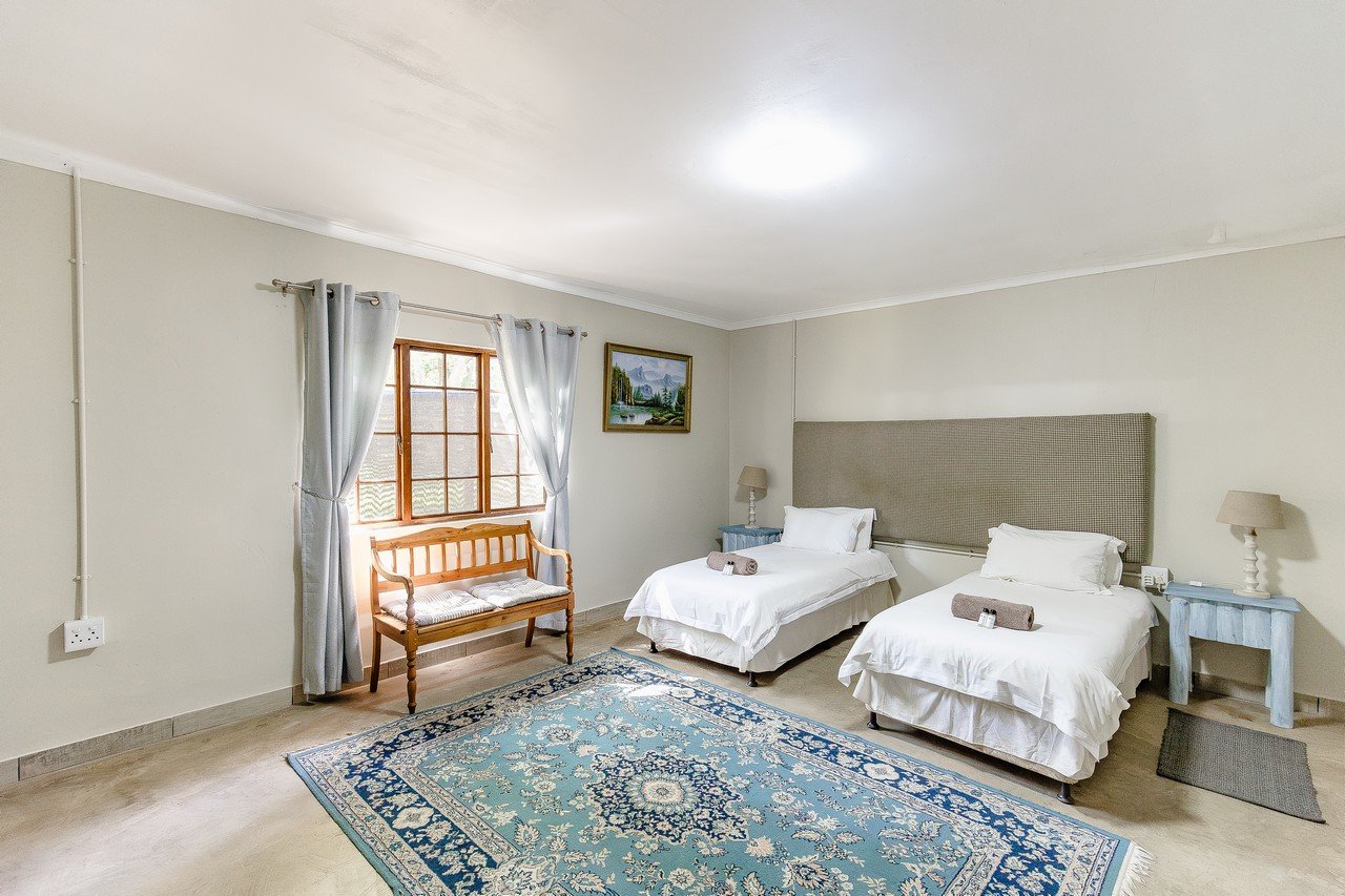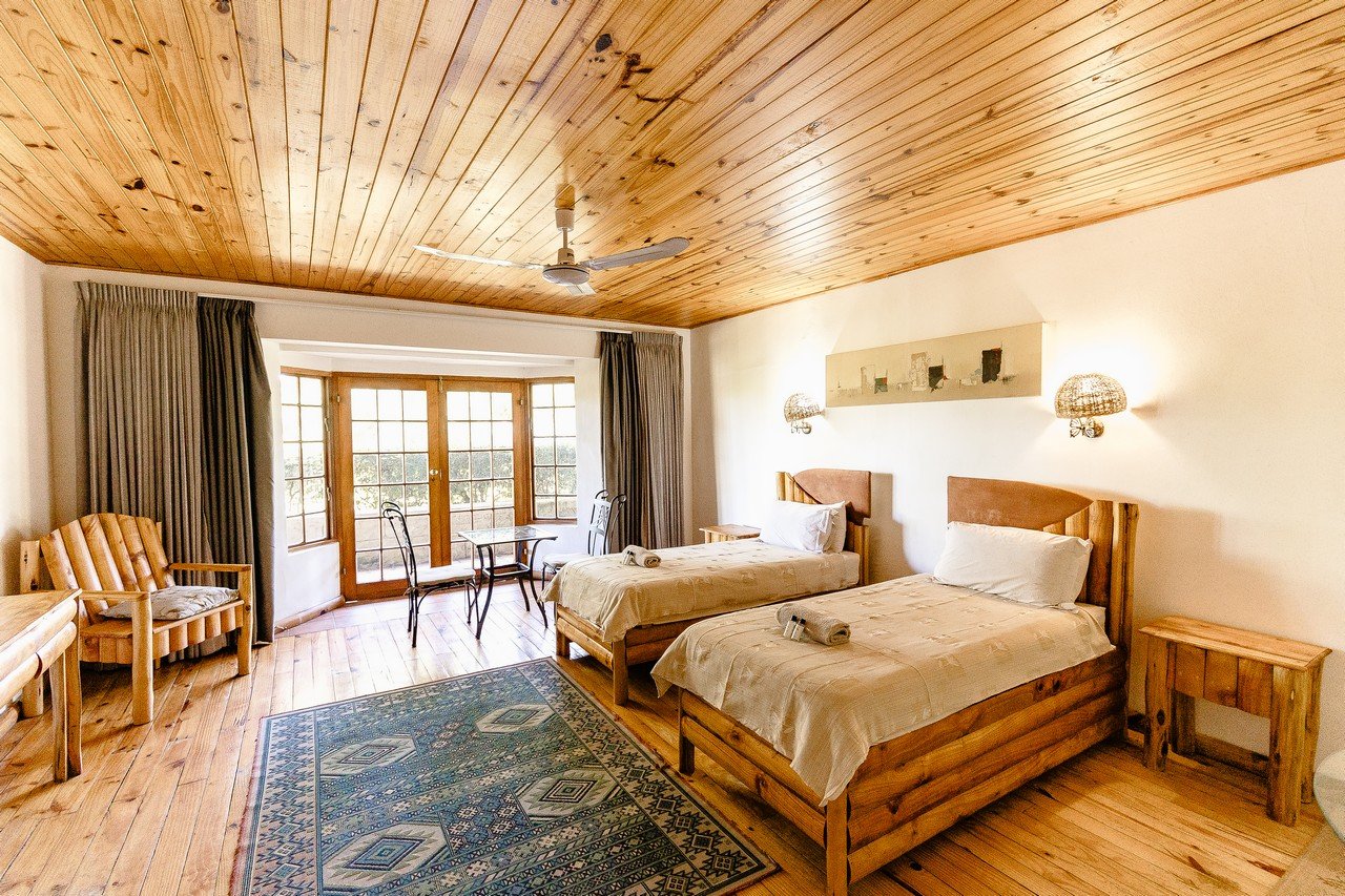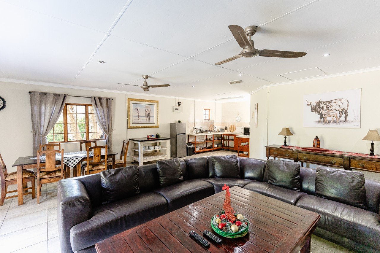 Accommodation options are diverse, catering to various guest preferences. Choose from four self-catering units, each equipped with kitchens, braai areas, and lounges, ideal for families or groups. Additionally, there are nine rooms with bathrooms for added comfort and convenience. For larger groups, a fully-contained, spacious 3-bedroom unit is available. The property also features permanent rental accommodation and ample staff quarters. Guests can unwind in designated areas such as a games room, dining area, communal swimming pool, and two luxury safari glamping tents overlooking a tranquil dam.