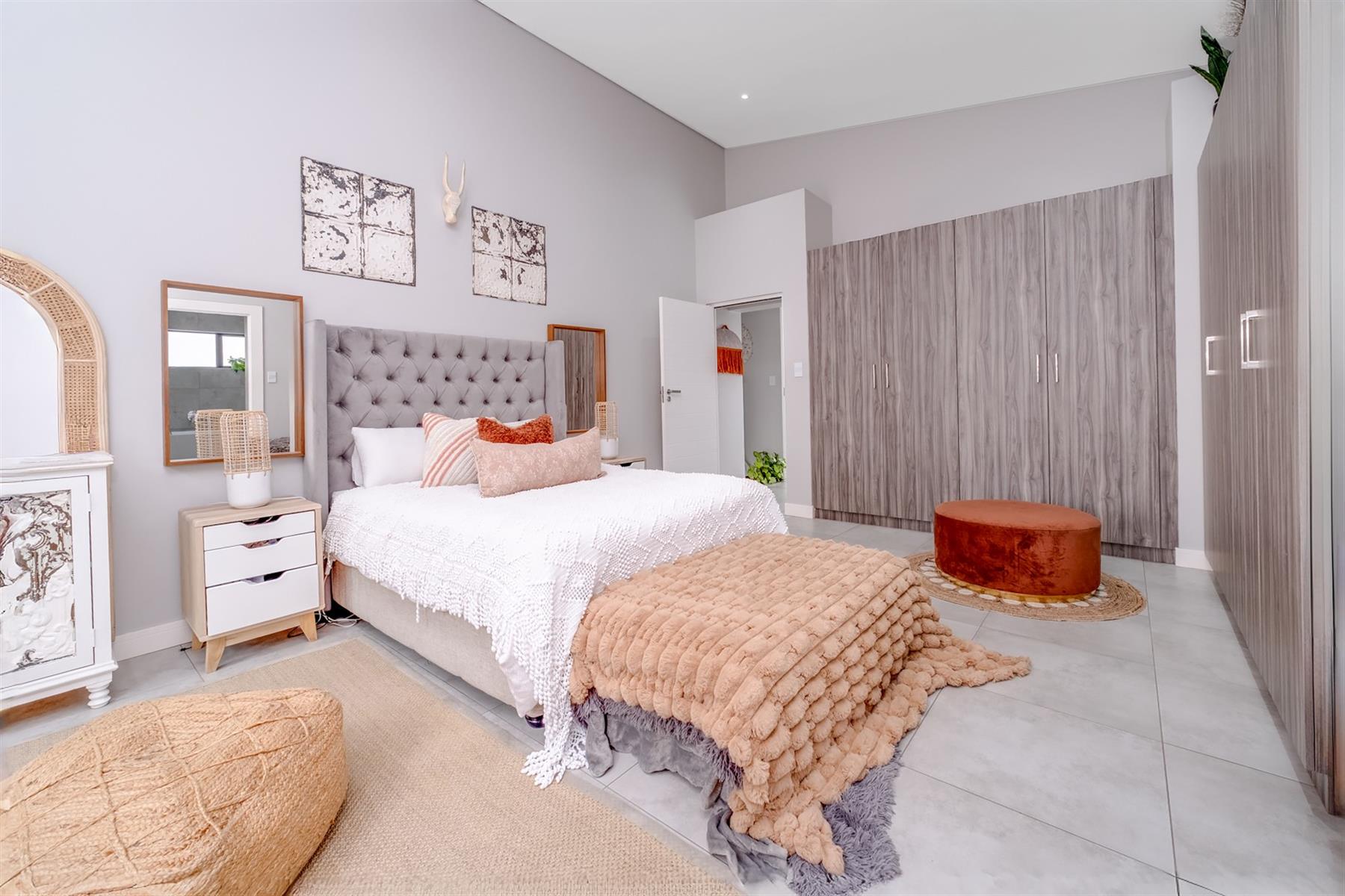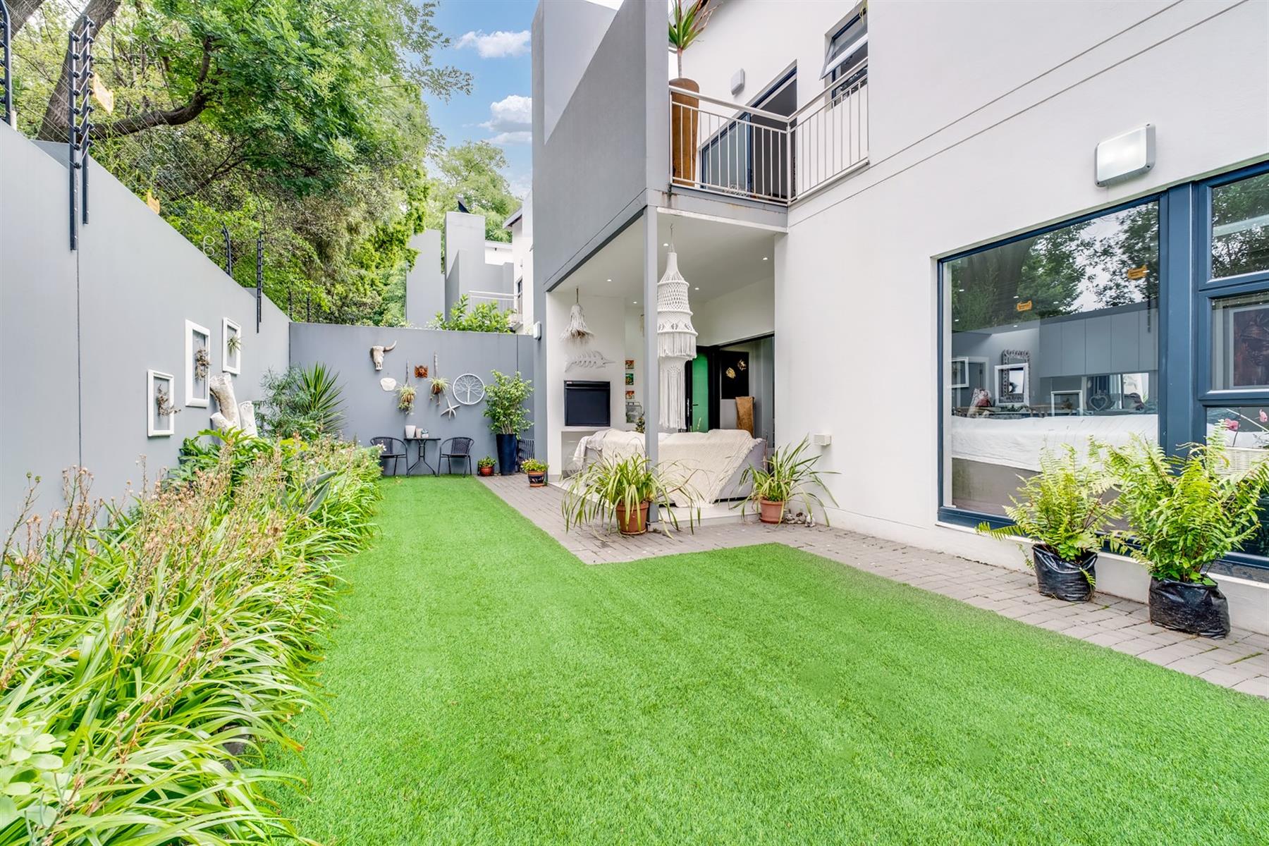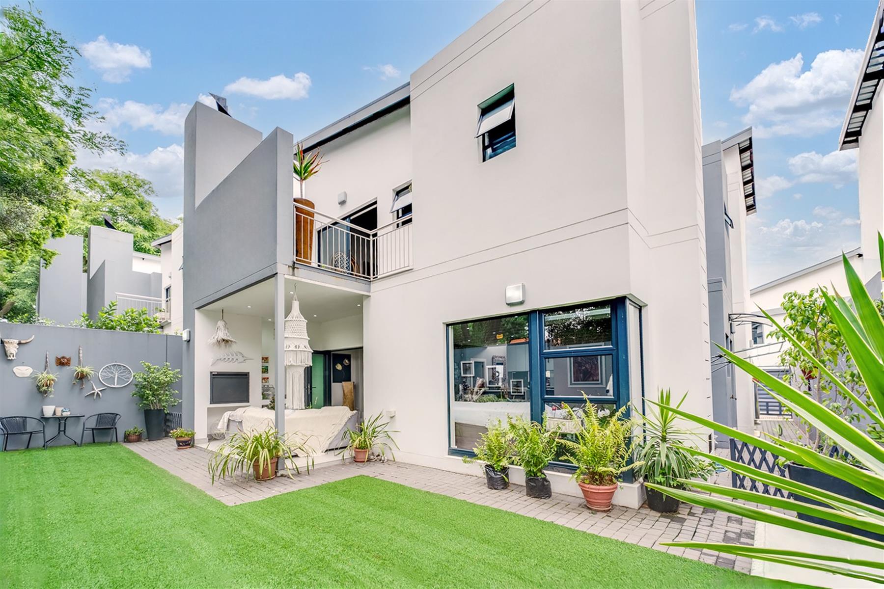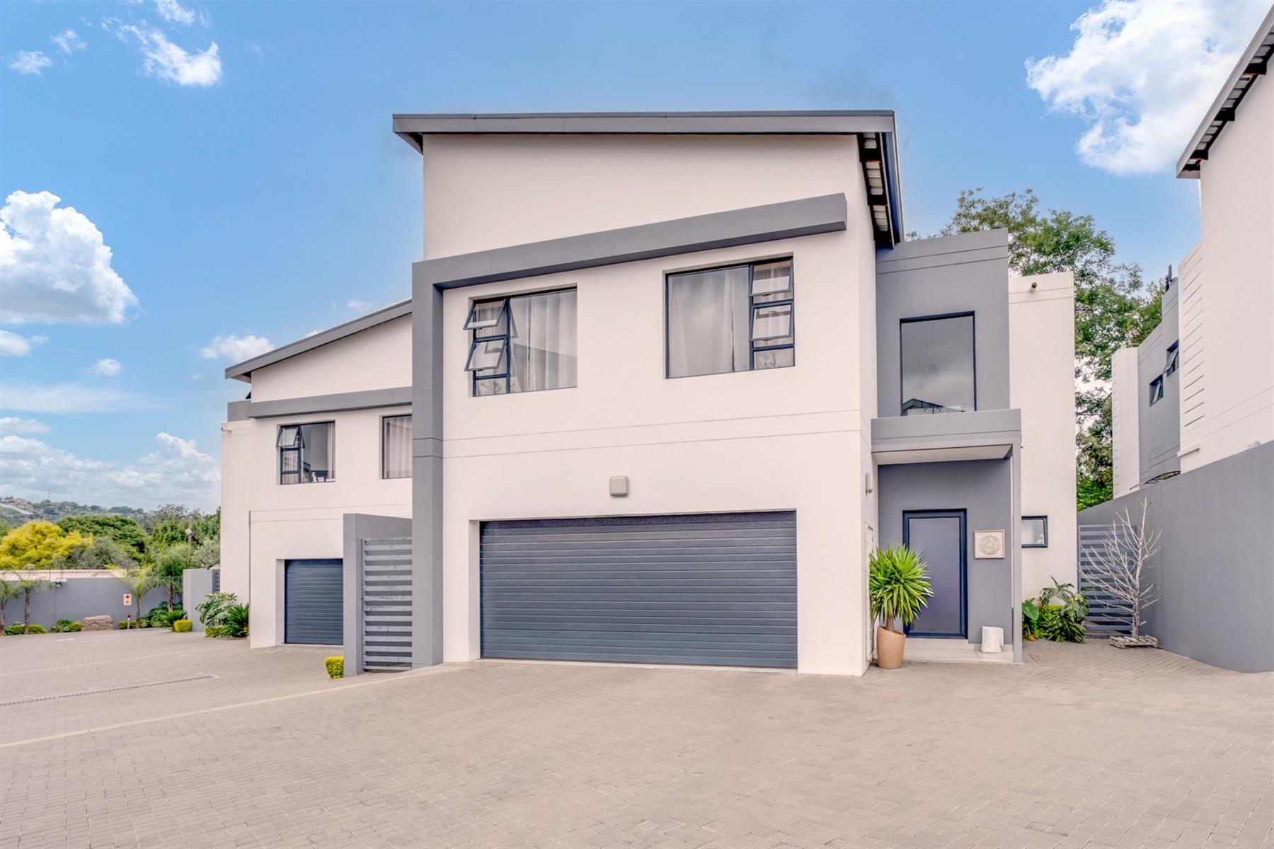 Experience contemporary convenience and modern luxury in this almost new double-storey cluster home, perfectly situated in the highly regarded Oriel suburb of Bedfordview. Part of a recent sleek and stylish development, this property features 3 spacious bedrooms with built-in cupboards and 2 generously sized bathrooms upstairs, offering ample space for families and professionals alike. The master bedroom features an en-suite bathroom and opens onto its own private balcony.