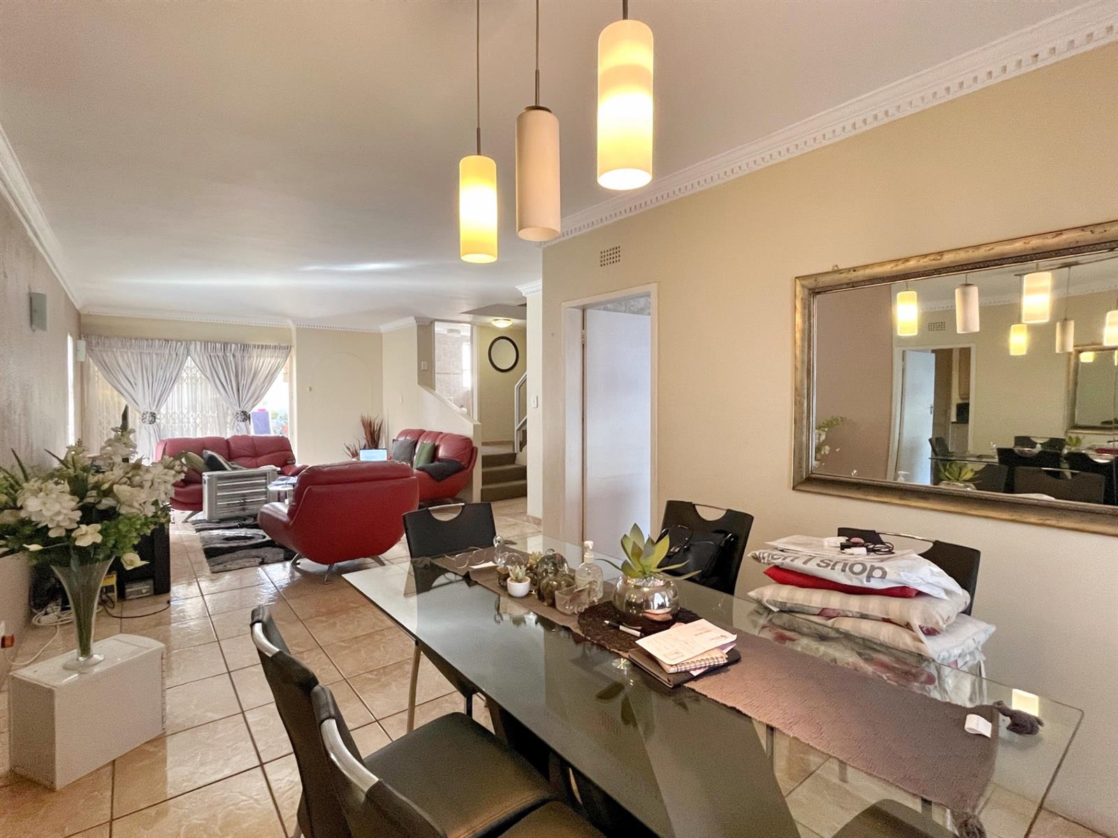Inside, the living spaces are generous and welcoming. A sun-filled lounge and dining area flow easily into the kitchen, which offers ample cupboard space, room for all your appliances, and a guest loo tucked discreetly downstairs.