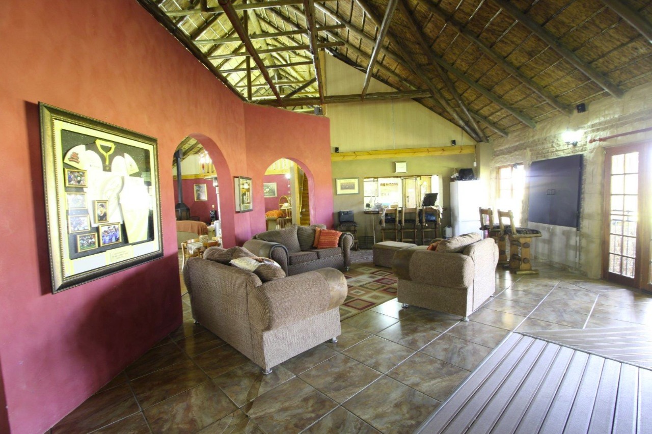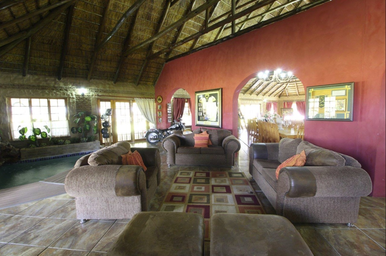 Private lounge area next to indoor swimming pool. The private lounge area has a build-in braai area. With the kitchen nearby it is convenient to have family caterings with some in the kitchen and ones braai in the lounge area.