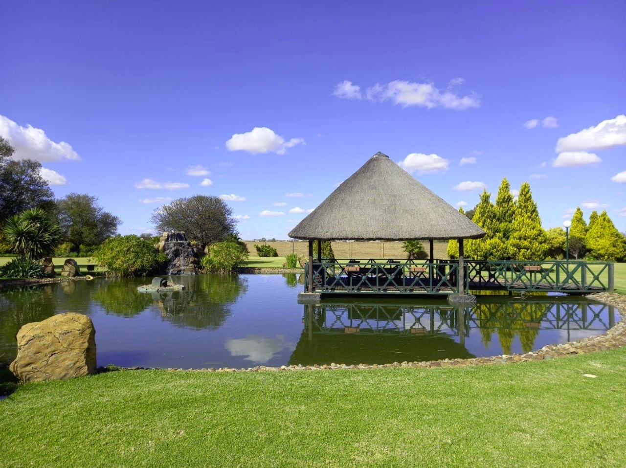 Lovely garden with water futures and a large pond and walk way on to a deck ideal for a Capel for functions and weddings. The pound has a waterfall future.