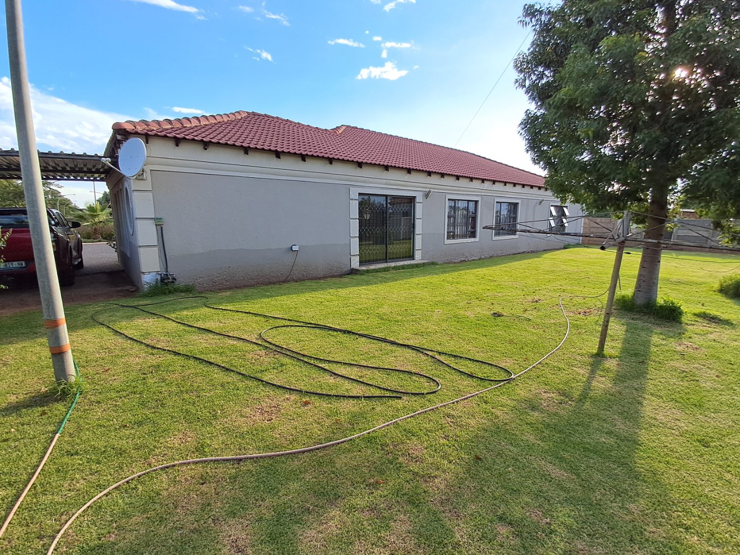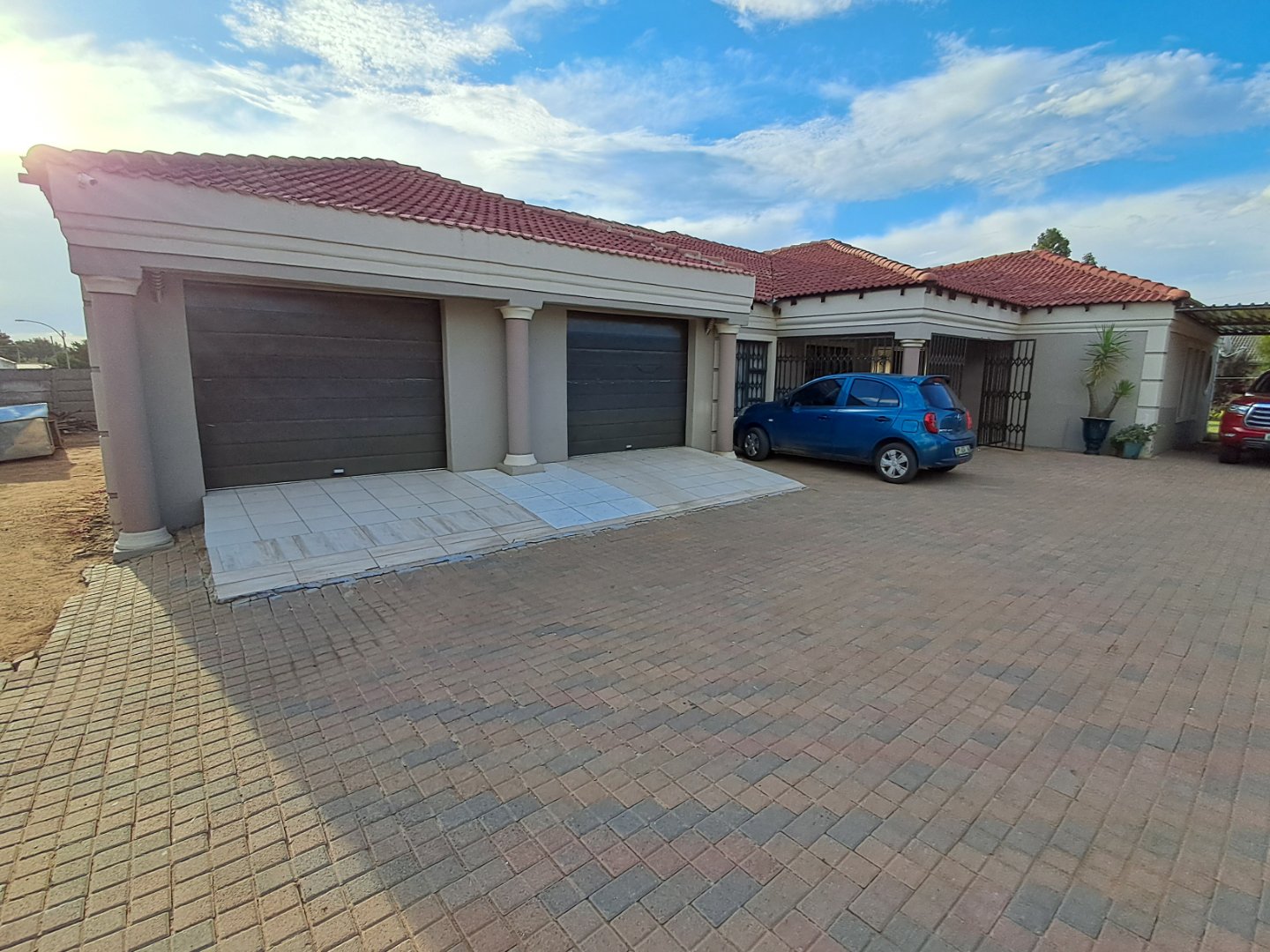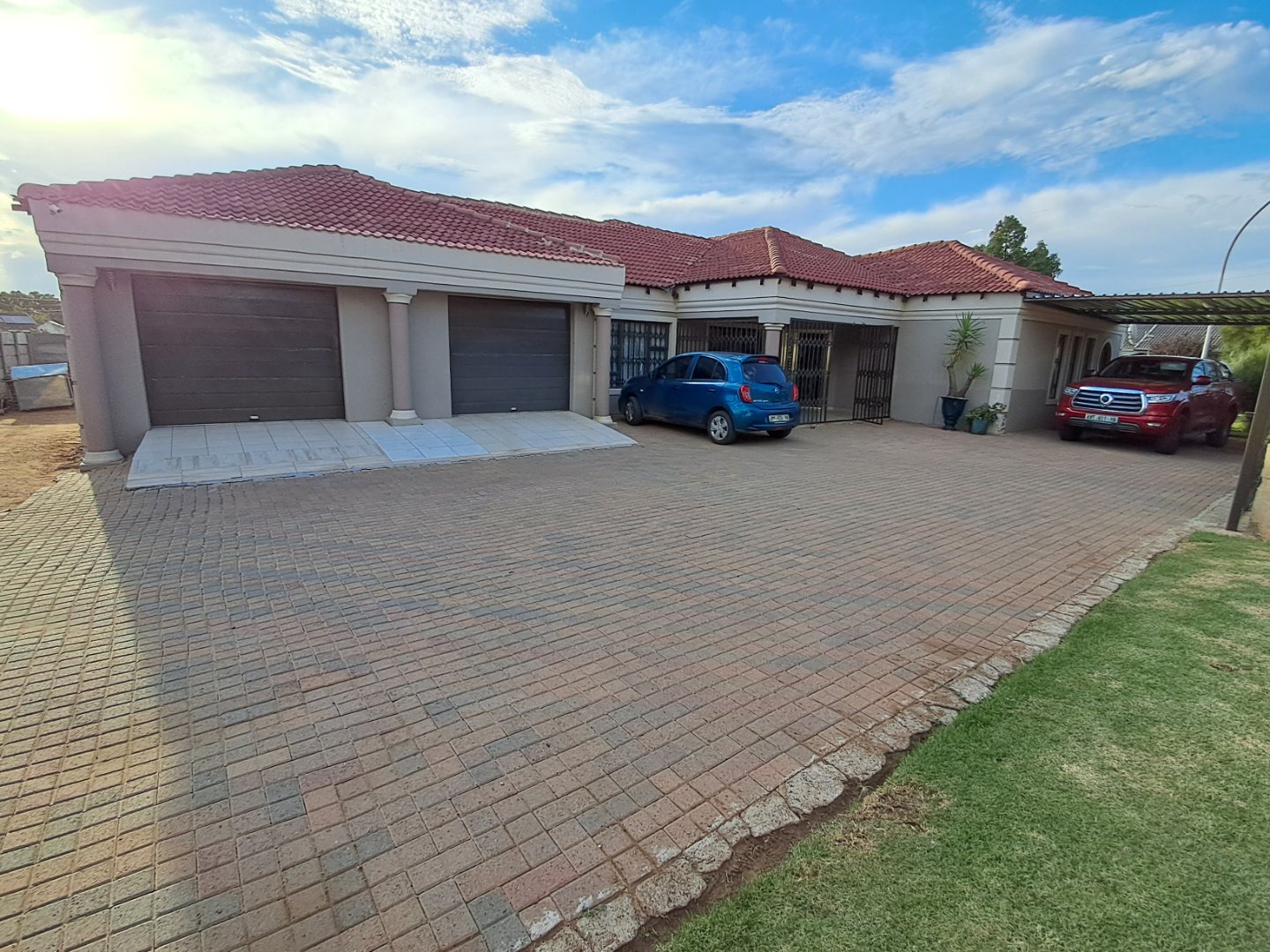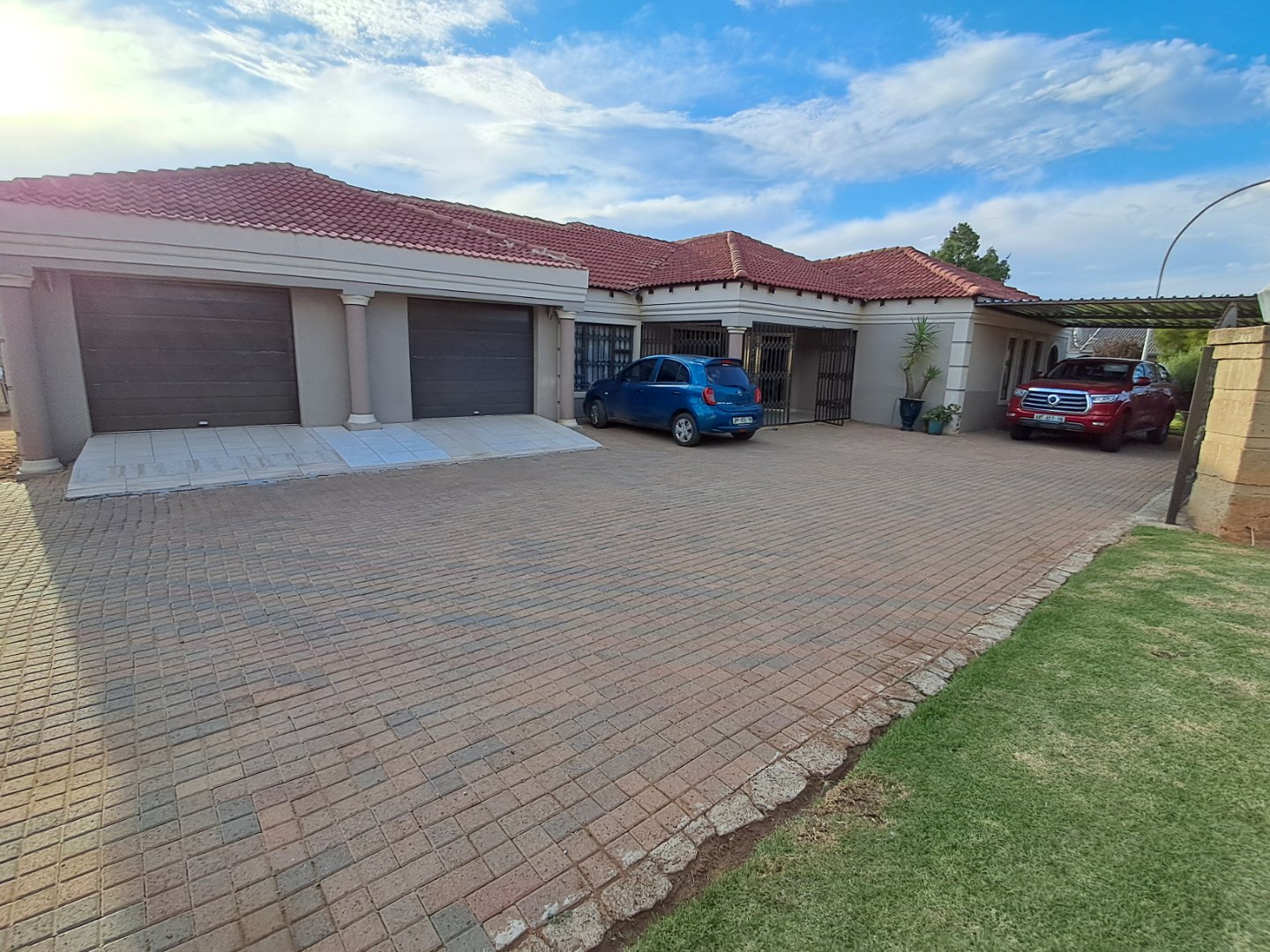 Double garage, carport, and additional parking space for visitors.