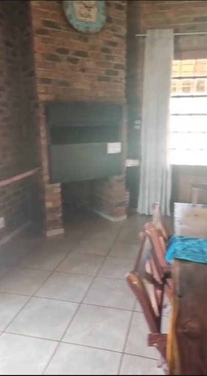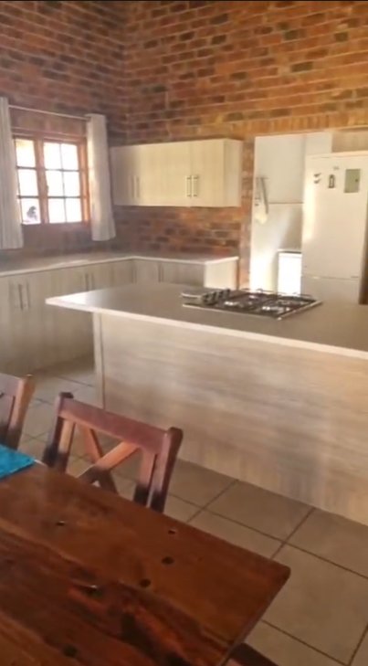 Open plan kitchen / lounge / dining room with a build-in braai