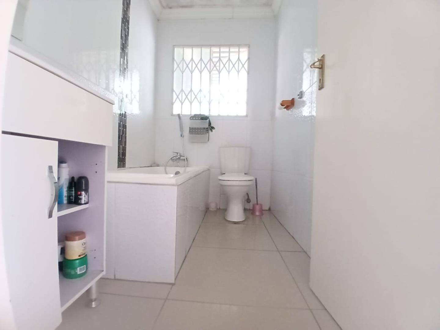 Inside, you’ll find three spacious bedrooms with warm wooden flooring and built-in cupboards. The main bedroom offers the added convenience of an en-suite bathroom, featuring a bathtub, basin, and toilet.
