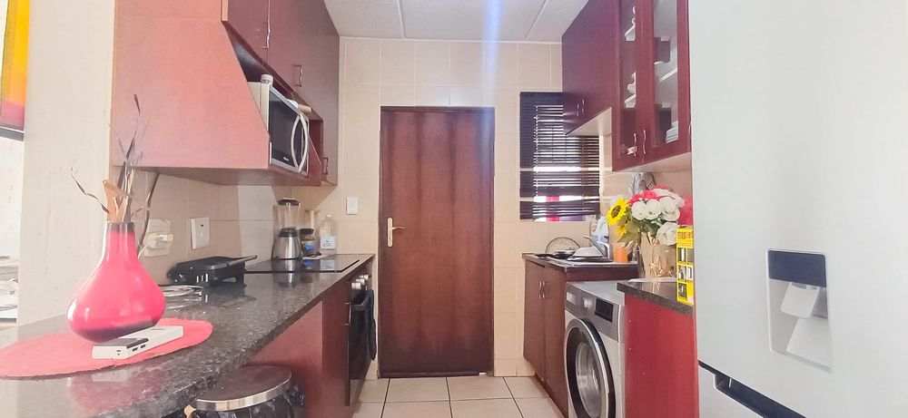 If security , privacy and convenience is something you looking for in a home, than look no further. Welcome to this 2 bedroom apartment in a well sought after complex in Ormonde. The property has the following features to offer: -Kitchen : granite counter tops, electric stove and oven, wooden cupboards with sufficient cupboard space, kitchen sink and space for fridge and washing machine. -Lounge: spacious lounge for your "L" shaped couch , coffee table and a big wall for your big screen plasma tv. -1 Bathroom: Spacious Bathroom that has a shower, bathtub, basin and toilet -2 Bedrooms: Both bedrooms are spacious with built in cupboards -Private Garden: One of the 2 units with its own private garden and small gate that's lockable. The backyard is very spacious to host friends and family for private space braai or kids to play around . -Pool: Great communal pool and well maintained -Club House: A club house that has a braai area to be used for birthdays or simple friend hosting -Play Area: A very big kids play area plus soccer pitch - Backup Water tanks This property is located in a convenient area, easy access to the N1, FNB stadium/ Soccer City, local schools and shopping complex Book Your Viewing Now!