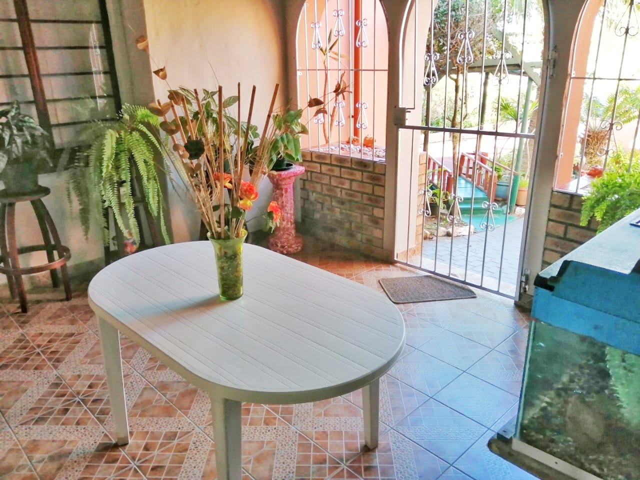 The house boasts 5 bedrooms and 3 bathrooms, two of which are en-suite, the lovely modern kitchen, lounge and dining room. There is also a single Bachelors Pad for the teenager in the family, or for extra guests. There is a very large viewing deck at the front of the house and a covered veranda at the rear of the residence for perfect privacy, as well as the lush tropical garden that has a variety of fruit trees.