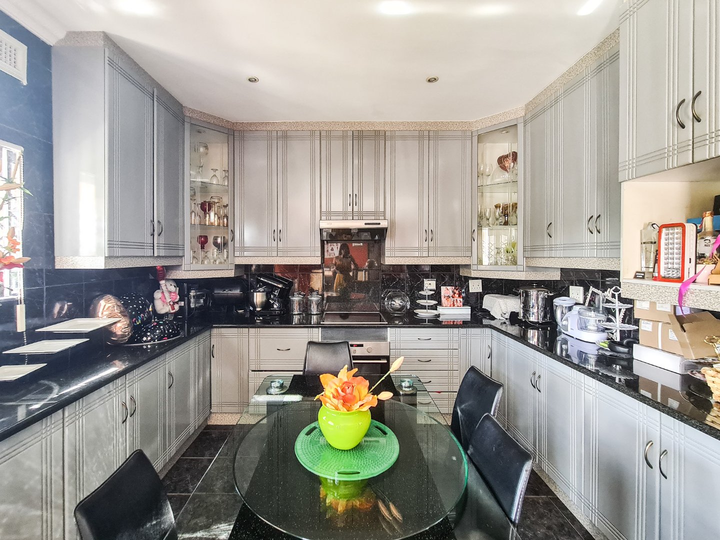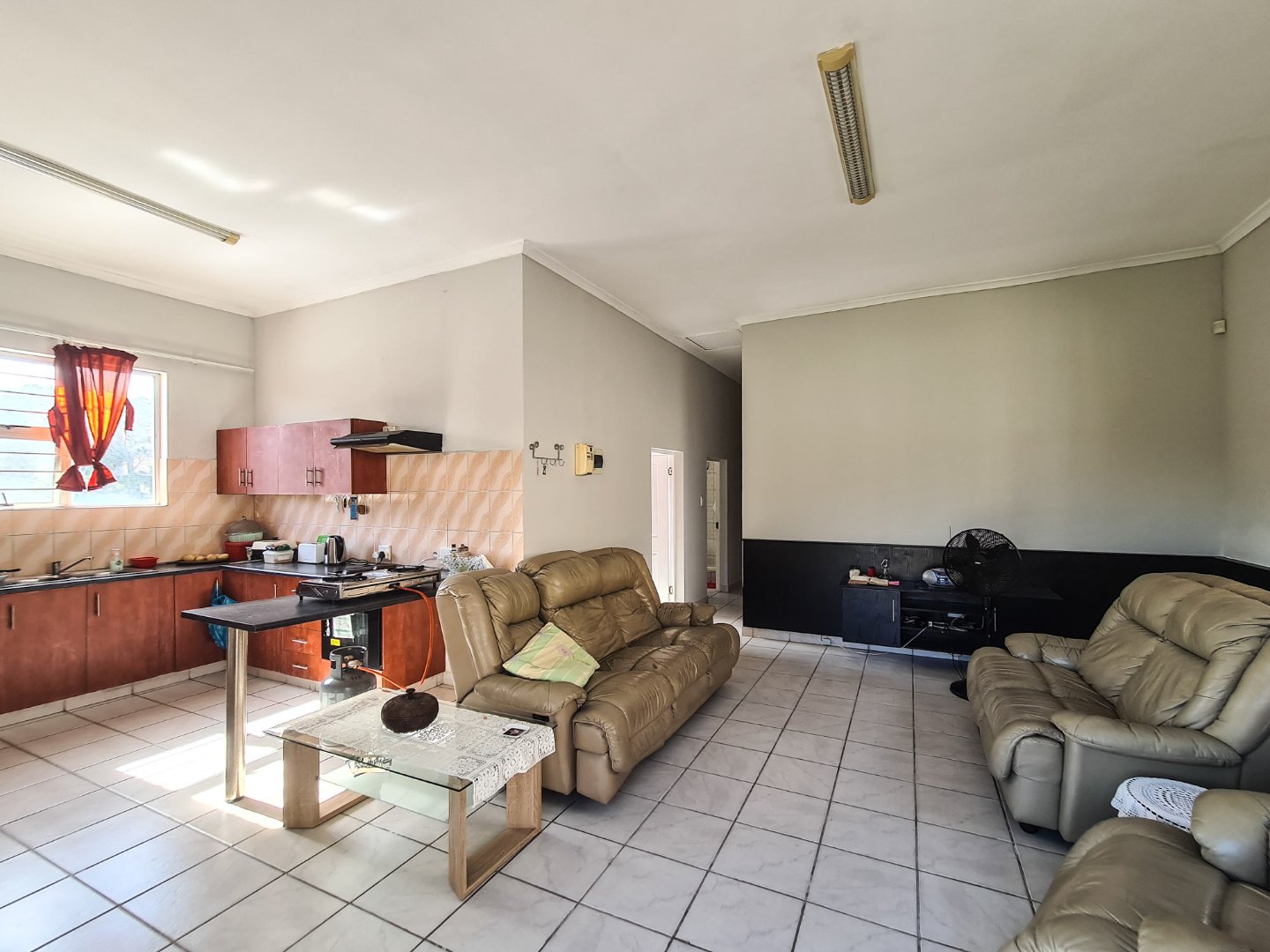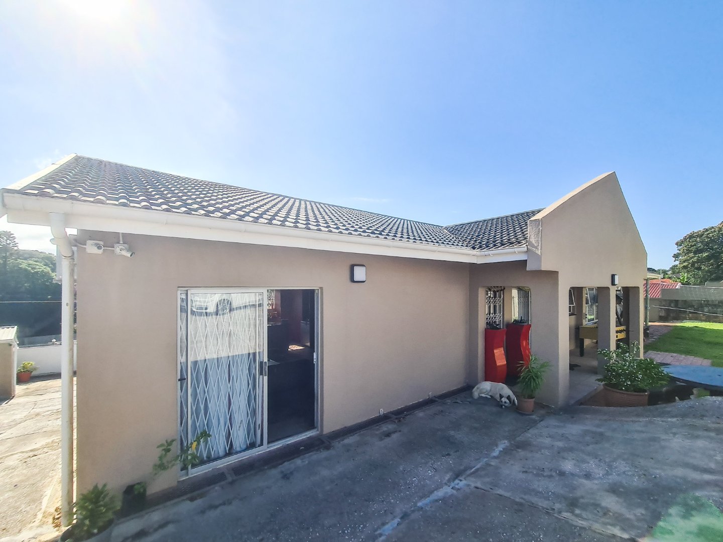 The house offers you 3 bedrooms all with build in cupboards and air-cons to keep you cool in the summer days. 3 bathrooms with one being en-suite. An open plan kitchen dining room and lounge. The plus on the main house is there is a 2nd kitchen in your entertainment room, with lots of space to make it a games room or TV room for you and friends to watch the big games on the TV.