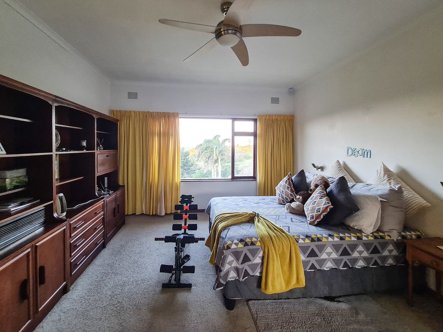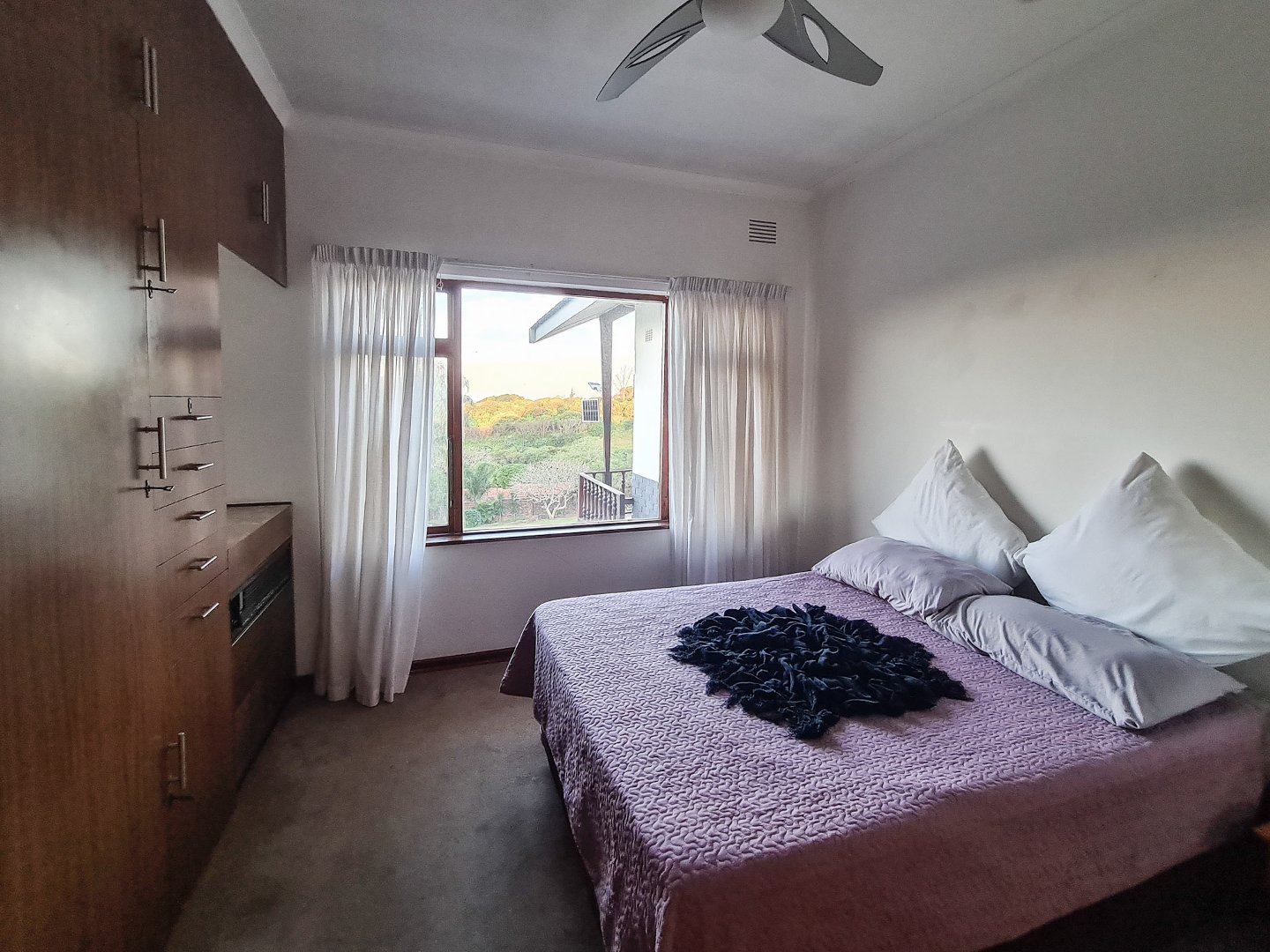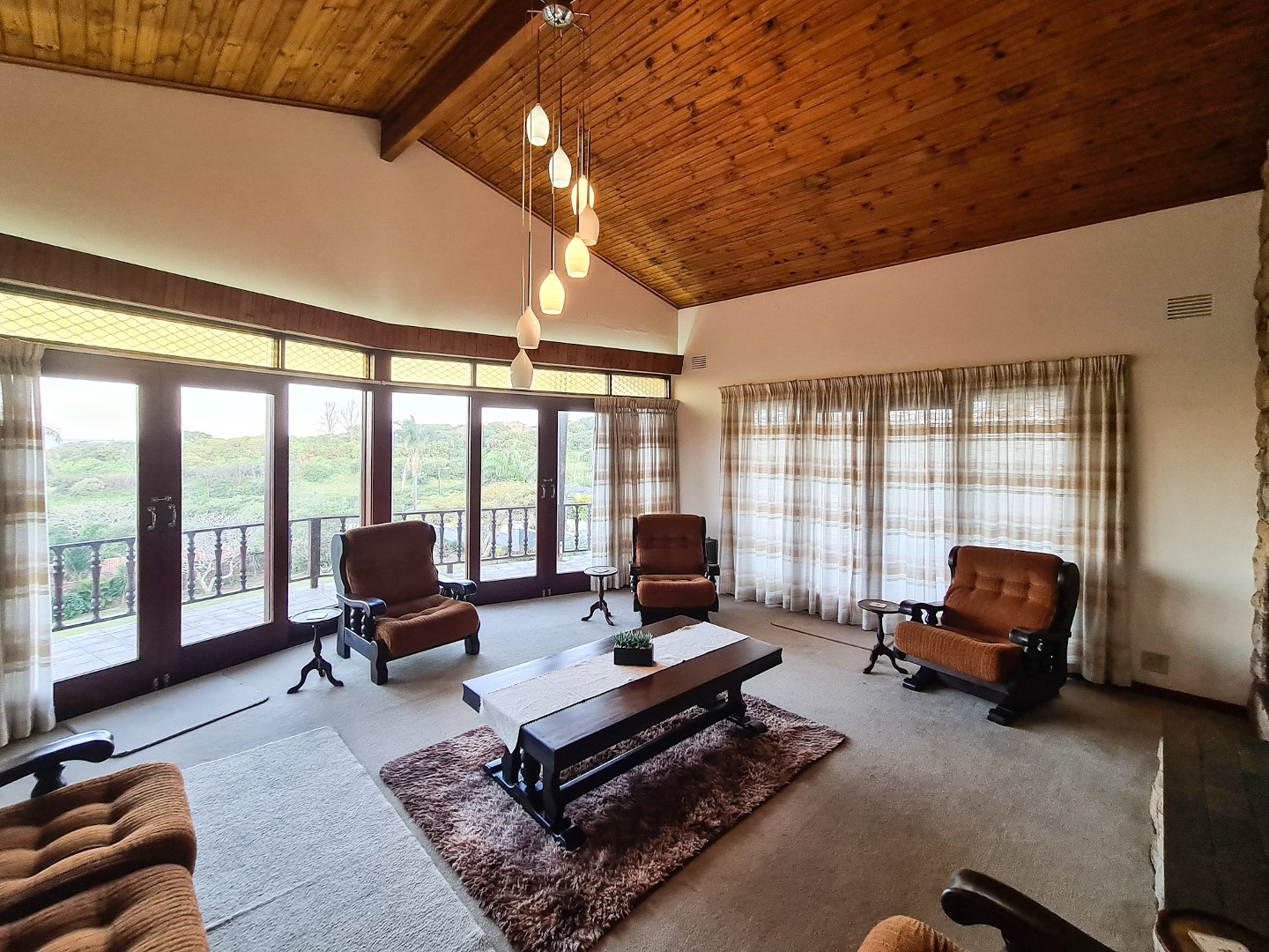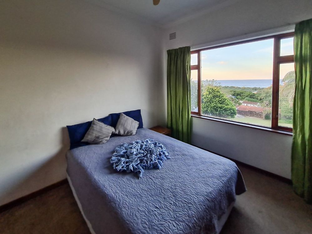 This 5-bedroom home offers breathtaking views of the ocean. The bottom level of the house showcases a spacious bedroom, perfect for accommodating guests. There is also a living area downstairs.