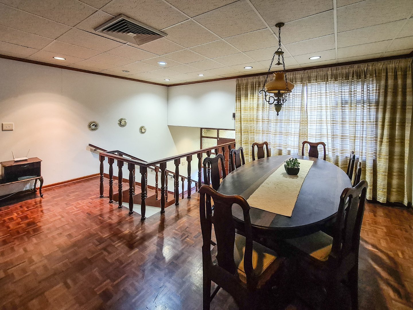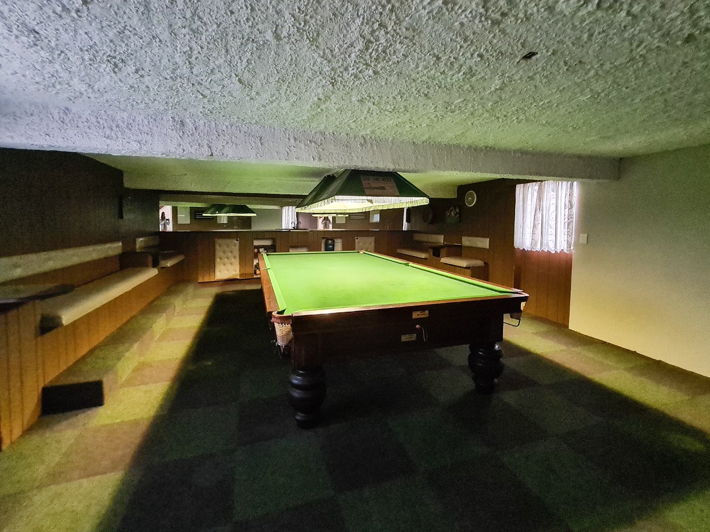As you ascend the staircase to the upper floor, you will find a large entertainment area where there is currently a large pool table.