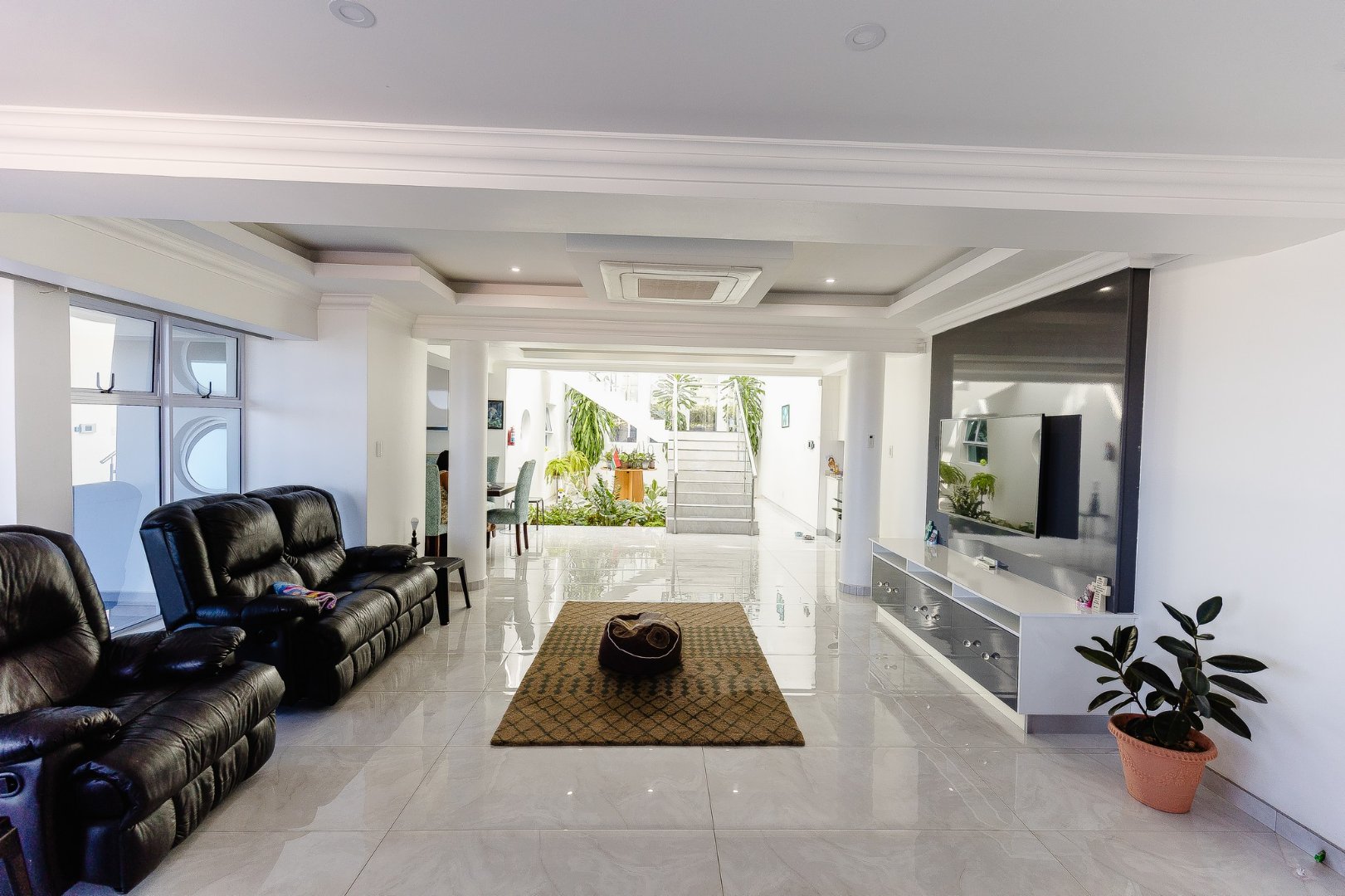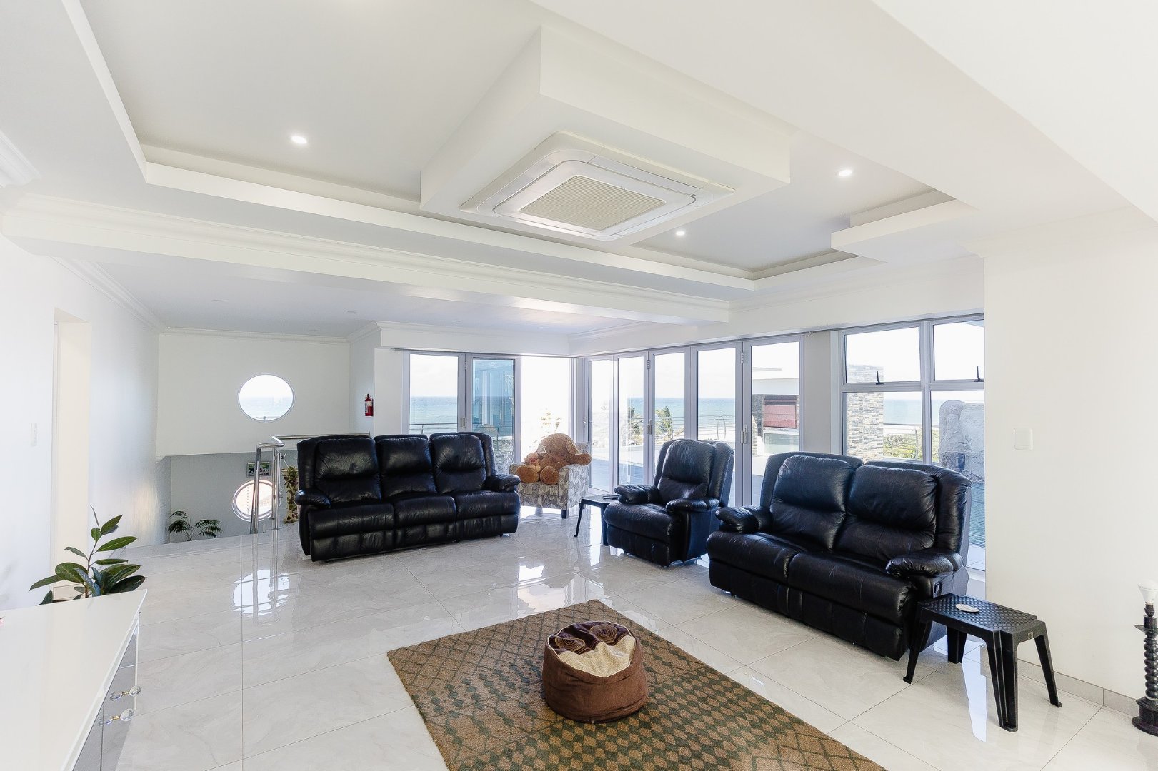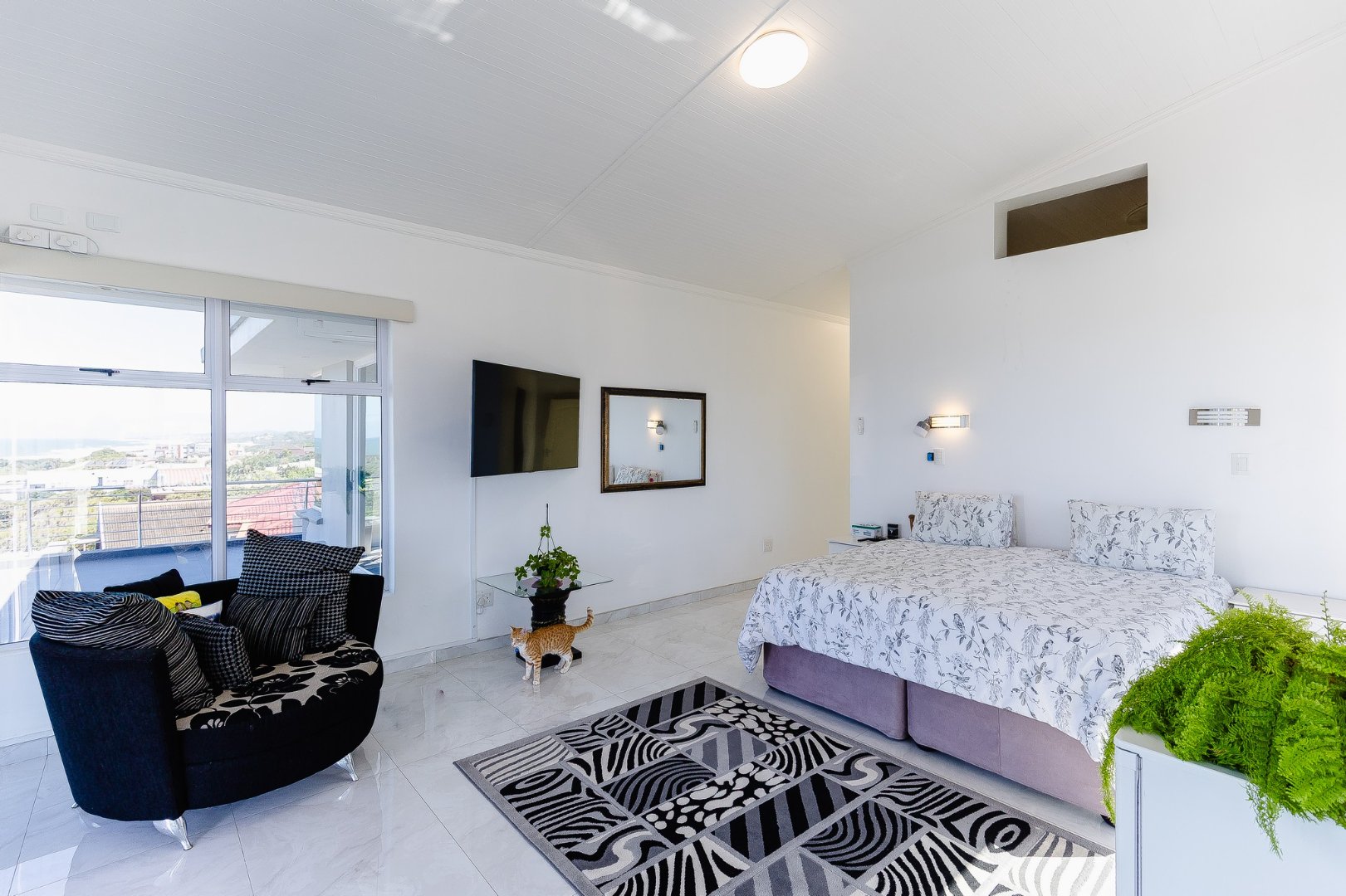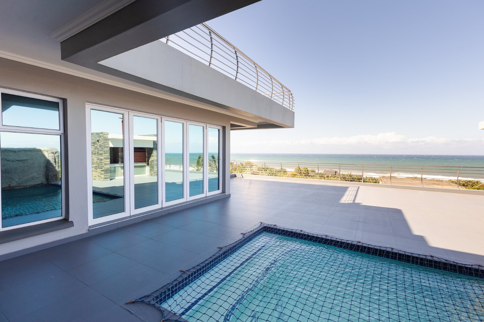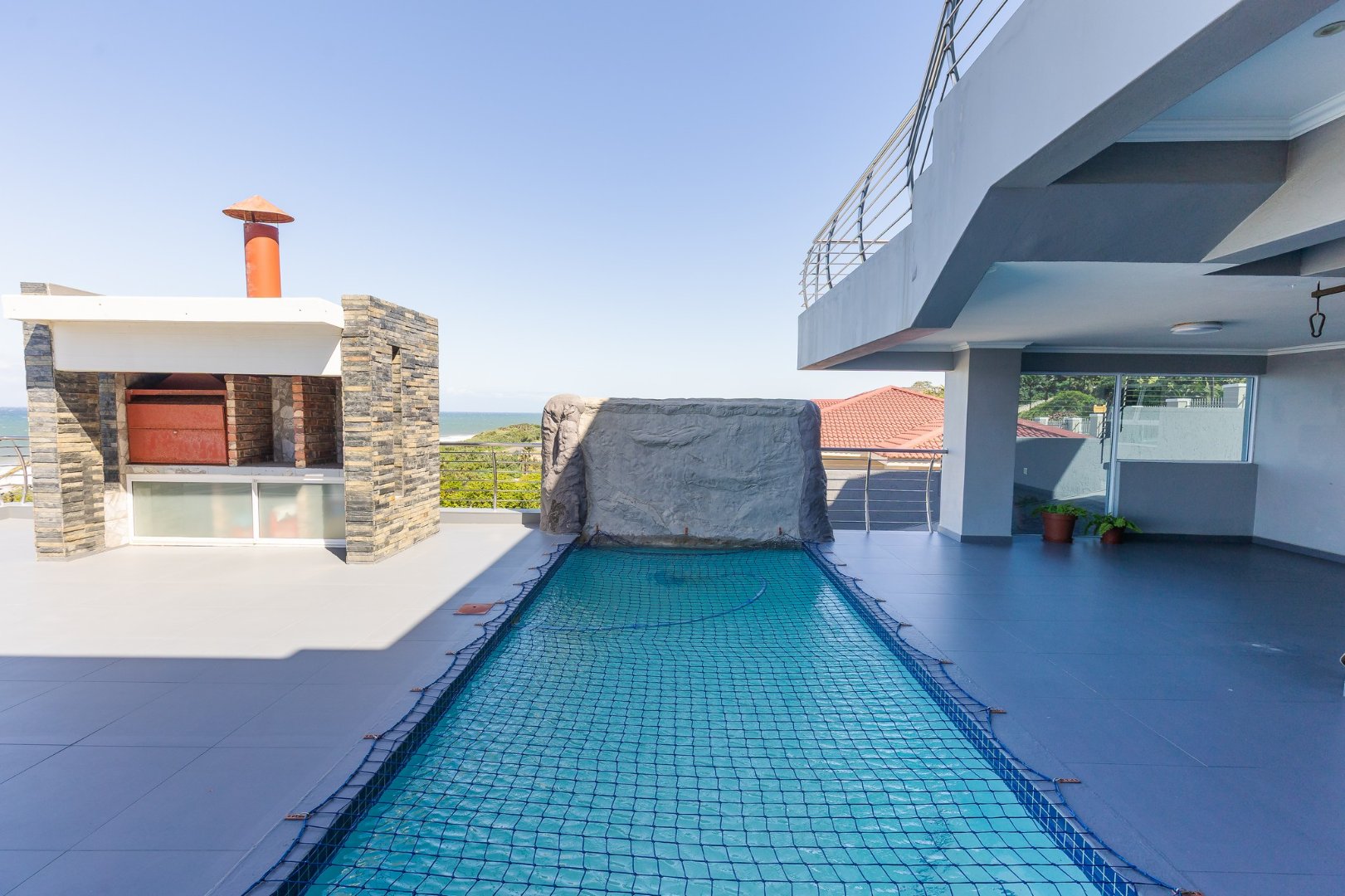 Step through stack doors to your outdoor entertainment area, featuring a sparkling swimming pool and built-in braai—with stunning sea views. Additionally, there is a generously sized room currently used as a laundry, which could easily be transformed into a small flatlet or guest suite. On this level is also a bedroom with ensuite.