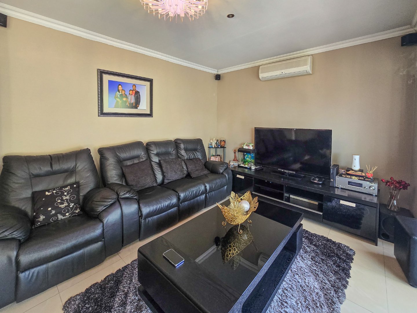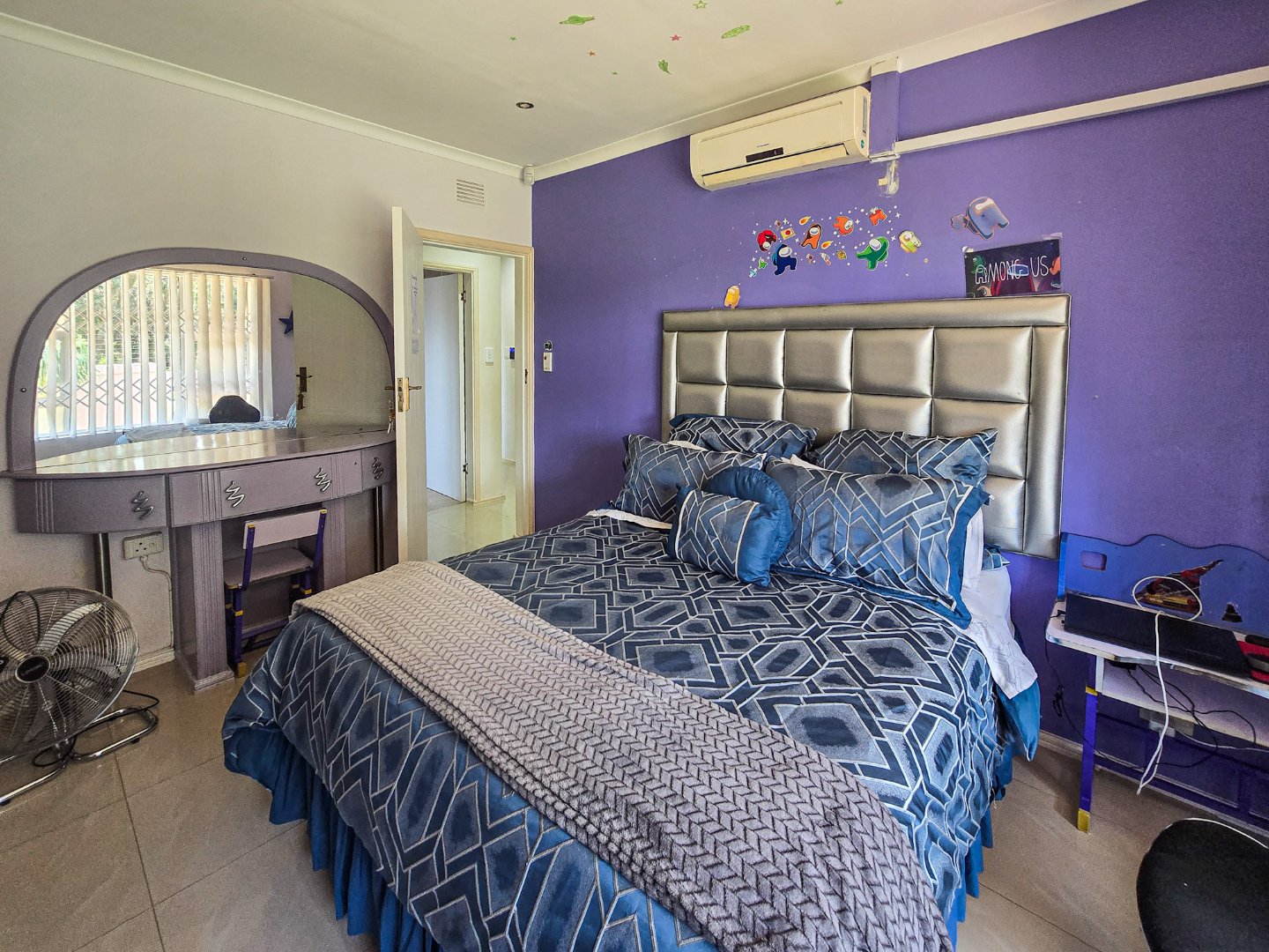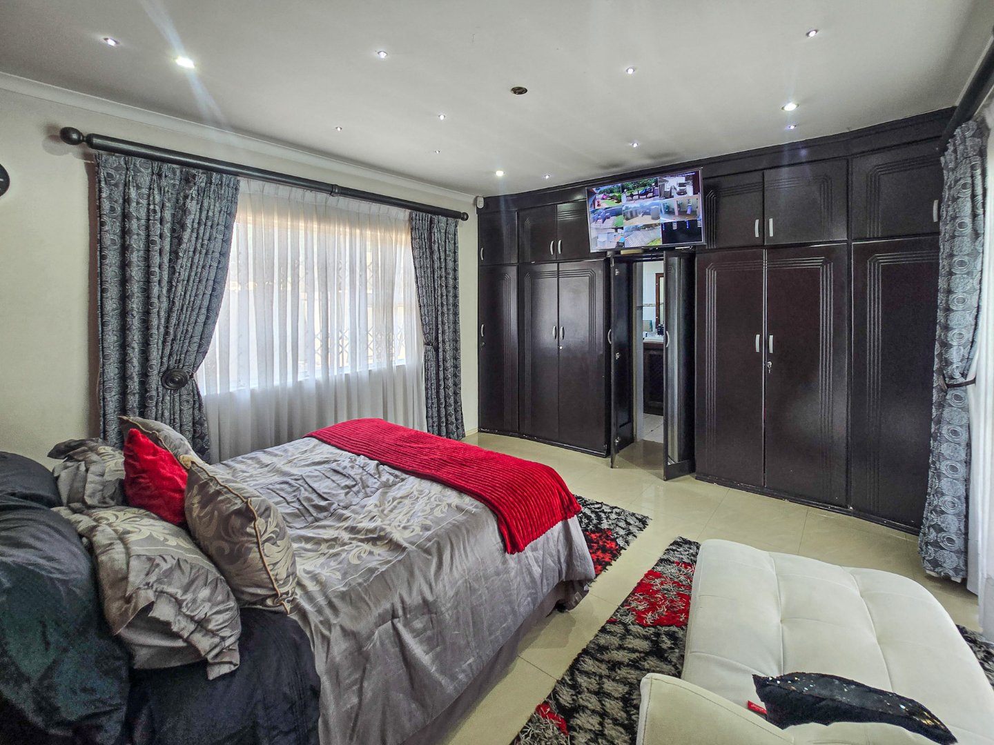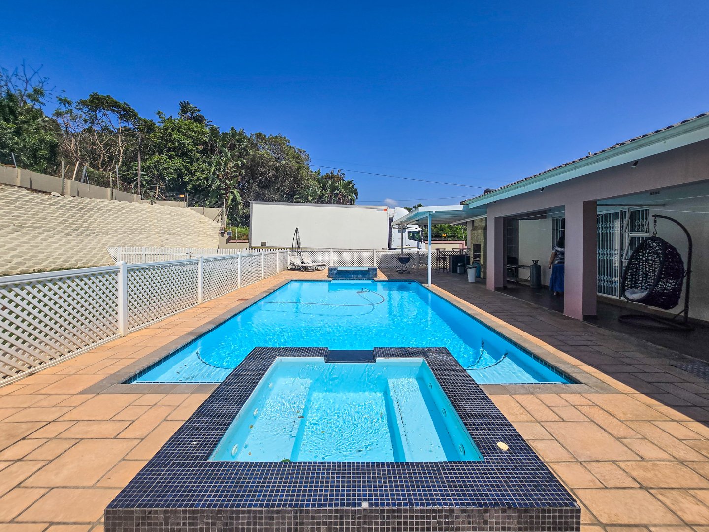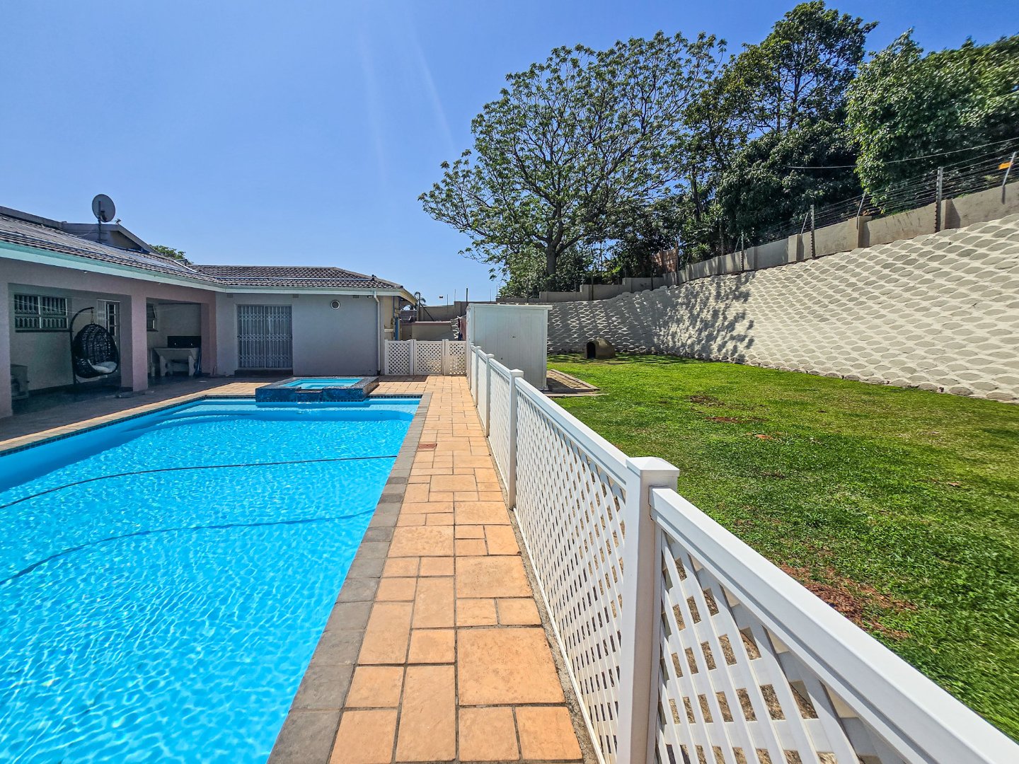 A double automated garage provides secure parking. For safety, the property has CCTV, an alarm, perimeter beams, and an electric fence. Outside, enjoy a large heated pool with a built-in Jacuzzi area. JoJo tanks are connected.