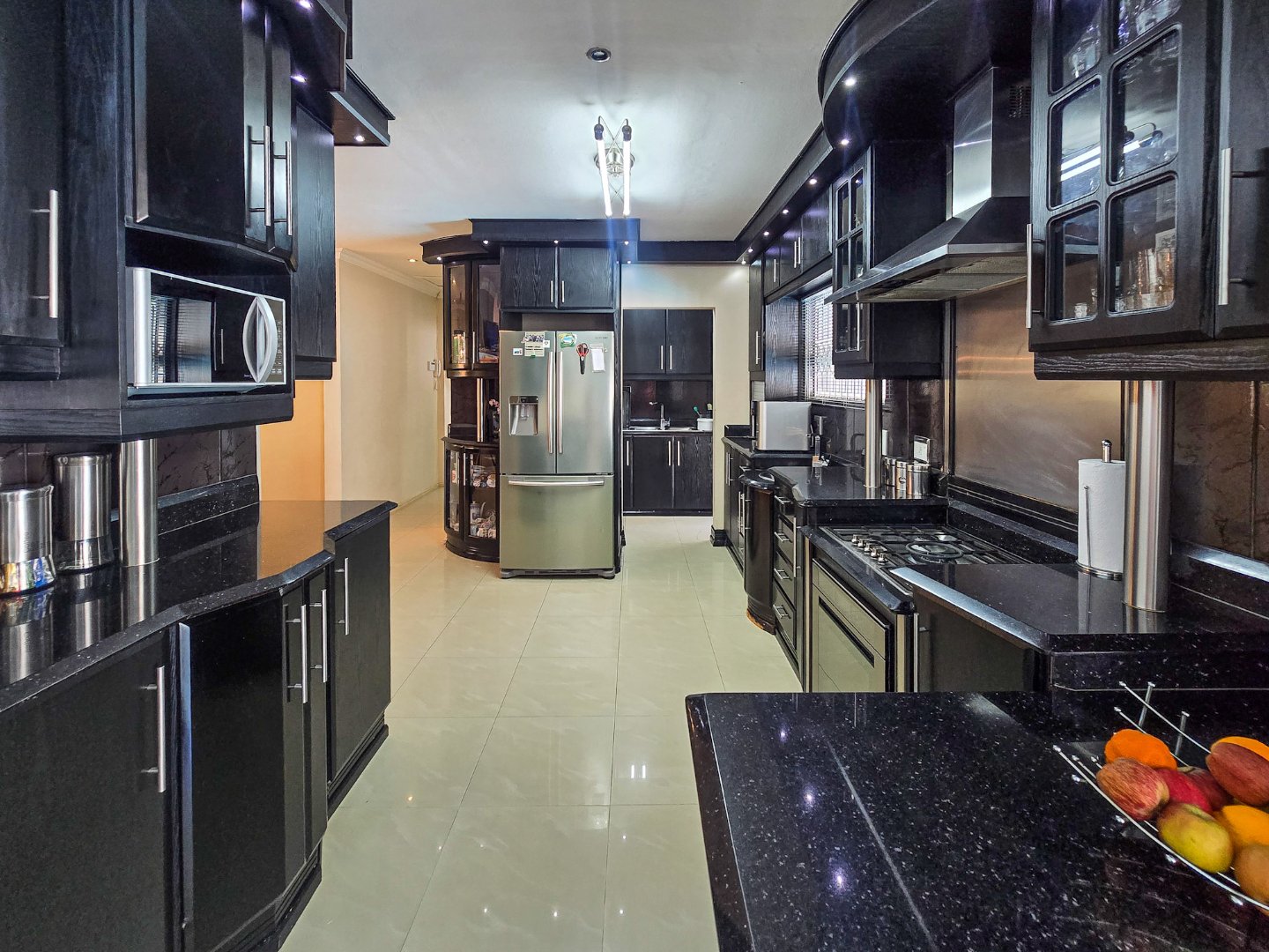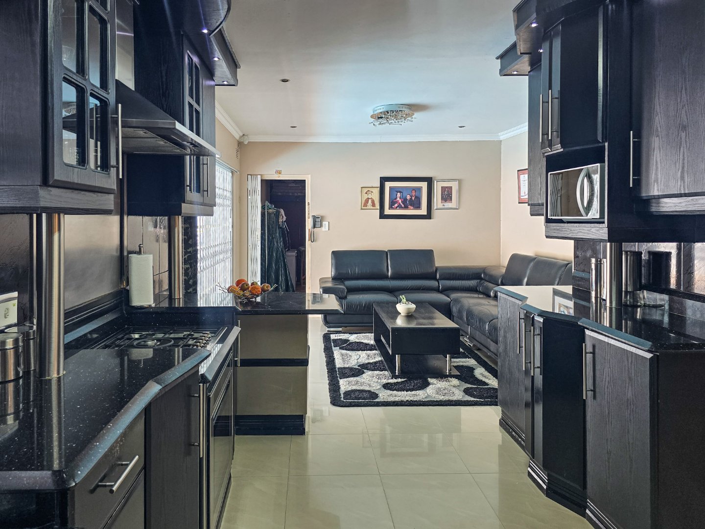 The kitchen features granite countertops, a gas hob, and an under-counter oven, with a scullery and a breakfast nook. There are two lounges and a dining room for everyday living and entertaining.