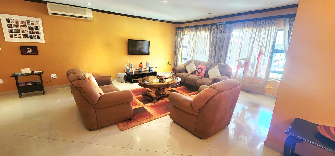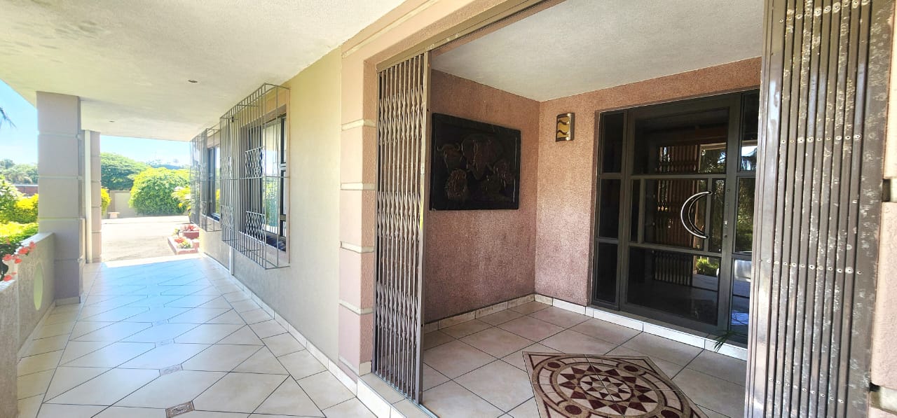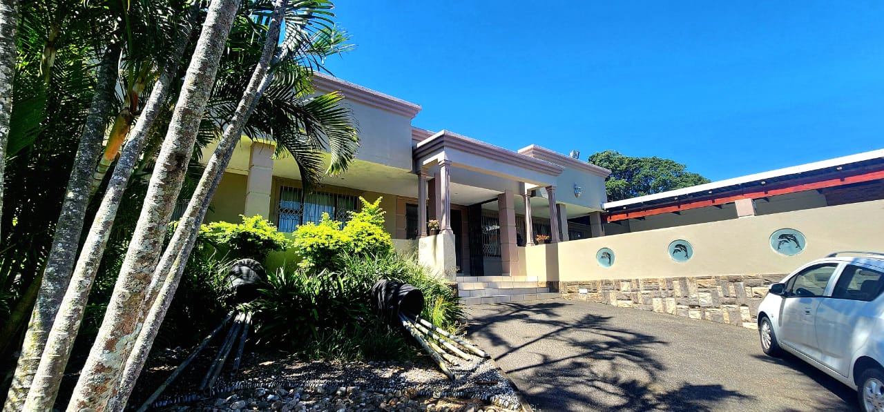 Situated conveniently in the upper section of Marburg/Oslo Beach, the ideal position for persons wanting a location near the industry and CBD of Port Shepstone, close to schools and malls. The large property has a dramatic gabled entrance with a winding paved driveway through the landscaped gardens and impressive palm trees to the large parking area and oversized double automated garage. The entrance portico brings one to the open plan entrance, lounge, dining (aircons) and stunning Beachwood kitchen, with granite tops, electric and gas hobs, eye level oven, pantry area and large laundry room. Double doors lead to the 1 bedroom flat, with lounge (doors to pool deck) kitchenette and bathroom. Down the passage are 3 large bedrooms with tons of cupboard space (2 bedrooms have aircons) The main is impressive and has a walk in closet section which opens to the lovely bathroom (shower, toilet, basin) There is a family bathroom as well consisting of a shower, toilet and basin. The pool deck which is off the lounge area is nice and secluded and has a covered area with a built-in braai. The 2nd flat is situated off the pool deck and is a large open plan room with bedroom, lounge and kitchenette all open plan, with a separate bathroom. At the back of the property is the 2 bedroom cottage, with lounge, kitchen and bathroom and is completely walled with an entrance gate and it has its own built-in braai area. The property is fully walled, in immaculate condition, and has upmarket fixtures and fittings. Please contact us ANYTIME to chat further! Matriarch Real Estate powered by Mandated Property Group (Pty)Ltd