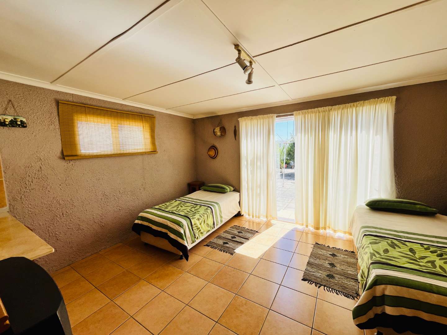 The main house features two generously sized bedrooms, with the master bedroom offering the luxury of an en-suite bathroom complete with a shower. The sunken lounge provides a cozy space for relaxation, while the large kitchen and dining area are perfect for family gatherings and entertaining guests. The main bathroom, equipped with a shower, ensures convenience for all residents. Modern aluminum doors and windows complement the home's aesthetic, and built-in cupboards offer ample storage space. The kitchen features stylish built-in cupboards, sleek countertops, and neat finishes. Fully equipped with a built-in oven, hob, extractor fan, and space for large appliances, it’s designed for both functionality and elegance.