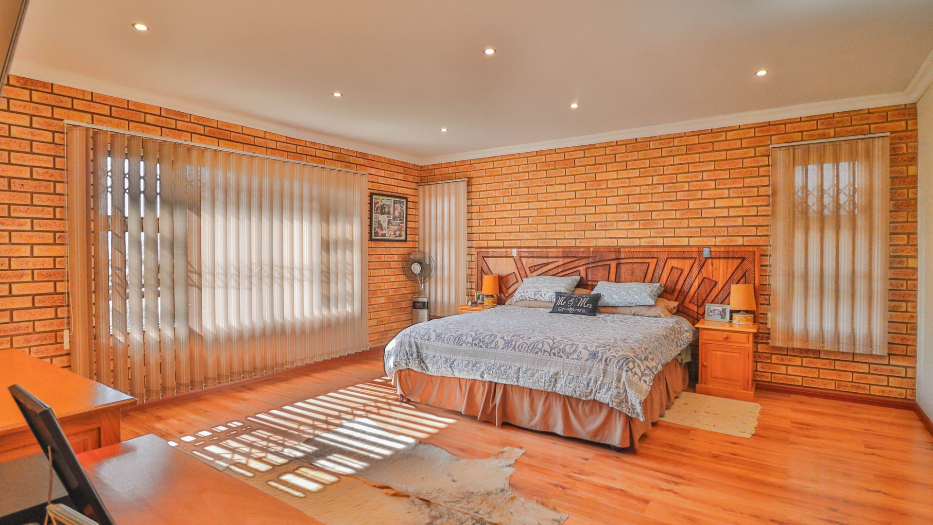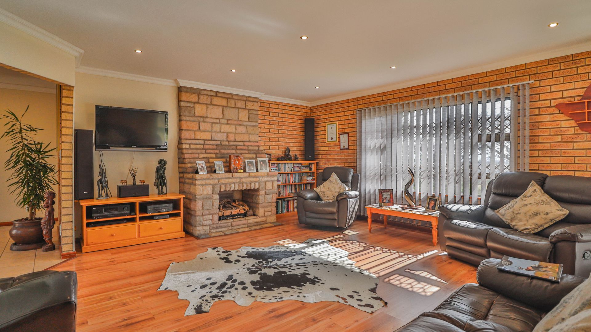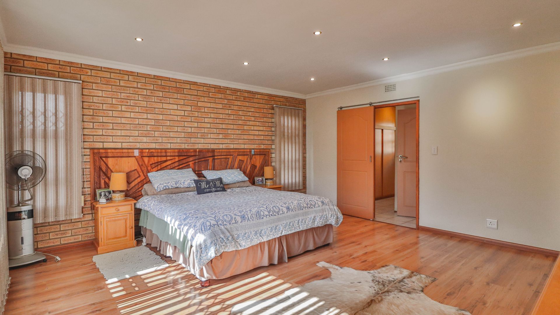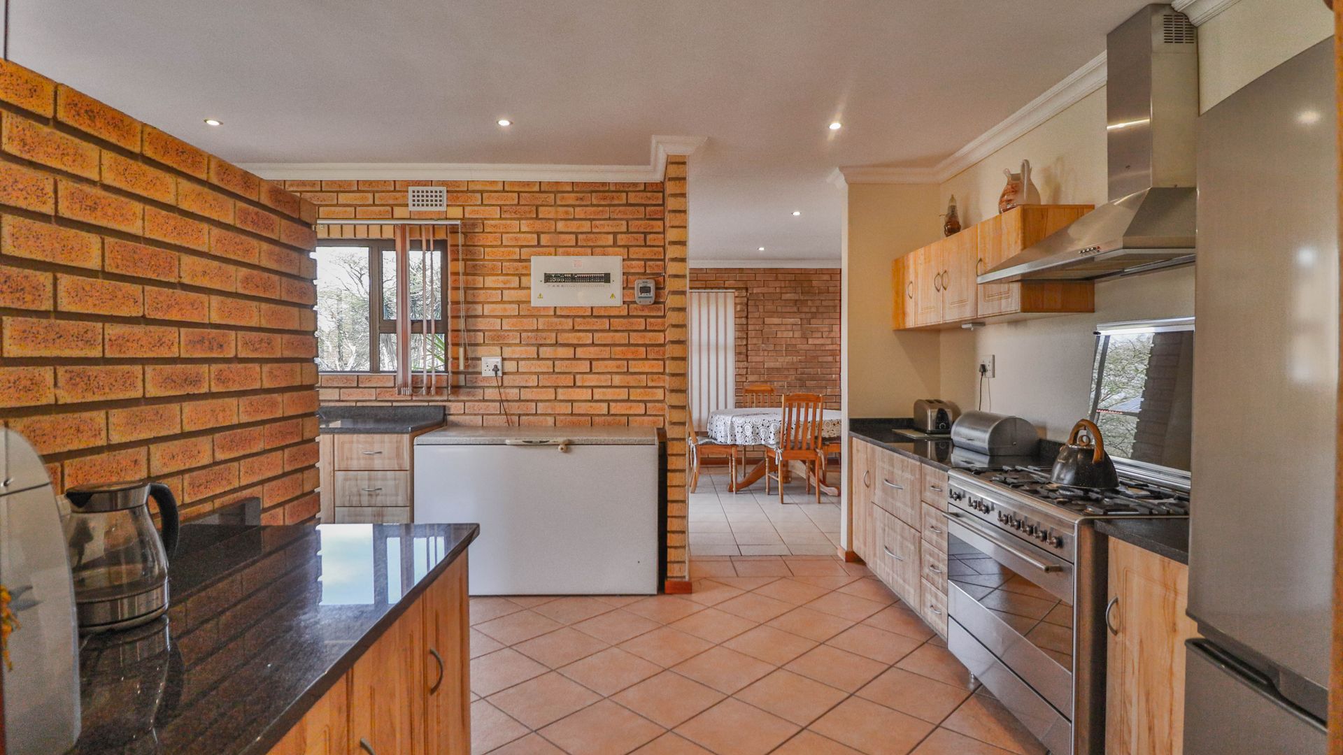 The facebrick farmhouse is spacious, contemporary, and designed to take full advantage of its idyllic surroundings. With 3 bedrooms and 2 en-suite bathrooms, the home is well-suited for comfortable family living or a peaceful country retreat. The main bedroom boasts a walk-in closet and a luxurious en-suite. A welcoming lounge with a gas fireplace opens onto a wide verandah, where panoramic views over the private dam create a picture-perfect setting.