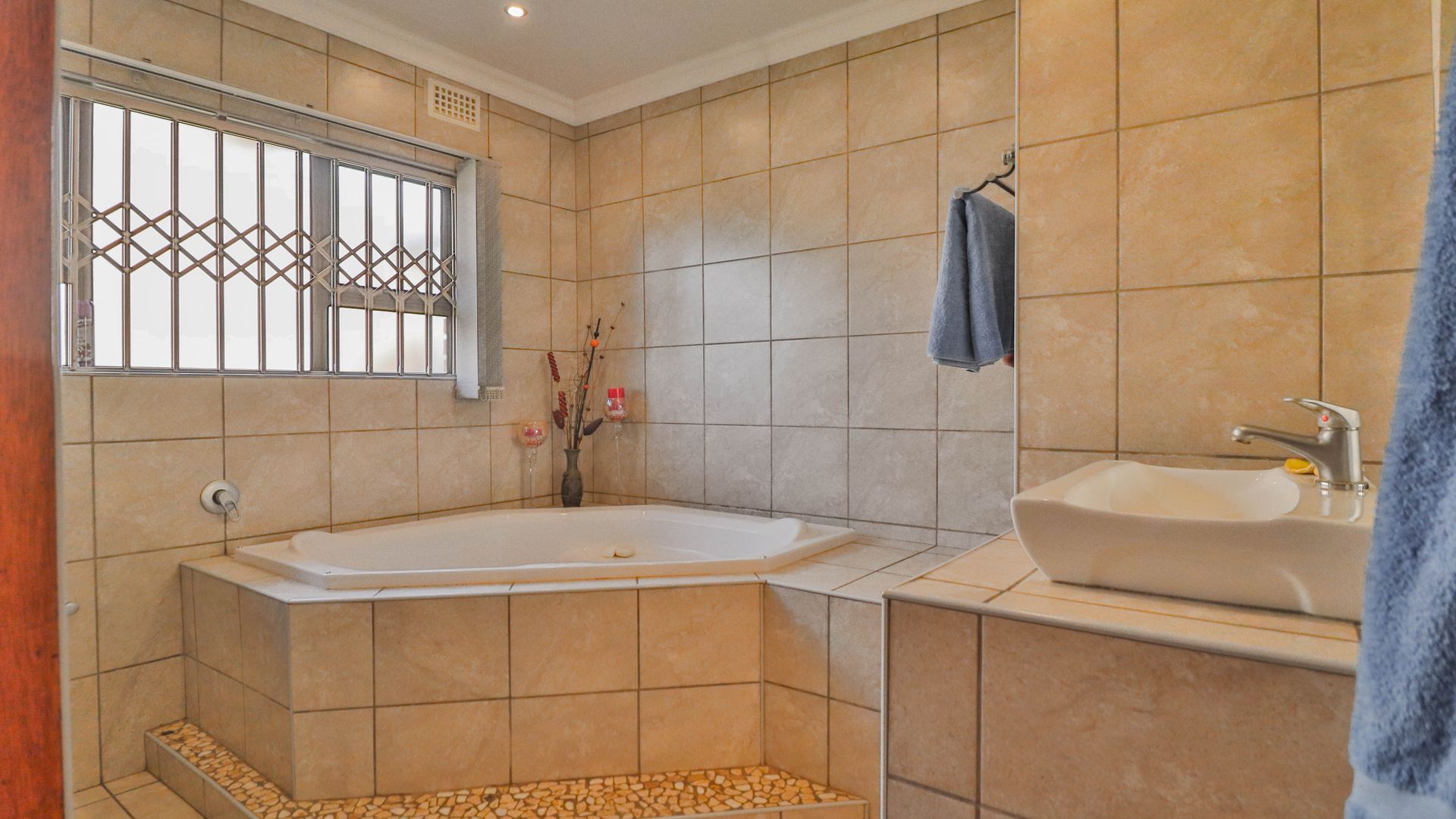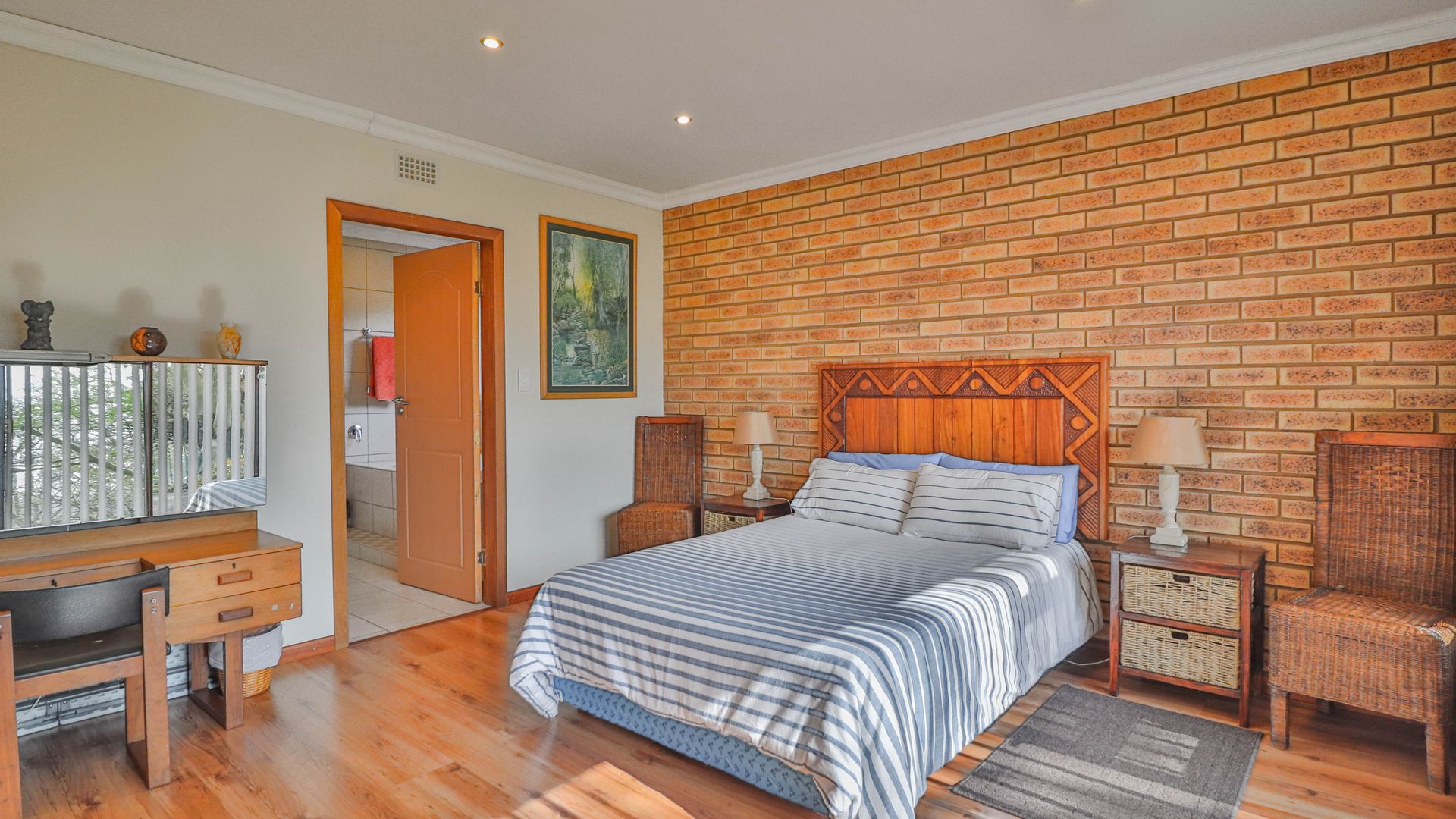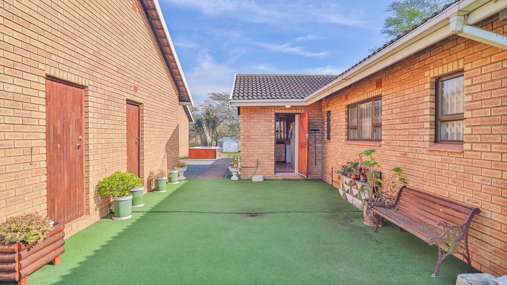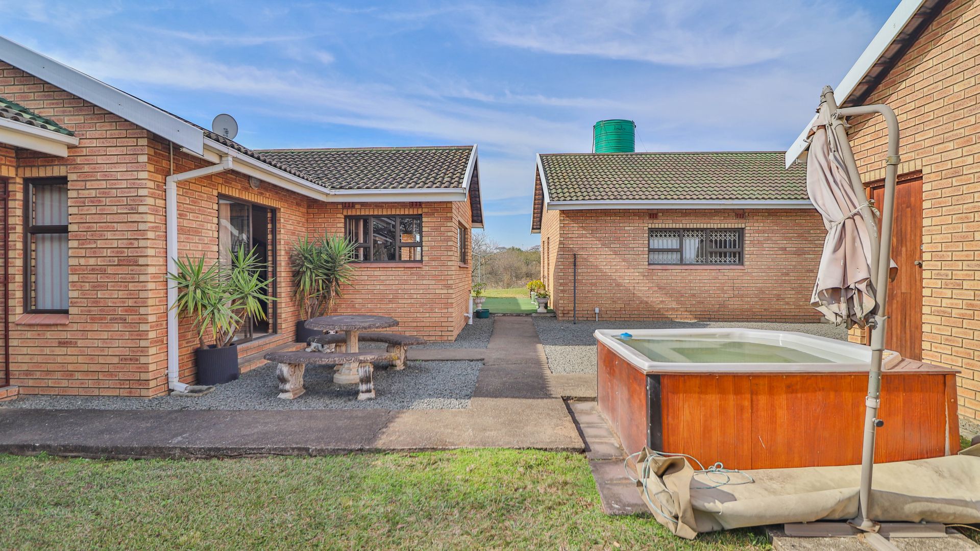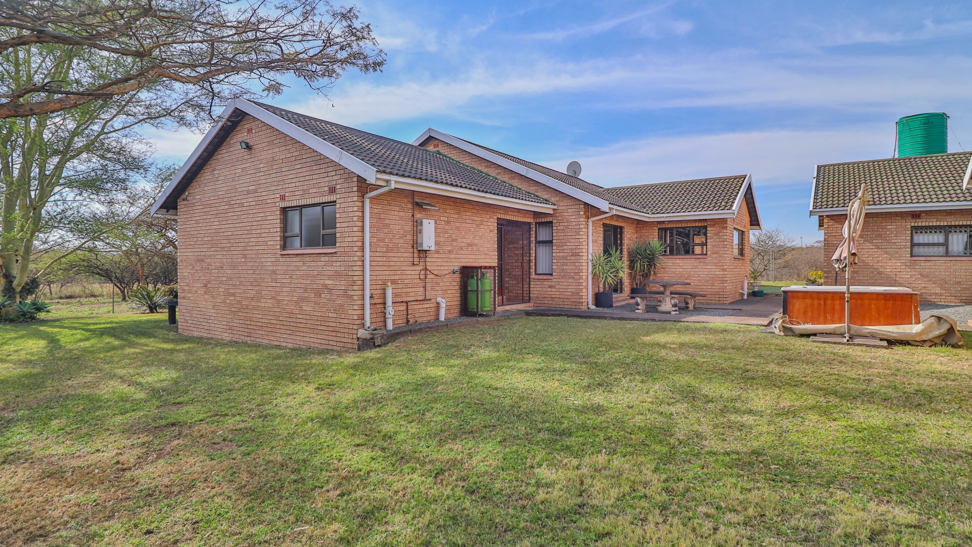 The entire farm is enclosed with a game fence and is currently home to a variety of game including impala, blesbok, and nyala – offering a rare opportunity to enjoy your own private game sanctuary. The landscaped garden also features a jacuzzi for outdoor relaxation.
