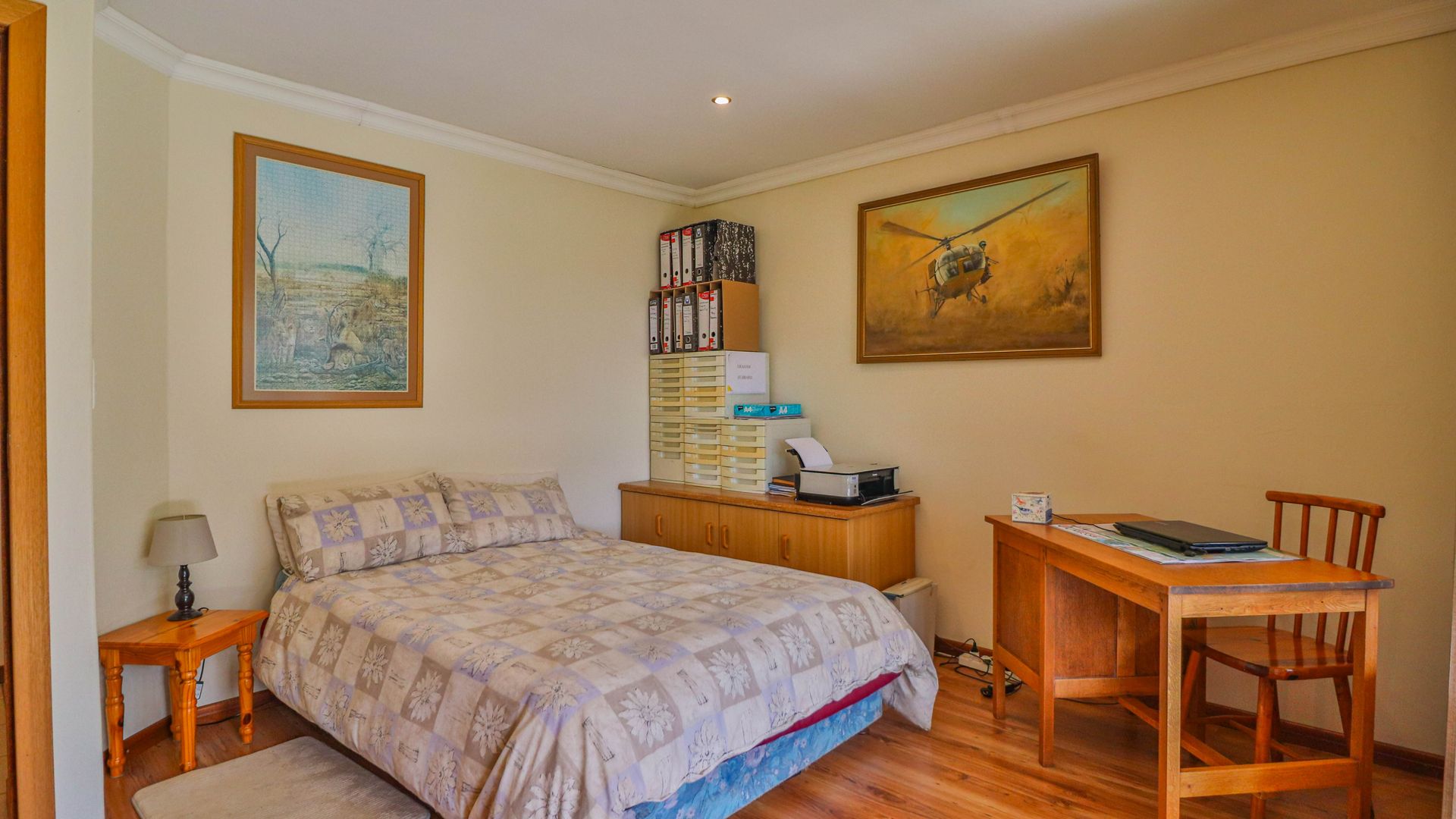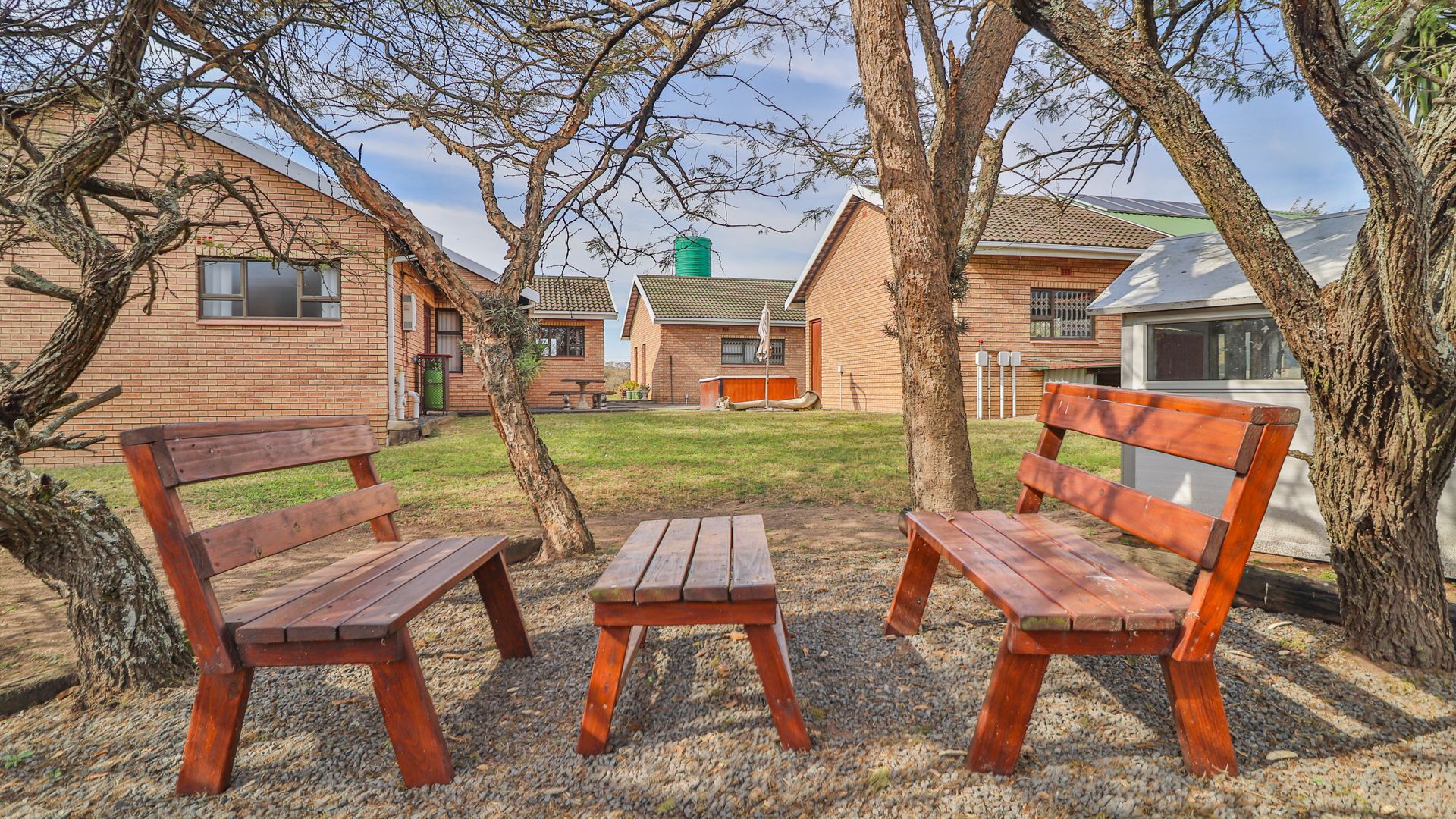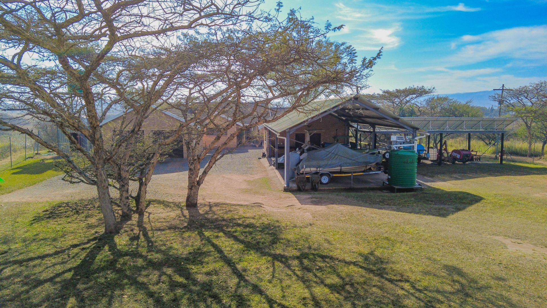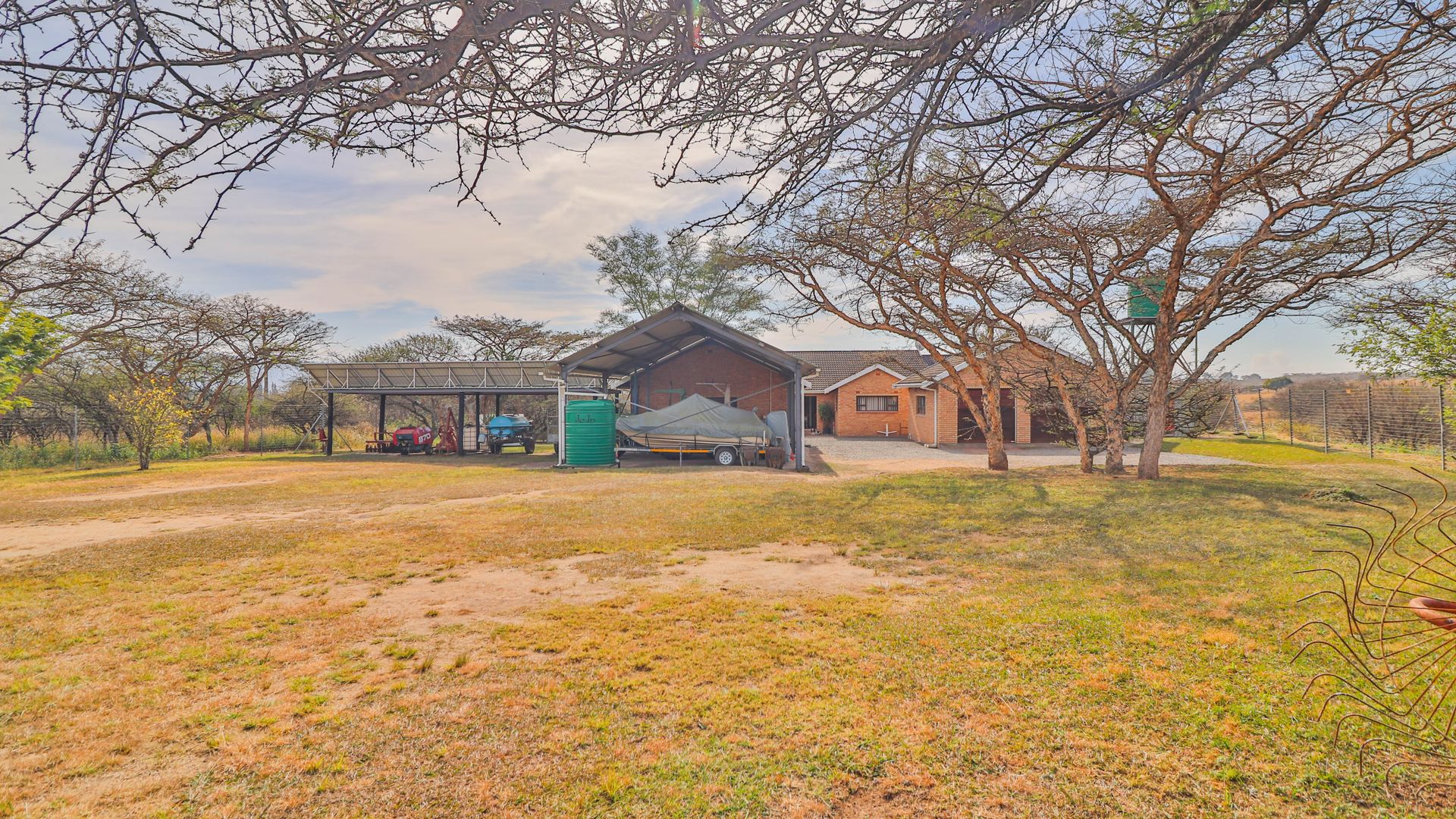The home is supported by a fully off-grid energy solution: 24 solar panels, an 8kVA inverter, a 15kW lithium battery bank, and a backup generator. Water is supplied via a 3,500-litre borehole feeding into a storage tank, ensuring self-sufficiency. Should grid connectivity be desired, an Eskom transformer is already installed on the property.