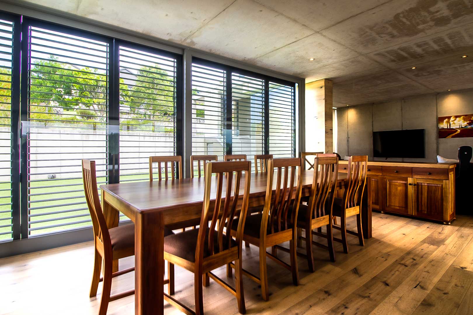 quality finishes in wood, glass and metal, and clean modern lines that capture the light throughout the day, this could be