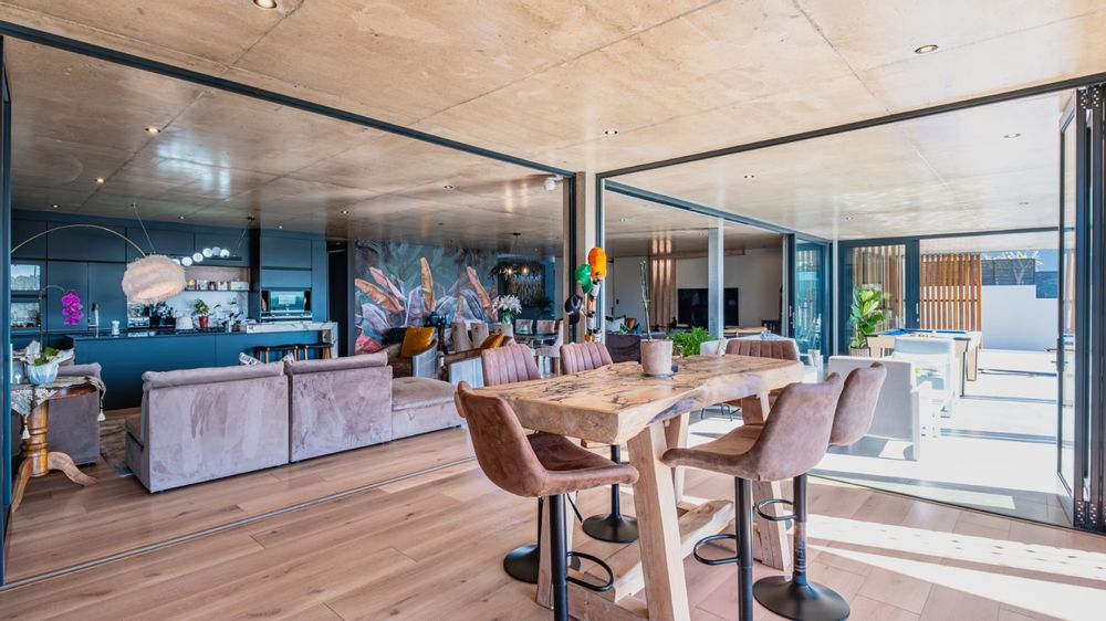 Designed by renowned architect Eddie da Silva, this ultra-modern north-facing residence is a showcase of luxury, innovation, and refined elegance in the prestigious Oubaai Golf Estate. Offering uninterrupted views of the majestic Outeniqua Mountains and Gwaing River, this home is a rare blend of design brilliance and lifestyle excellence.