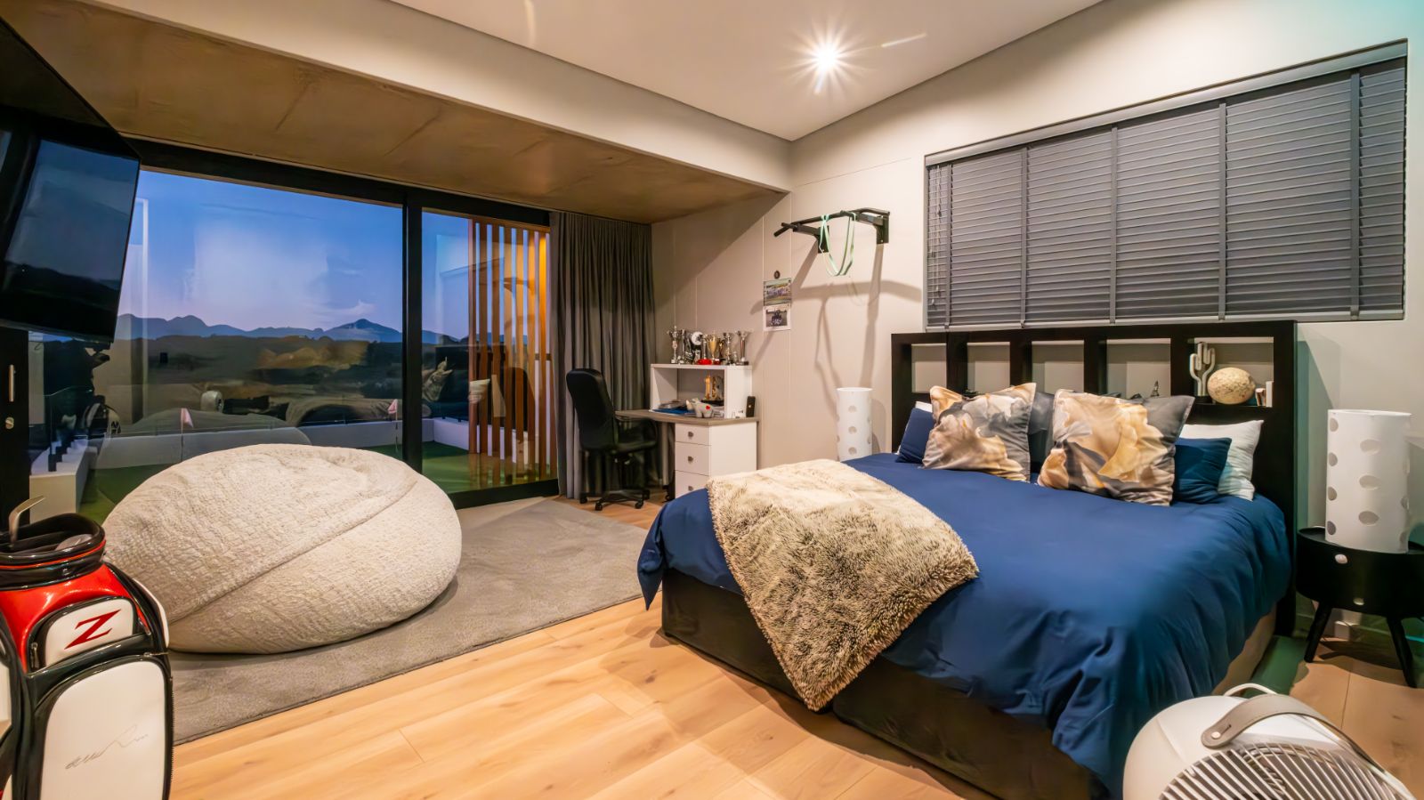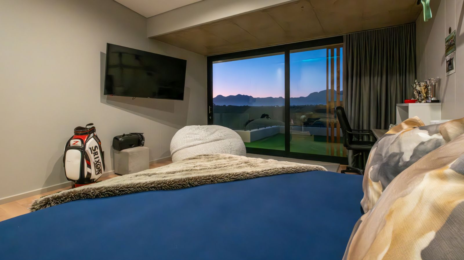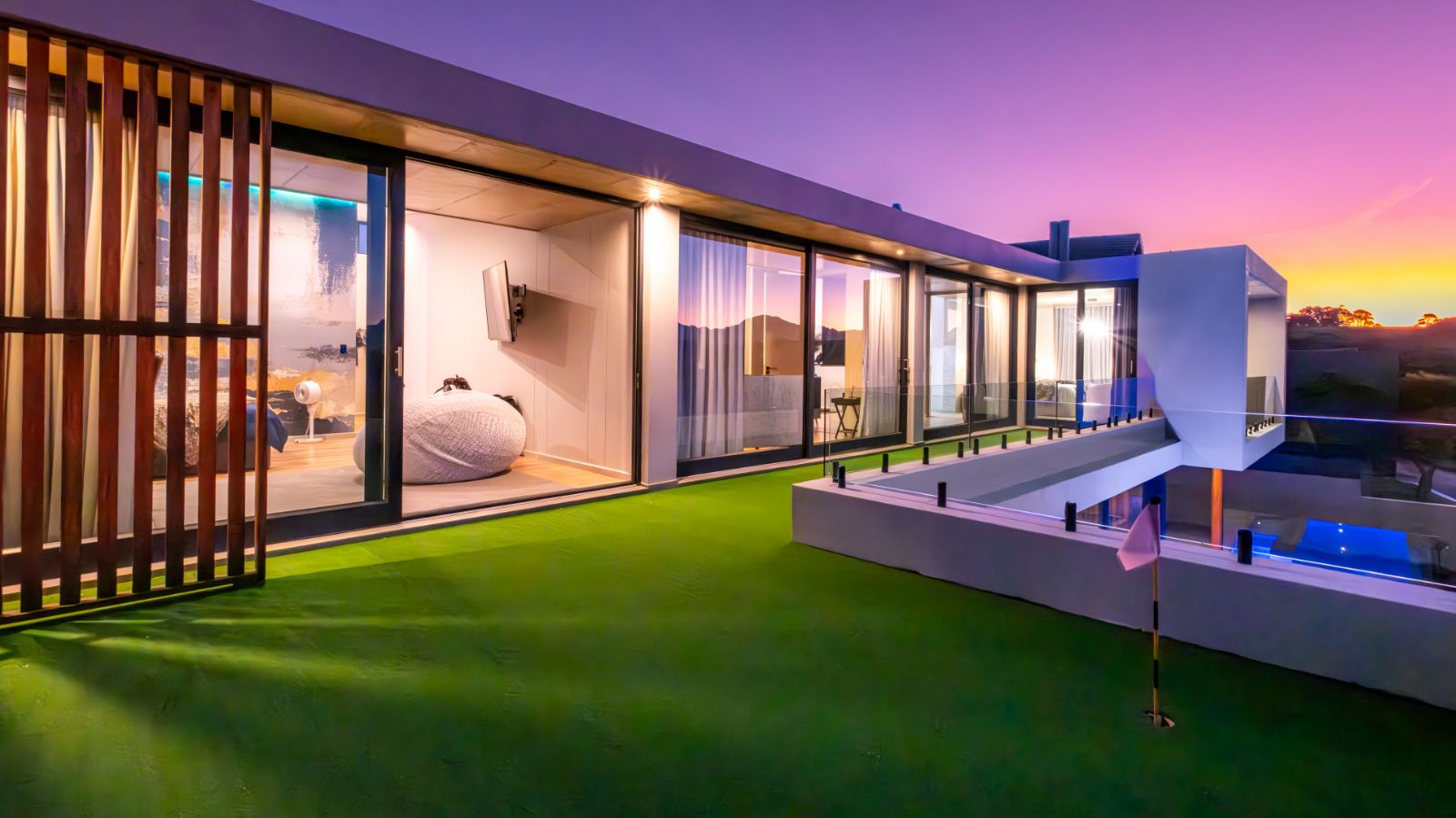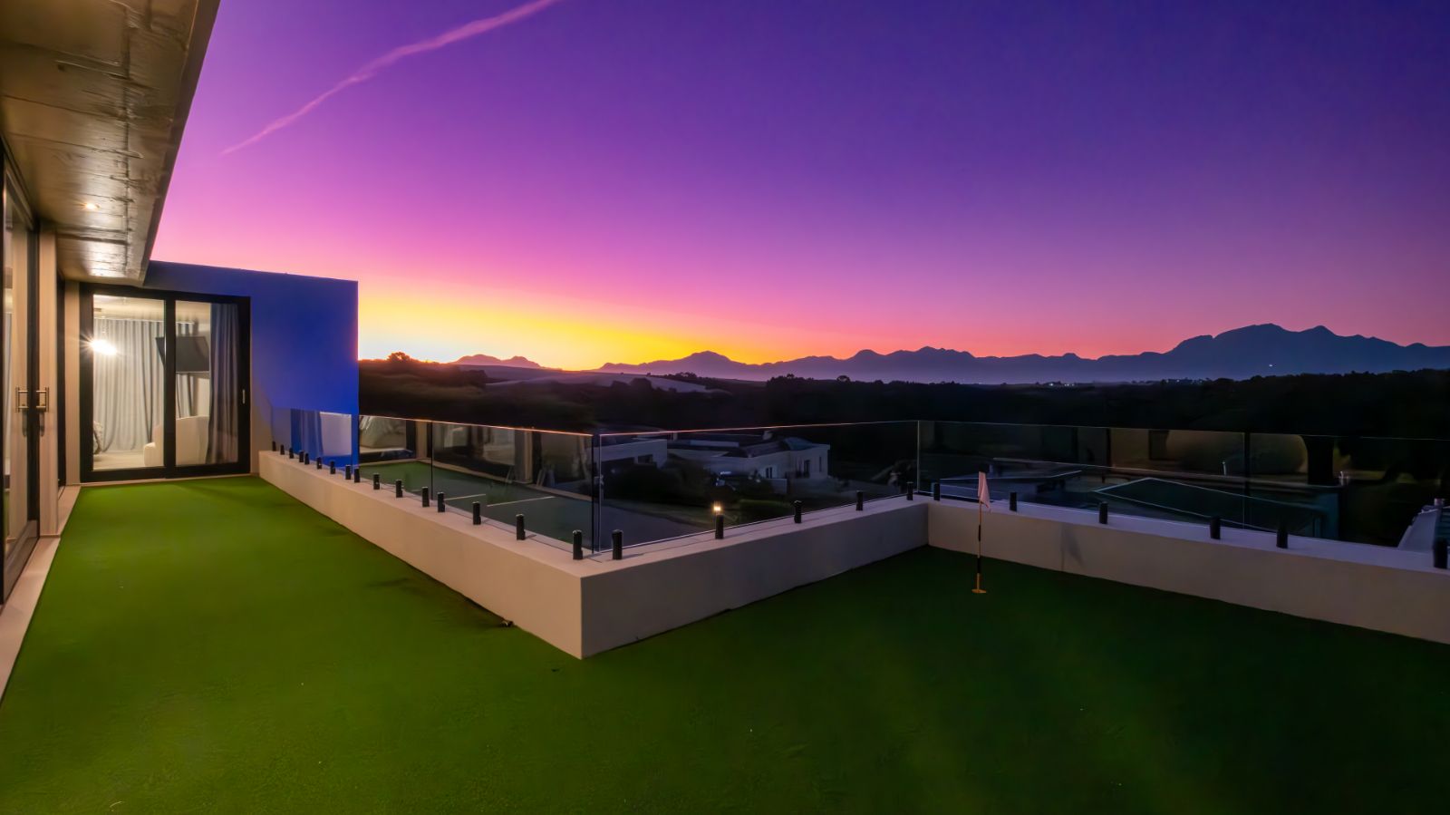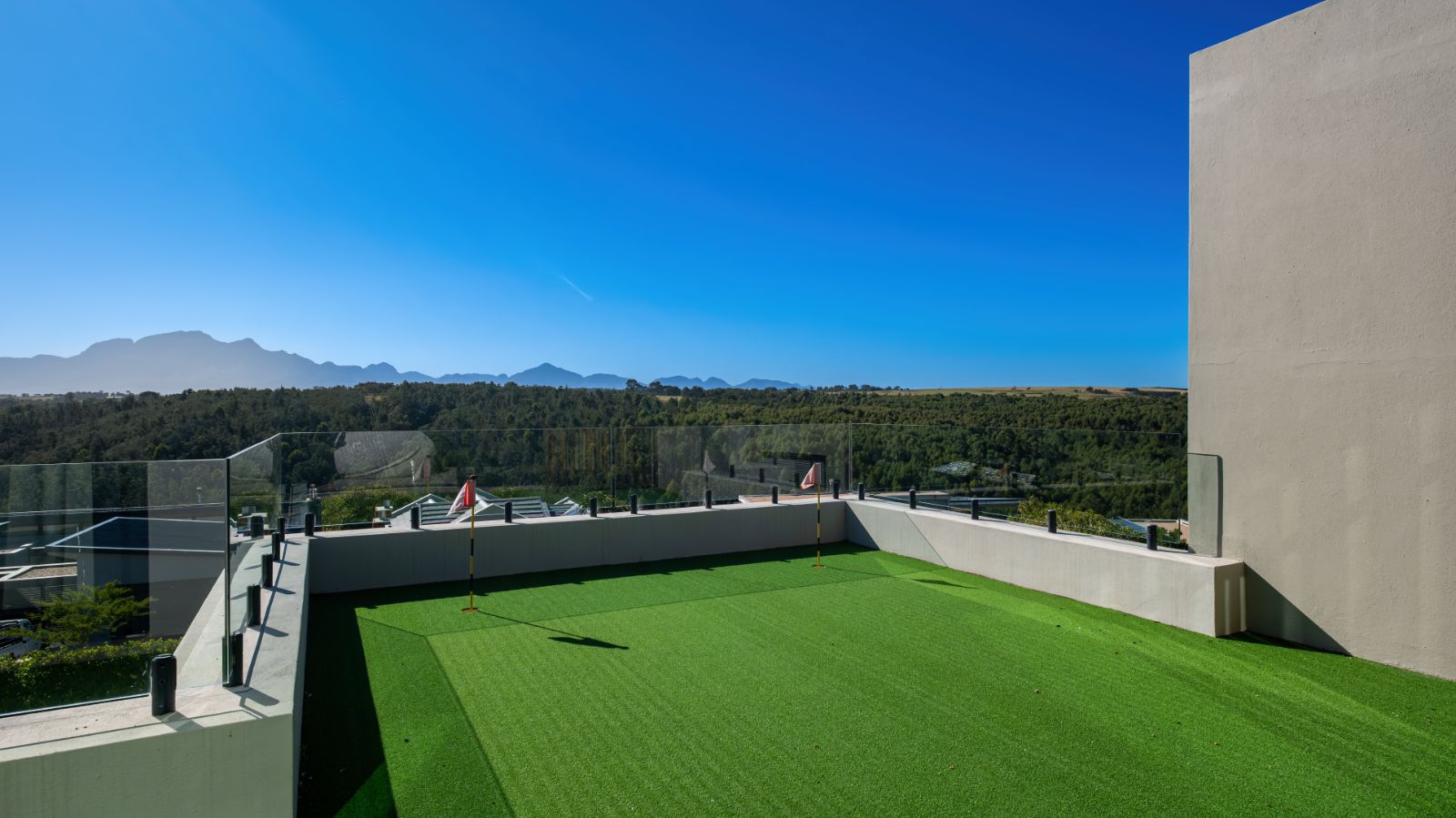 Toward the rear, a spacious home office leads to the fourth en-suite bedroom, which opens up to a generous private balcony — complete with a putting green for practicing your short game in peace.