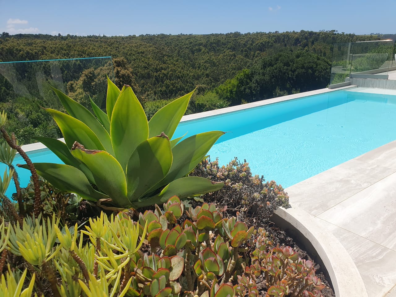 Kitchen, Dining room and Lounge with sliding doors to balcony and pool.