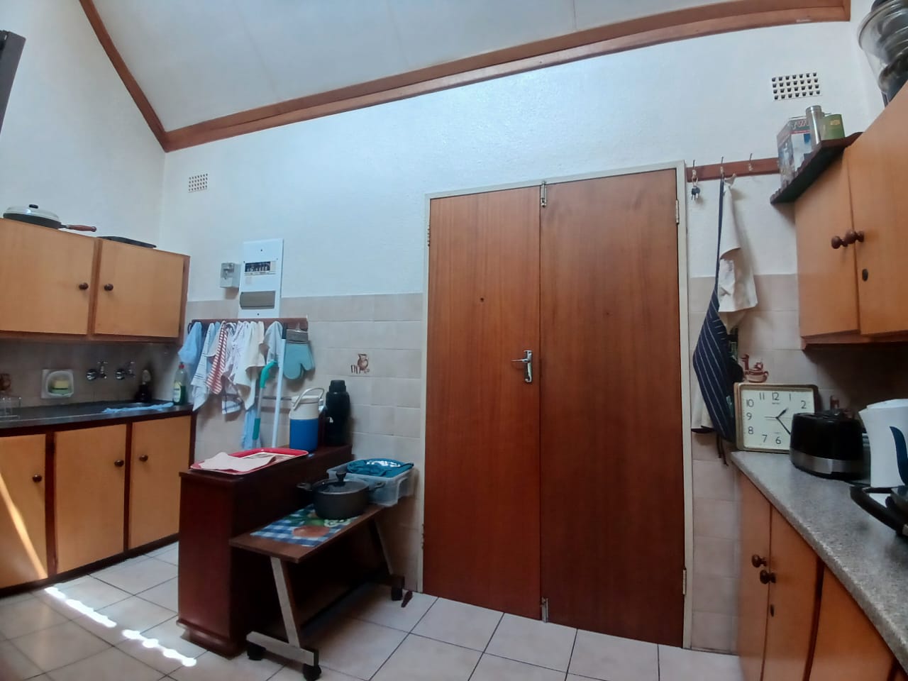 The spacious lounge opens onto an extended veranda, creating the perfect additional lounging area that overlooks a private garden. The well-equipped kitchen includes ample built-in cupboards, a scullery, and a stove. The bedroom features built-in cupboards and an air-conditioner for year-round comfort, while a full bathroom and a lock-up garage provide added convenience.